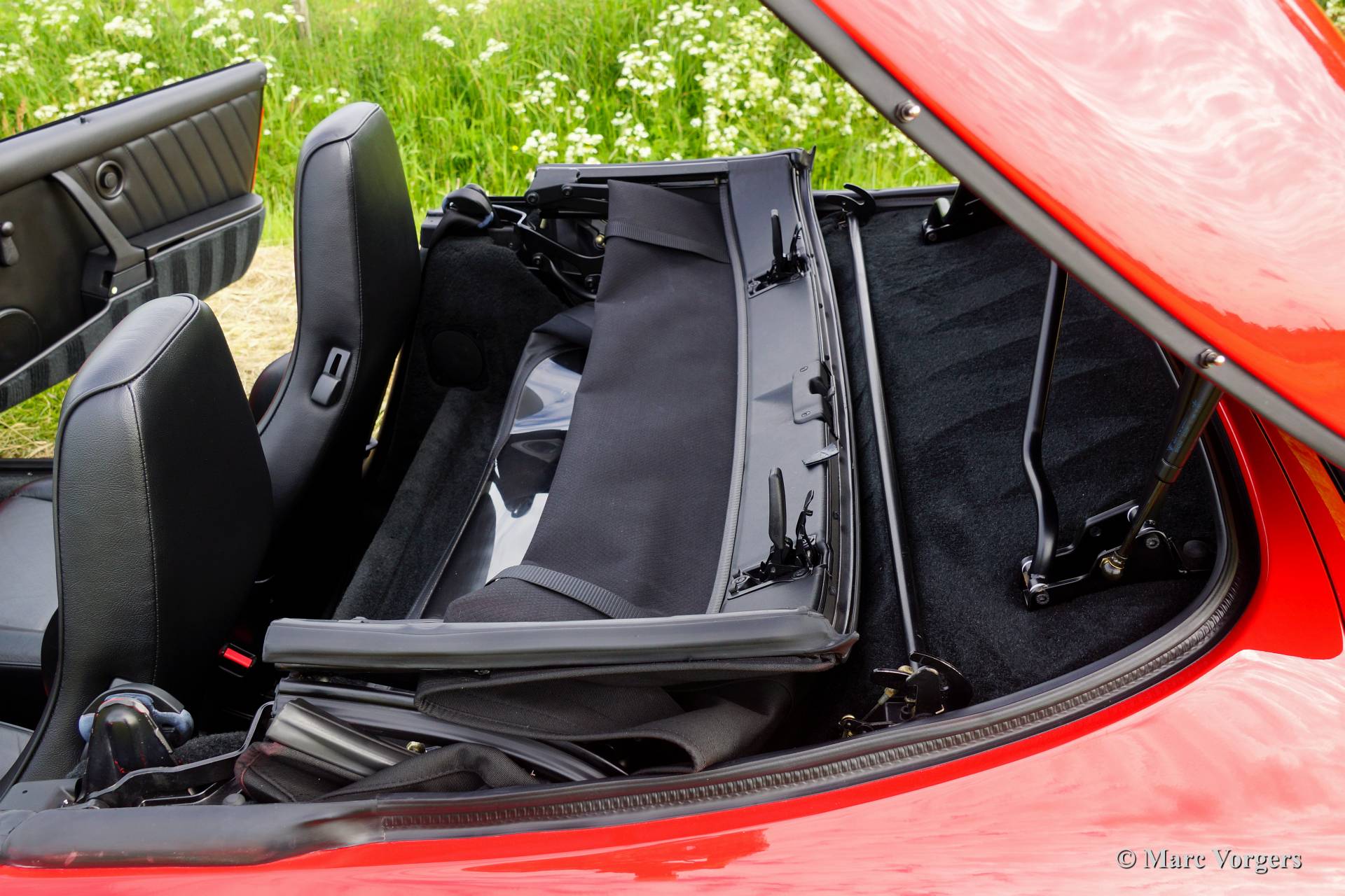 Porsche 911 Carrera Speedster 3.2 Turbolook, Jahr 1989. Farbe Indischrot mit einem schwarzen Leder-Interieur und schwarzen Teppich. Schwarzes Verdeck. Diese wunderschöne Porsche 911 ist ein seltenes Carrera Speedster 3.2 Turbolook-Modell. Nur 2103 Exemplare wurden von September 1988 bis August 1989 hergestellt.