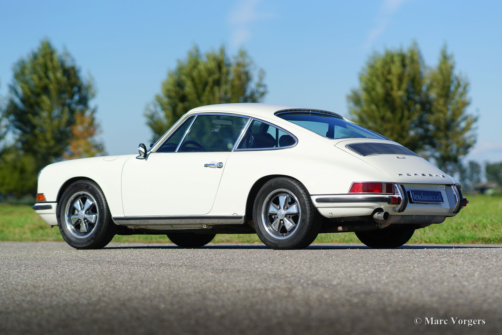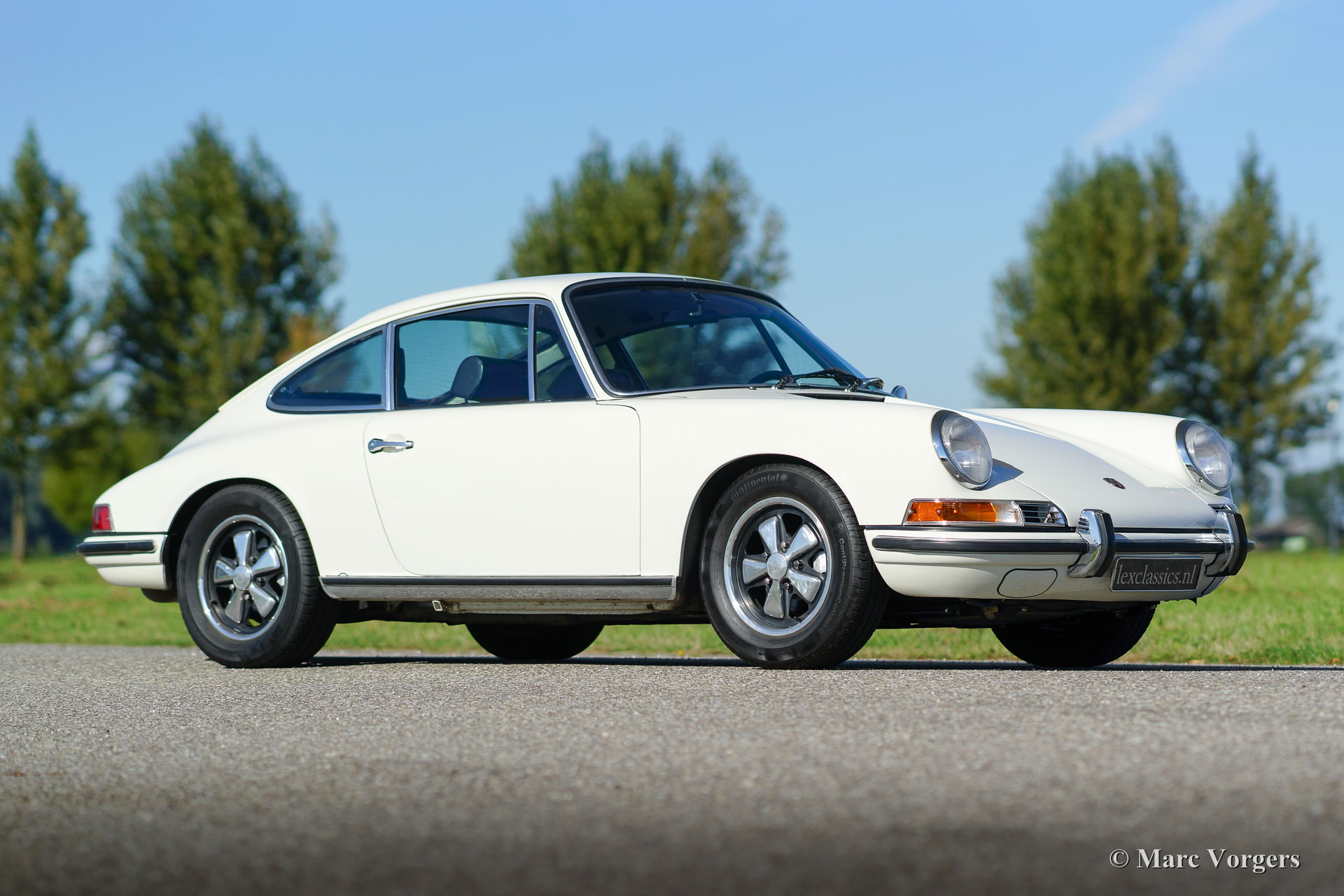Porsche 911 T, Jahr 1970. Farbe Weiß (Elfenbein Weiss) mit einem schwarzen Innenraum und schwarzem Teppich. Dieser fantastische Porsche 911 wurde neu verkauft in den USA. Im Jahr 1997 wurde das Fahrzeug in die Niederlande Importiert. Im Jahr 2014 wurde der Porsche in den Niederlanden restauriert. Die Karosseriearbeit zeigt klare Linien, einen schönen Panel-Fit und eine hervorragende Lackierung. Das Innere wurde wunderschön restauriert, viele ursprüngliche Teile wurden erhalten und damit auch die authentische Atmosphäre! Eine Fotoreportage dieser Restauration ist vorhanden. Der ursprüngliche 2,2-Liter-Motor wurde früher (in den USA Zeitraum) durch eine 1968 2-Liter-Einheit ersetzt. Dieser Motor läuft und klingt perfekt! Im Jahre 1970 wurden nur 583 Porsche 911 T Modelle gebaut. Dies ist ein sehr schönes und hervorragend fahrendes Exemplar!