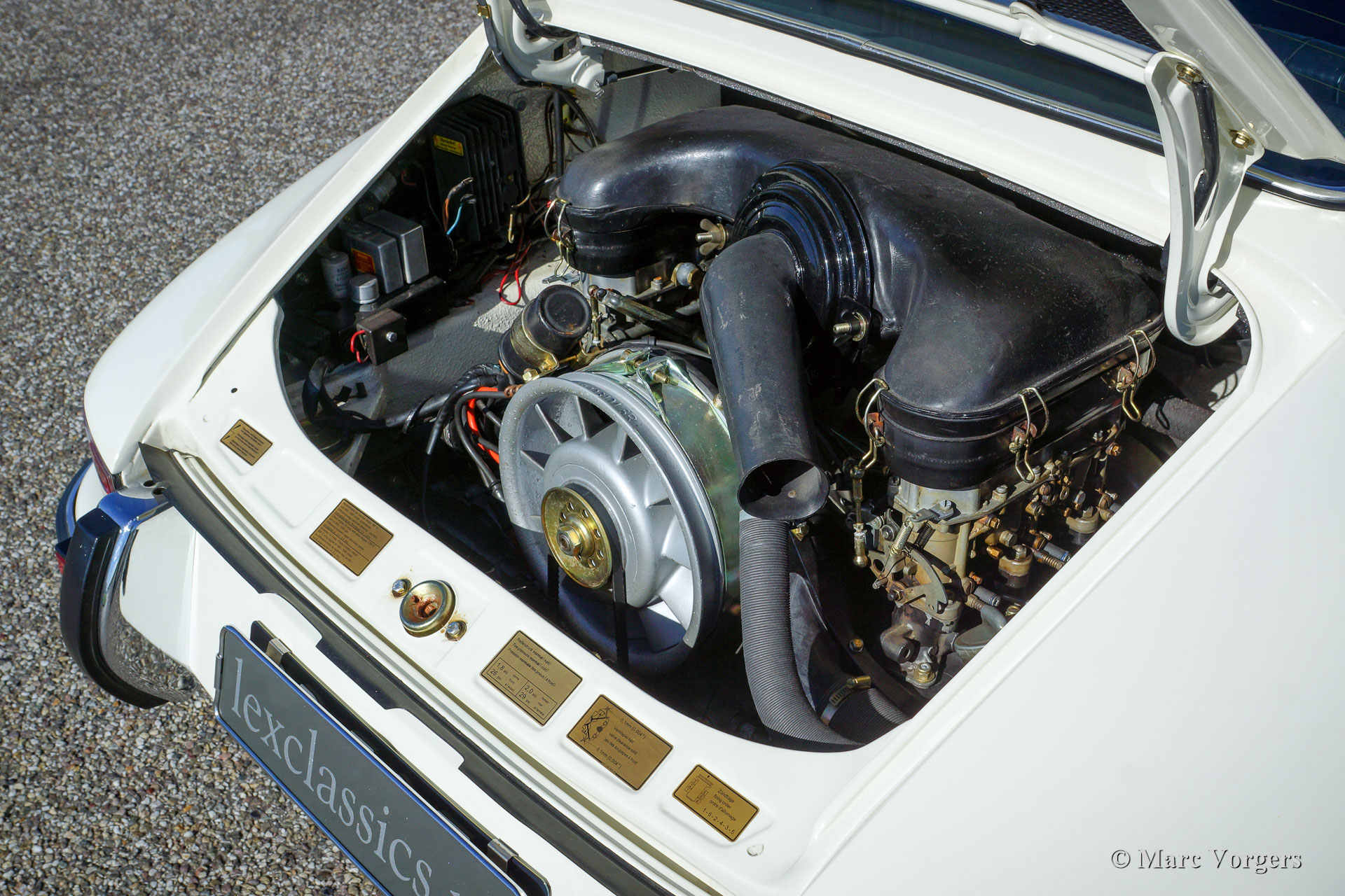 The Porsche 911 was designed with a steel unitary bodywork construction in which the engine was located behind the rear axle. The 911 engine is a air-cooled six cylinder "boxer" engine. The suspension of the Porsche 911 was independent from the start as was a five speed gearbox with floor shift.