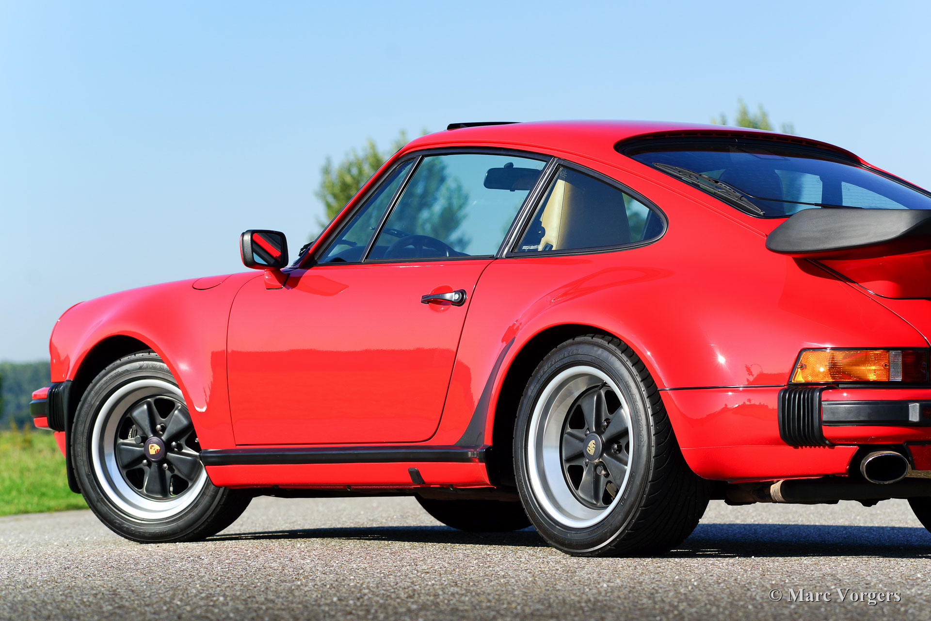 Porsche 911 Turbo, Jahr 1987. Farbe 'Guards‘ Rot mit einem beige Lederausstattung und schwarzem Teppich. Dieser 930-Typ Porsche 911 Turbo wurde in den USA Neu verkauft. Das Auto ist in einem hervorragenden Zustand und das Auto fährt fabulös! Das Auto kommt sehr gut dokumentiert. Dieser 911 Turbo verfügt unter andere über die folgenden Optionen: Sperrdifferenzial, Sportsitze, Schiebedach, Alarmanlage und Radio.