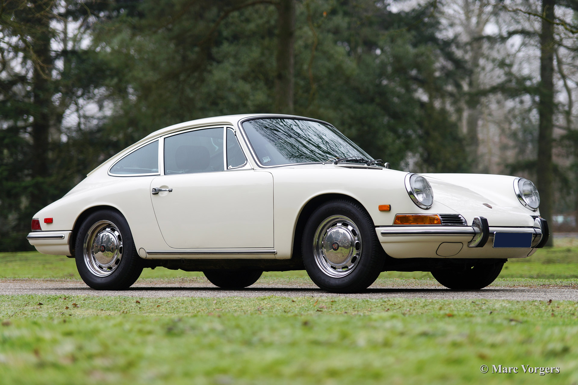 Porsche 912, Jahr 1968. ‘Matching numbers‘ SWB (Short Wheel Base) Modell. Farbe Weiß (Hell Elfenbein Weiss), Farbcode 6804 B, mit einem schwarzen Kunstleder Interieur. Dieser wunderschone Porsche 912 wurde nie restauriert! Das Auto wurde über die Jahre wunderschön gepflegt und gewartet von einem Porsche-Spezialisten. Eine umfassende Service-Geschichte Datei ist vorhanden. Der Motor wurde im Jahr 2014 überholt. Das Auto ist ausgestattet mit die originale Chrom Stahl Räder mit Chrom Radzierblenden, ein seltenes Original-Lenkrad mit Holzkranz und grün getöntem Glas. Das Auto kommt mit einem Porsche ‘Cardex‘ und eine Originalanleitung (kein Nachdruck). Dies ist ein seltener und Super-Originale Porsche 912! Das Auto fährt hervorragend.