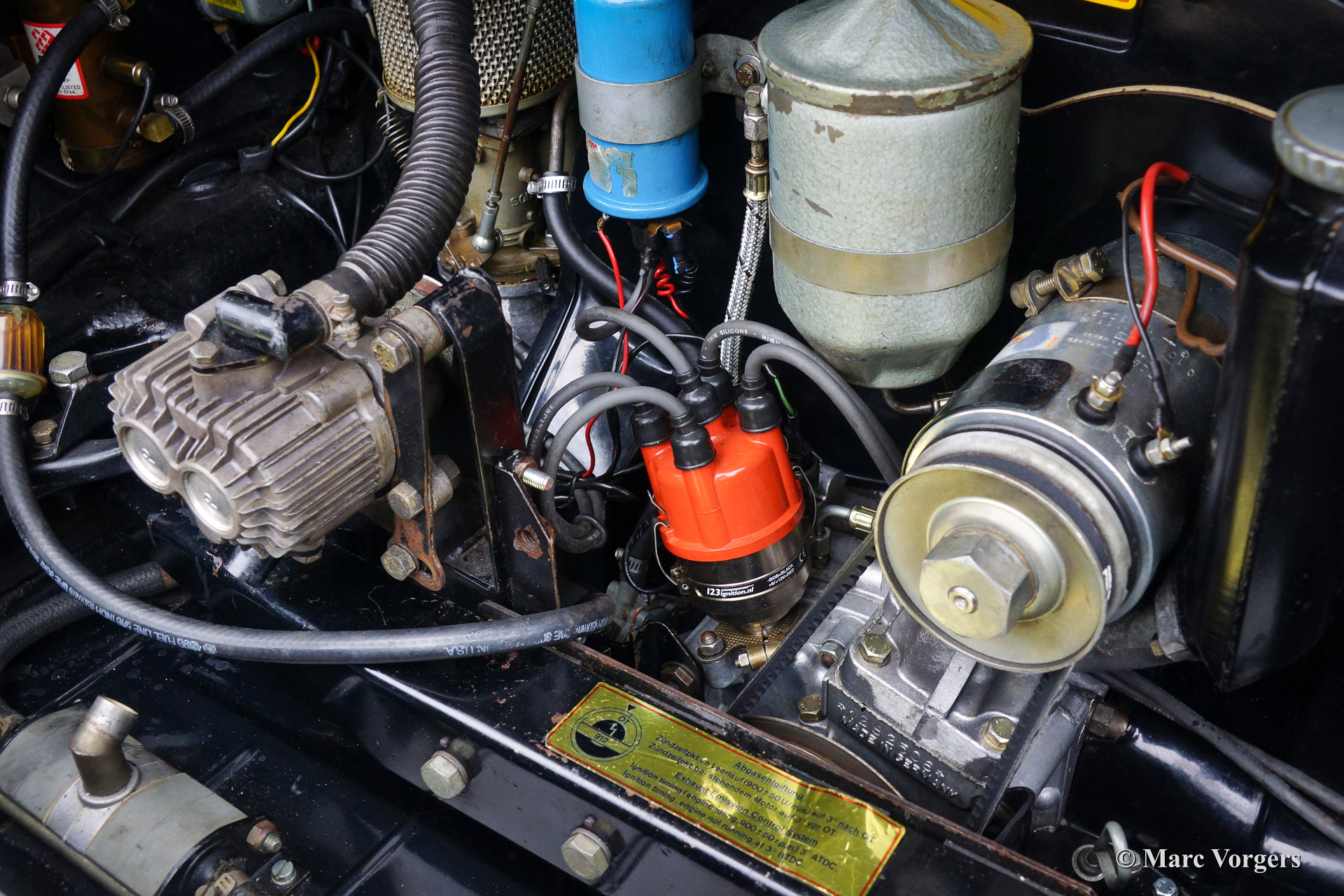 The Porsche 356-001 was built using a chassis with tubular framework covered with aluminium body panels. Mechanically the car was based on Volkswagen components. The Porsche 356-001 was equipped with a center mounted engine located just in front of the rear axle.