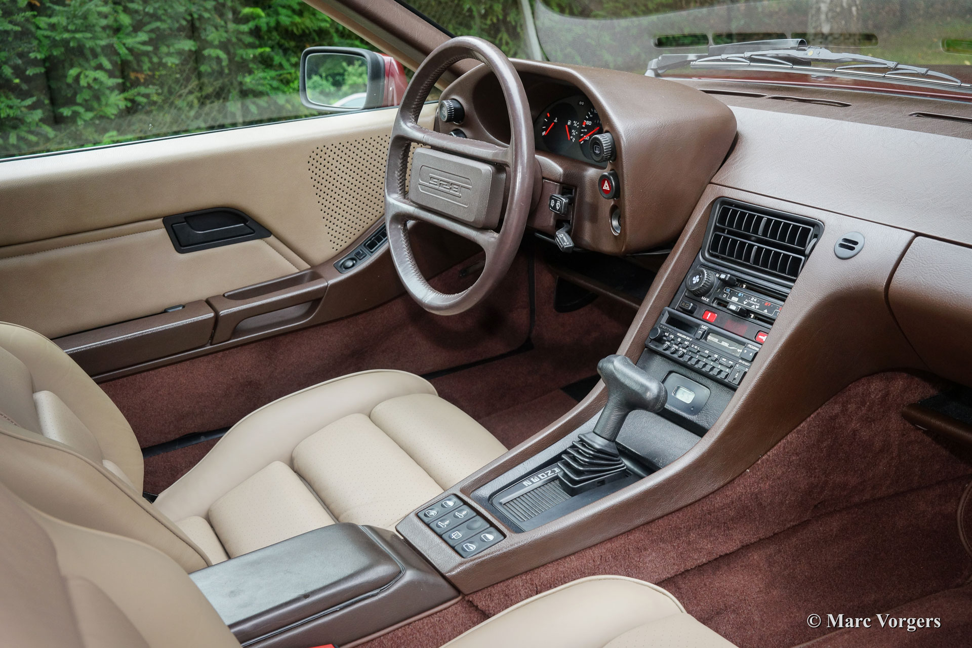 Porsche 928 S, Jahr 1984. Farbe dunkelrot metallic mit einem passenden Zwei-Ton Innenraum und beige Ledersitze. Dieser fabelhafte Porsche 928 wurde in der Schweiz Neu geliefert. Von neu hat das Auto nur drei fürsorgliche Besitzer gekannt, die Genossen und fuhren das Auto über 96.000 herrliche Kilometer. 1000 Kilometer kann man ja glauben, denn das Auto zeigt keine Anzeichen von Gebrauch, wenn man sie mit dem bloßen Auge inspiziert ... dieses Porsche 928 S ist in makellosem TOP Zustand, wie NEU! Im Jahr 2015 wurde der Porsche vollständig inspiziert, gewartet und gepflegt von Porsche Malaga, um einen ‘Porsche approved ' Dokument zu erhalten. Während des Prozesses wurde der Wagen komplett auf den neuesten Stand gebracht, ferner wurde der Teppich und die Lederausstattung erneuert, wie auch die Reifen. Die Rechnung mit der Beschreibung der Arbeiten besteht aus fünf Seiten, eine gründliche Arbeit!