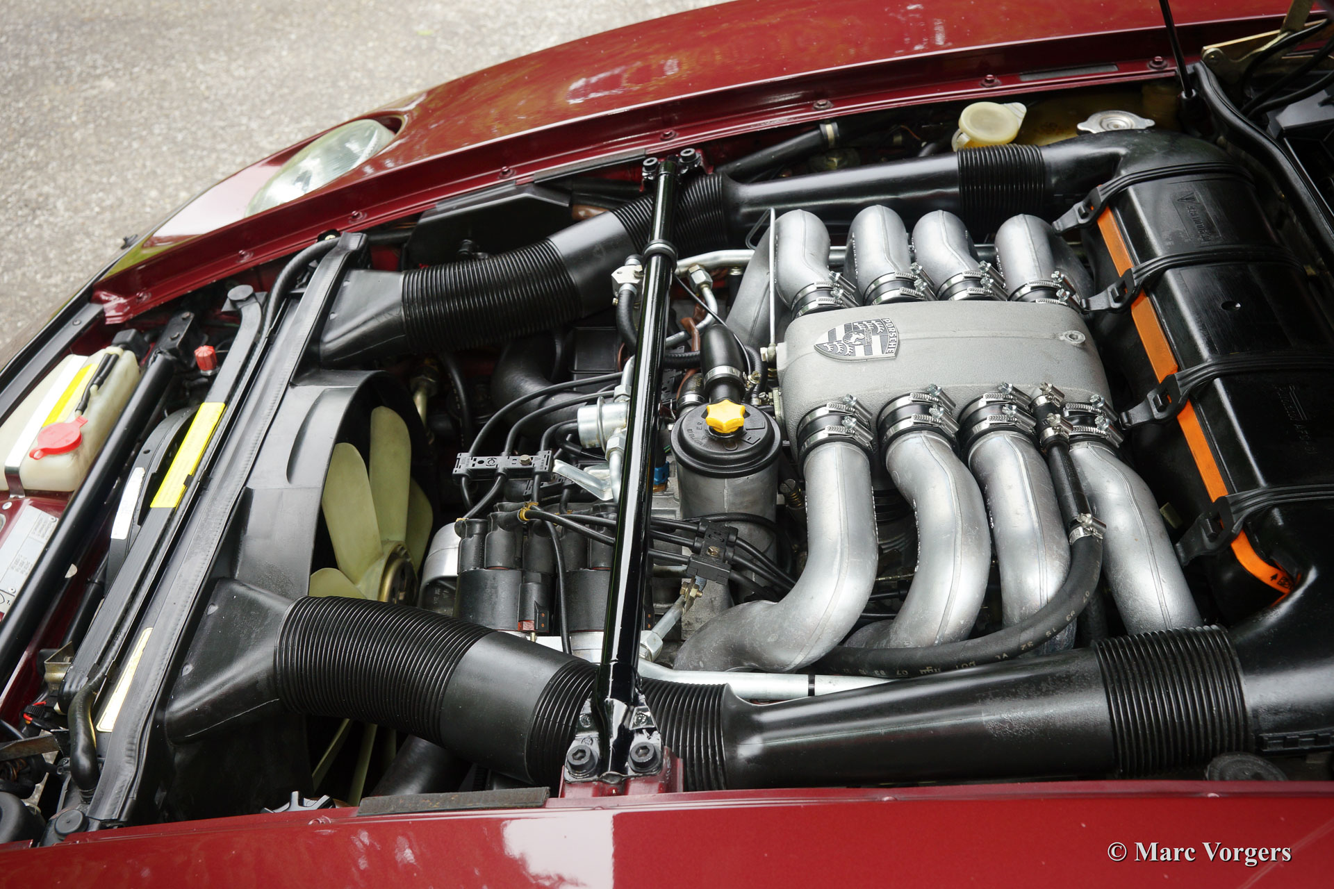 The Porsche 928 was meant to serve a different type of customers: people who found the 911 far to racy and Porsche customers who wanted to own a Porsche Gran Turismo. The excellent aluminium 4474 cc. V8 engine was engineered by Porsche and the earliest models already delivered 240 DIN bhp. power output. In 1979 the Porsche 928 S was introduced featuring a larger cylinder capacity of 4664 cc. and an enlarged power output of 310 bhp.