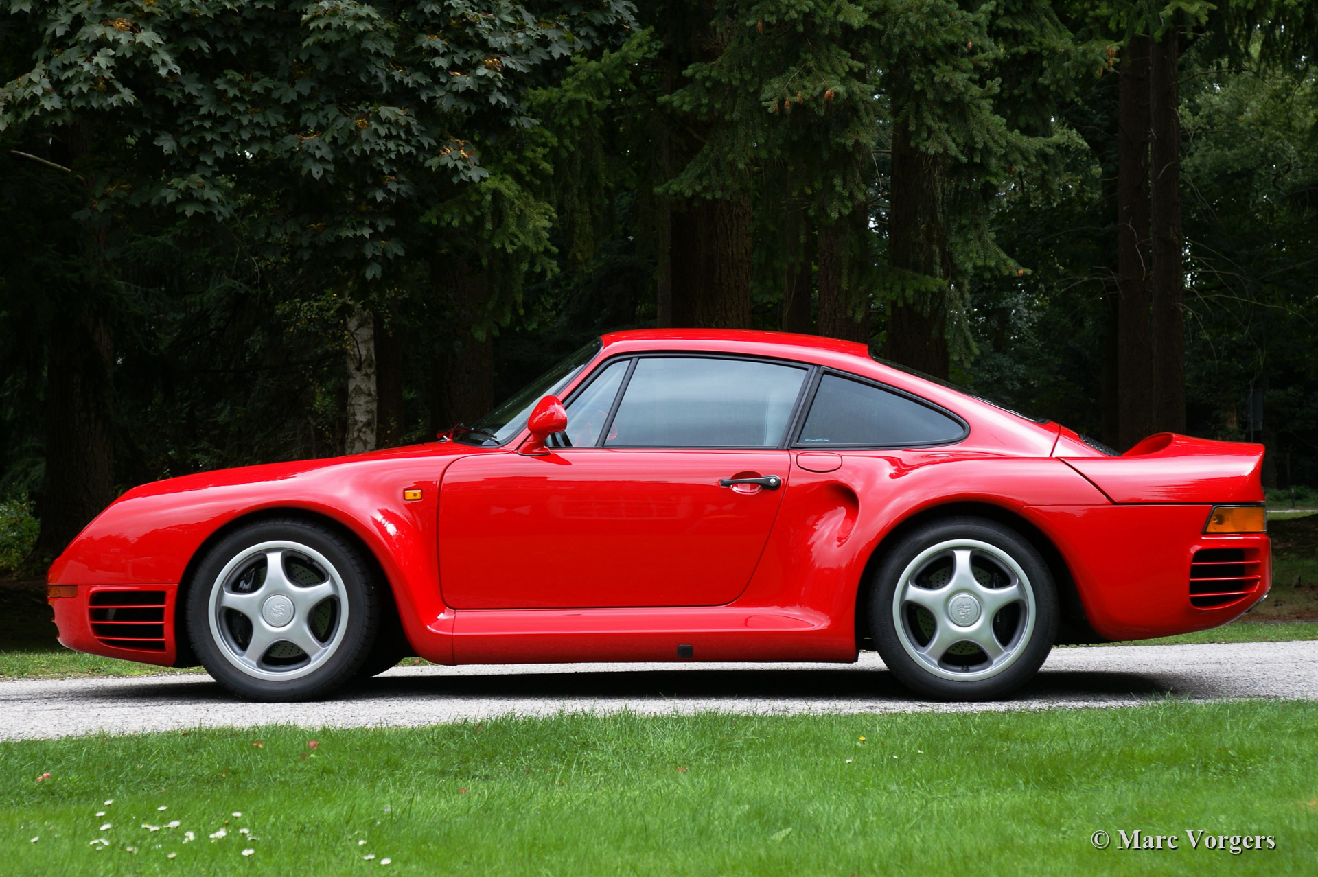 Porsche 959, year 1988. Colour red with a grey leather interior. This fabulous Porsche 959 is in top condition and the car shows all original details.