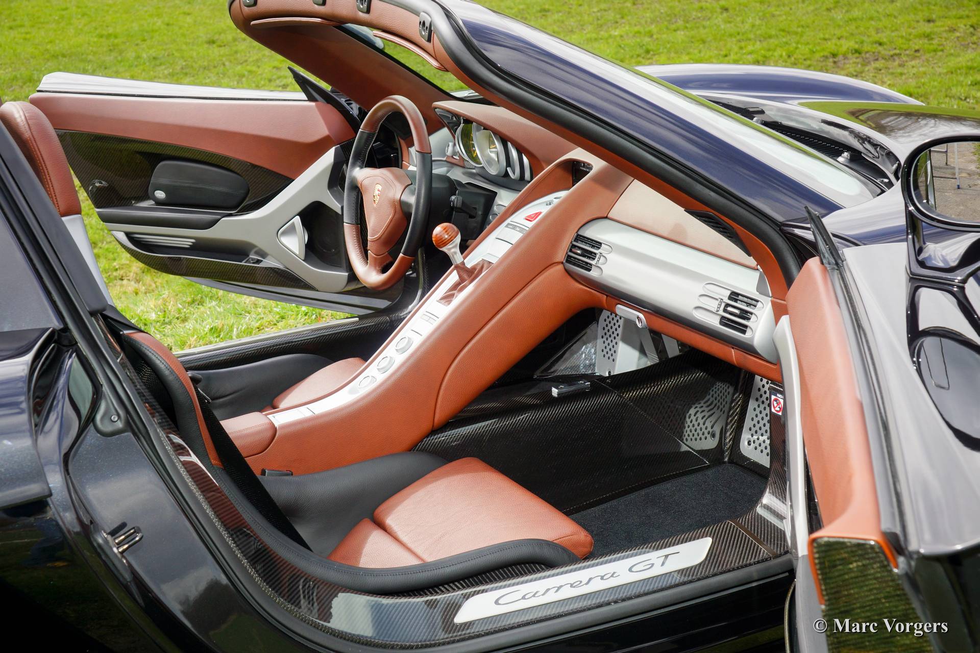 Porsche Carrera GT, Baujahr November 2005. Farbe basaltschwarz metallic mit einer zweifarbigen Lederausstattung, Ascot braun mit schwarz.