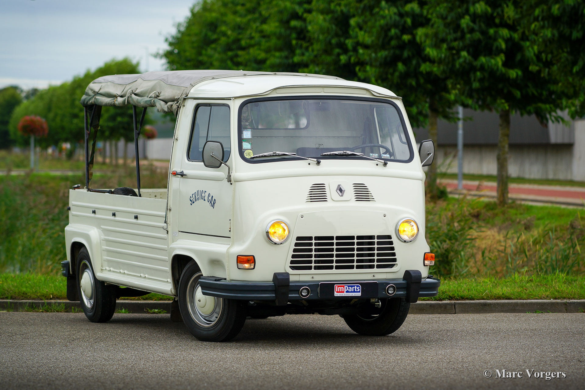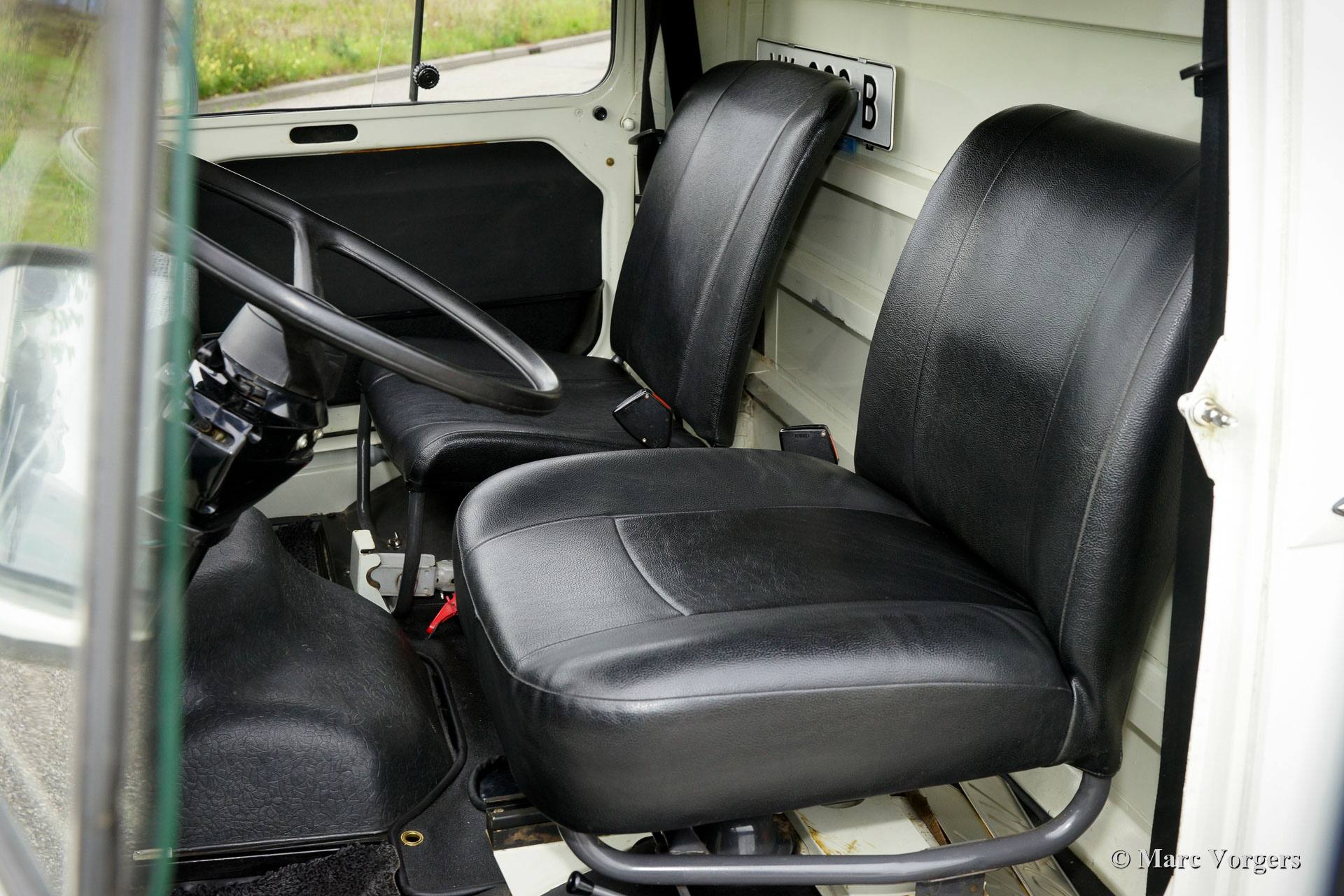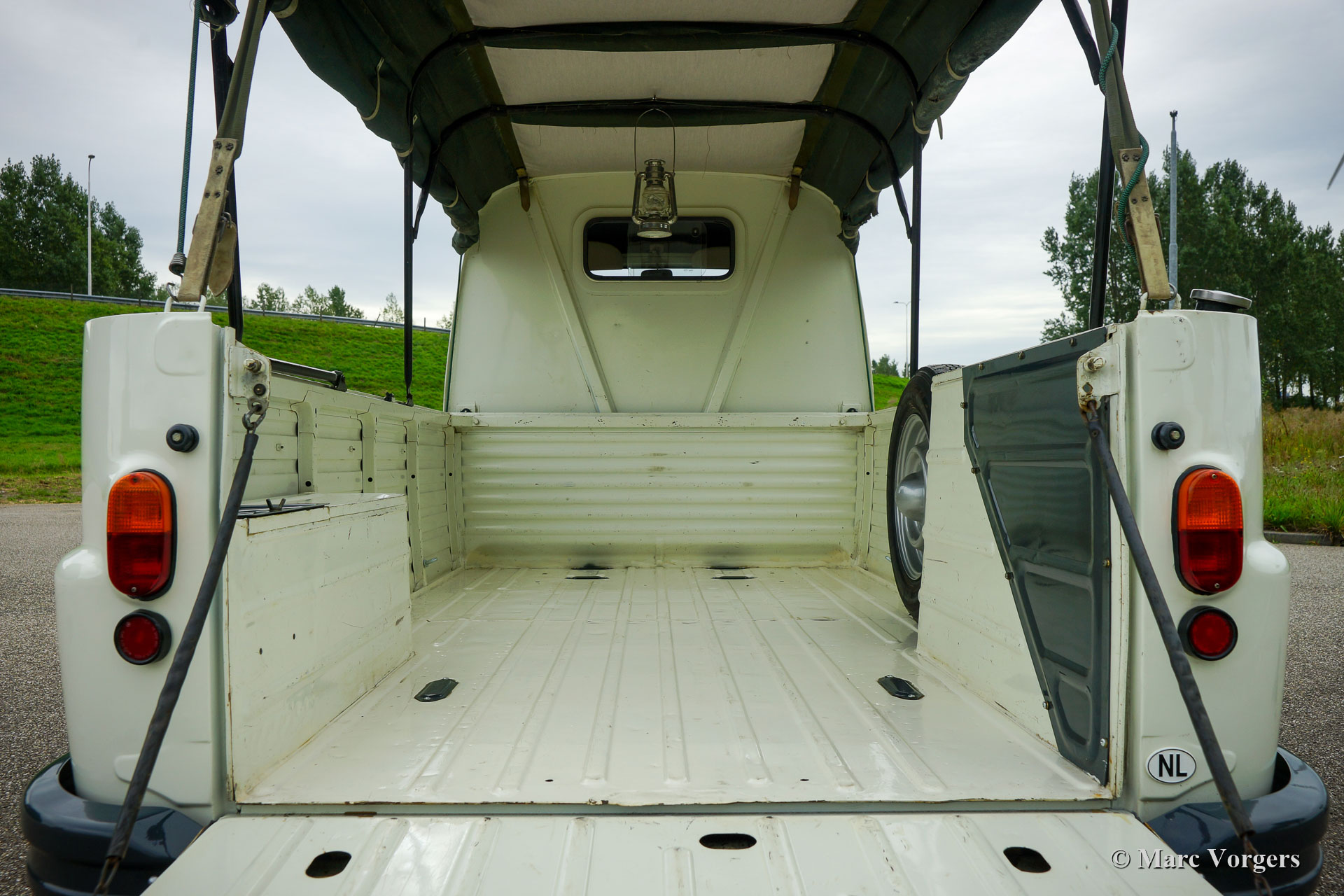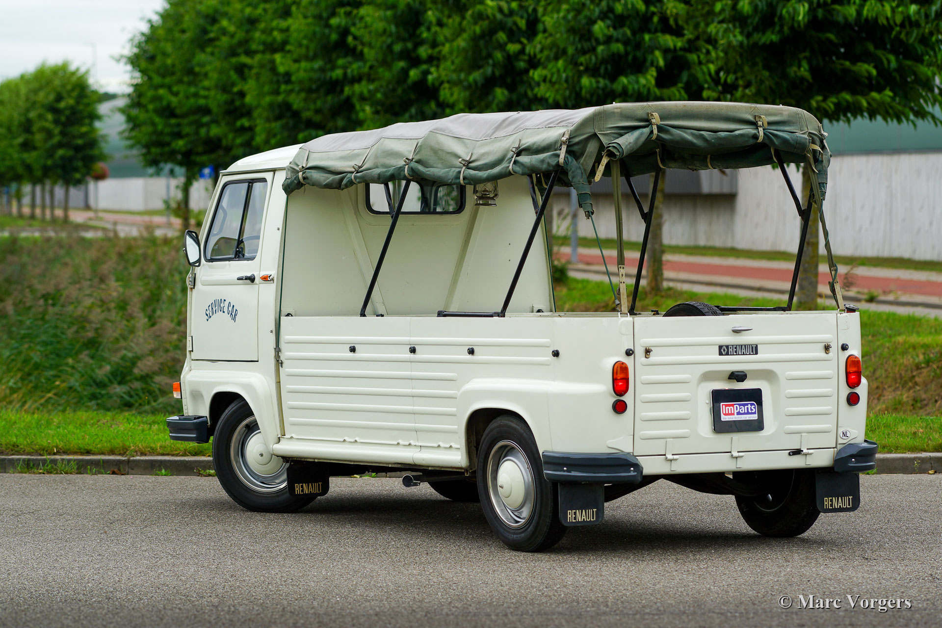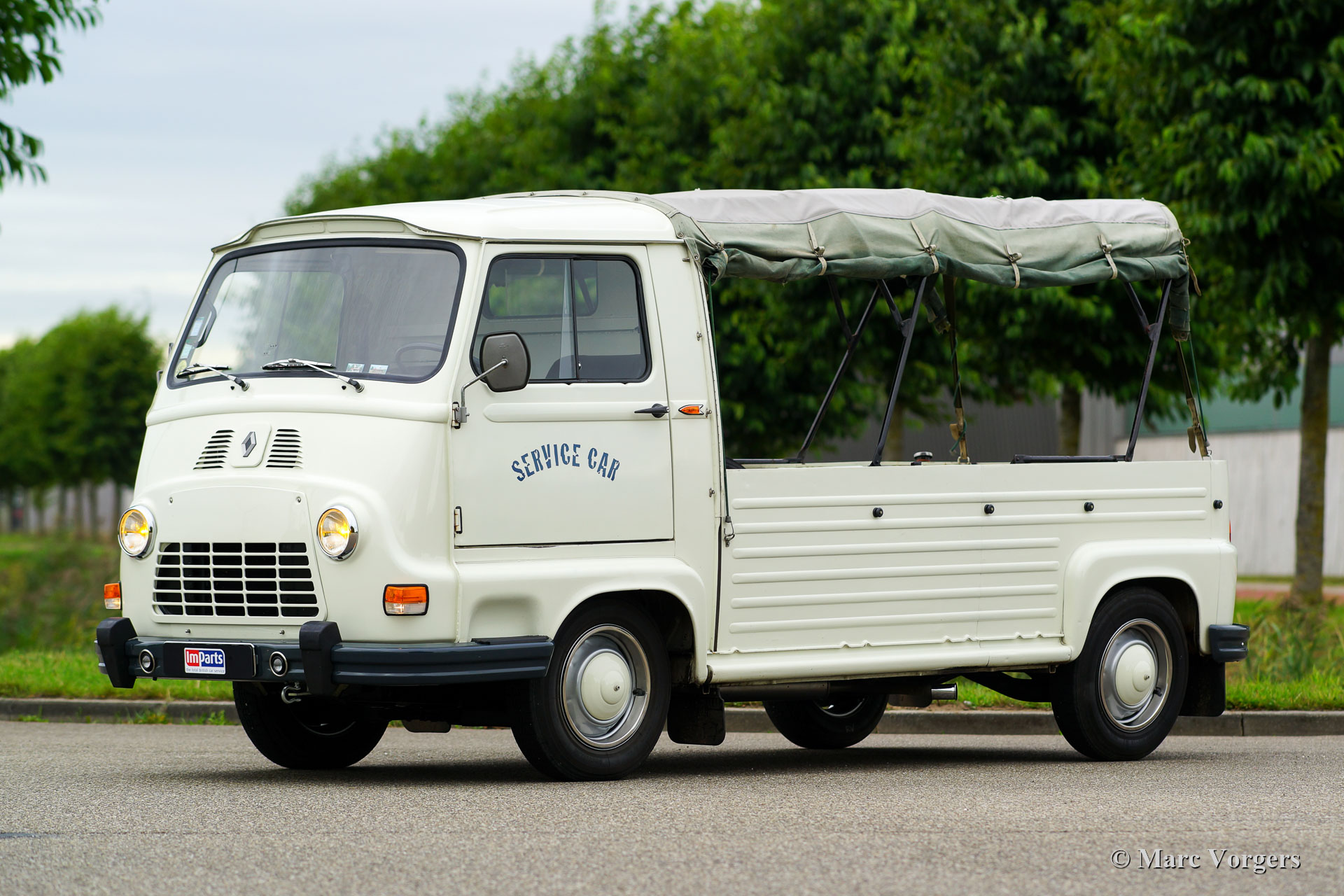 Renault Estafette ‘Plateau’ (Pick-Up), Jahr 1979. Farbe Cremeweiß kombiniert mit einem schwarzen Innenraum und einer grünen Pritschenverdeck. Dieser Renault Estafette (Typ R2137) ist ein seltenes ‚Plateau‘ -Modell (Pick-Up) mit einem Verdeck über dem Ladeboden. Dieses sehr schöne Nutzfahrzeug befindet sich in einem ausgezeichneten Originalzustand; das Auto ist erst 26.000 Kilometer vom neu gefahren! Das Fahrzeug wird komplett mit französischen und niederländischen Broschüren geliefert. Das Auto fährt wie neu! Dieser Renault Estafette kann ein schönes ‚Aushängeschild‘ oder ein Oldtimer-Transporter für Ihren Firma / Laden sein!