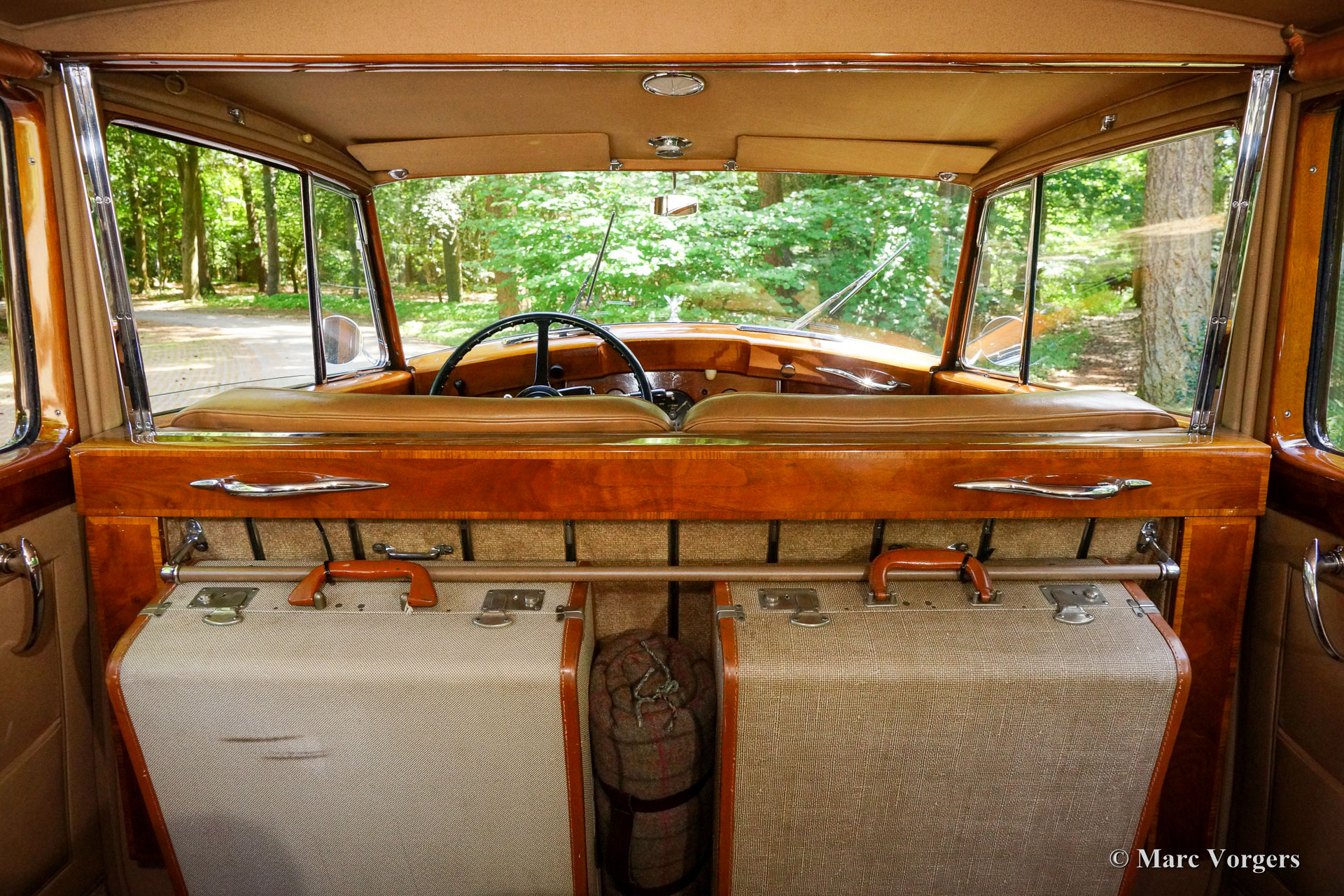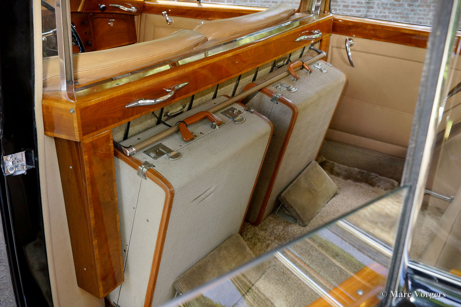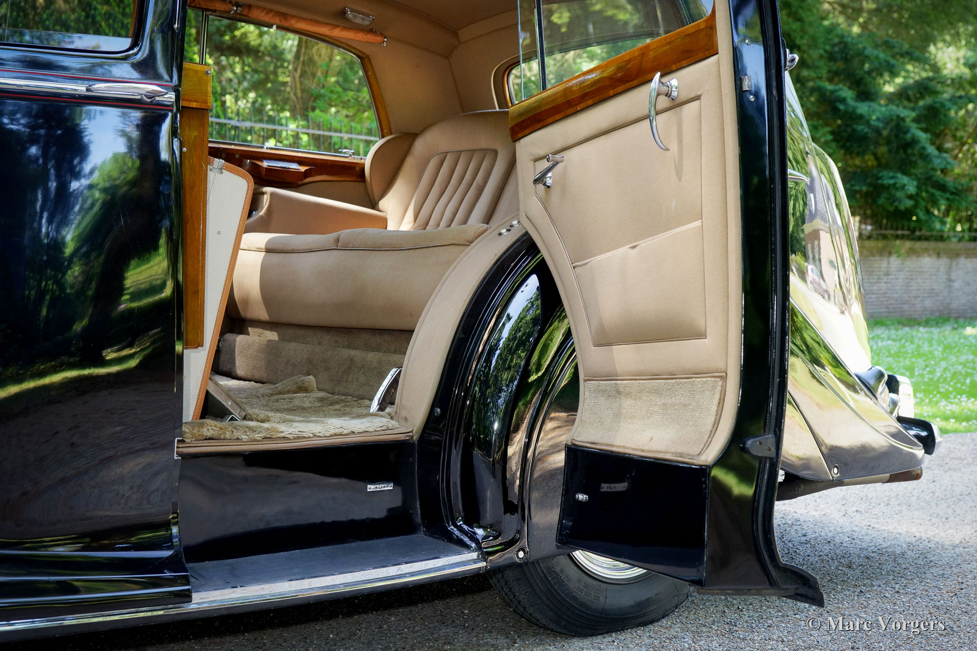 Rolls-Royce Silver Wraith, Jahr 1952. Farbe schwarz. Im herrlichen Innenraum sitzen Fahrer und Beifahrer auf beige Ledersitzen. Der ultra-luxuriöse Fahrgastraum verfügt über beigefarbene und ganz sanfte Tuchpolsterung und tiefen Wollteppich. Dieser wunderschöne und einzigartige Rolls-Royce wurde neu an einen italienischen Graf verkauft und ist seit vielen Jahrzehnten im Dienst der Familie gewesen. Ein einzigartiges Automobil mit Links-Lenkung (und einer sehr bemerkenswerten Karosserie von Mulliner. Dieser Rolls-Royce ist in einem sehr guten und voll originalen Zustand: eine prächtige Zeitmaschine! Das Fahrerlebnis in der Front ist eine der einfachen Leichtigkeit der Bedienung von dieser großen Maschine. Im hinteren Bereich werden die Passagiere in ihrem eigenen "Kokon" mit meisterhaften Sitzen, Roll-Vorhängen, Füßen Absätze und vieles mehr verwöhnt. Die Wochenende Reisekoffer befinden sich ordentlich vor den Füßen. Die Fahrer- und Fahrgasträume können mit einer elektrisch betriebenen Glasplatte geteilt werden. Die Rolls-Royce Silver Wraith ist das letzte Rolls-Royce 'Chassis', das von Karosserie Firmen wie Mulliner gekleidet wurde. Diese großzügige Limousinen Karosserie von Mulliner ist eine sehr beeindruckende Schöpfung, die den Passagieren einen herrlichen Blick auf und über die Landschaft bietet. Diese Limousine muss für längere transeuropäische Reisen verwendet worden sein; Das Auto kommt mit einem großen originalen (abnehmbaren) Dachträger und Schneeketten!