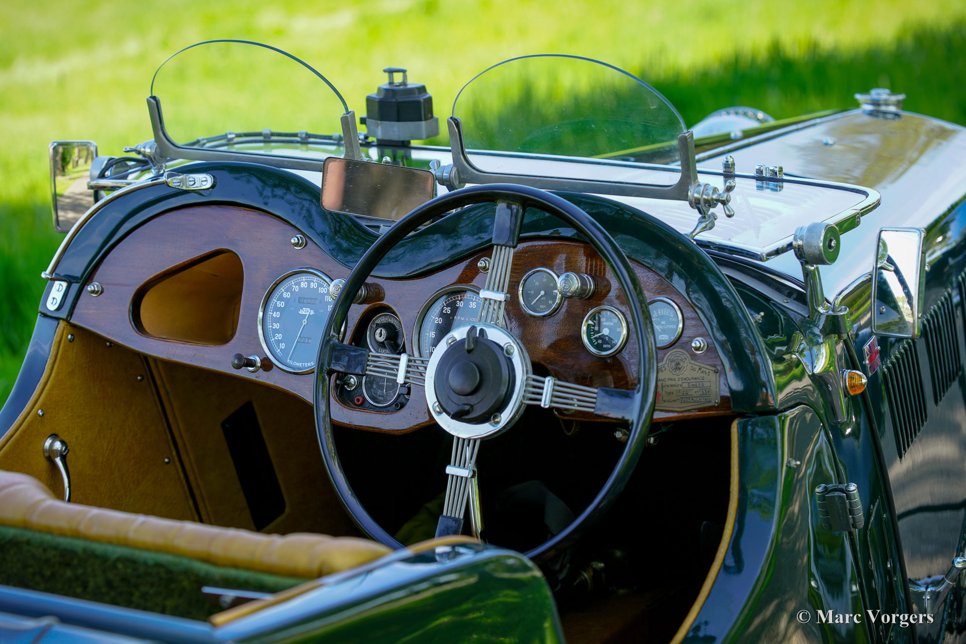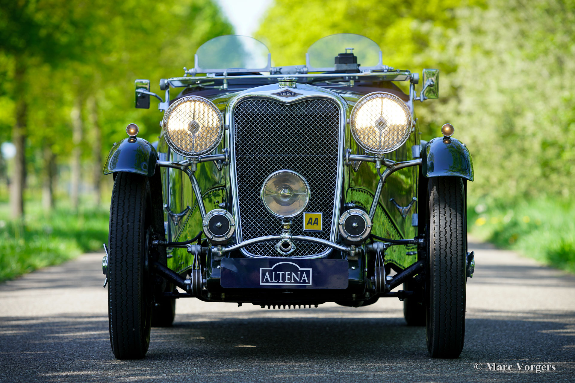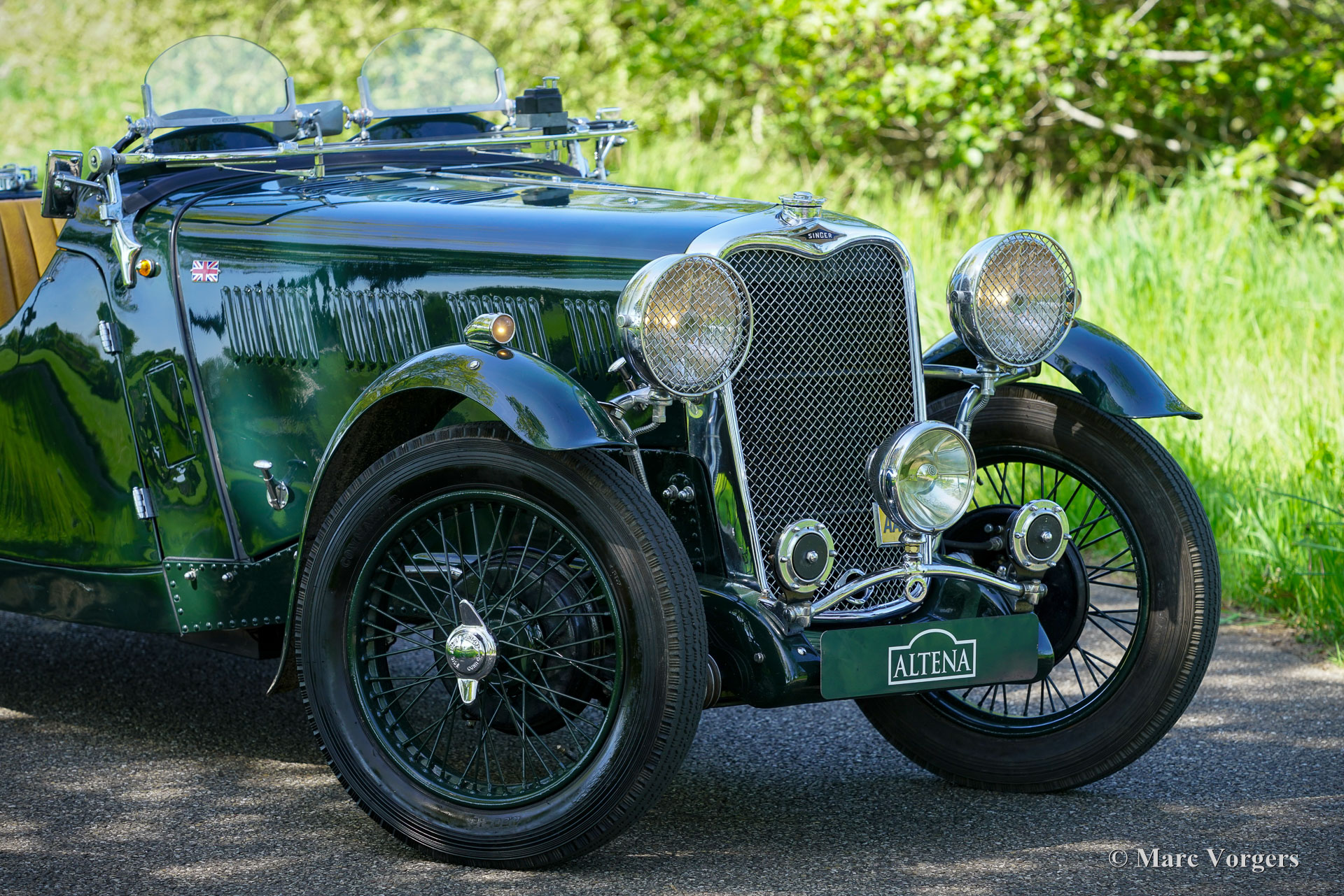 Singer Nine „Special Speed“, Baujahr 1935. Außenfarbe dunkles British Racing Green, kombiniert mit einer hellbraunen (dunkelbeigen) Kunstlederausstattung und grünem Teppich. Dieser fantastische Singer wurde als Neuwagen in Großbritannien verkauft, die vollständige Historie ist bekannt und vom ersten Tag an dokumentiert! Dieser Singer Nine ist ein seltenes „Special Speed“-Modell, das 1935 als stärkere Version des Singer Nine „Le Mans“ eingeführt wurde. Das Modell „Special Speed“ erhielt einen getunten 38,5 PS (28,7 kW) starken Motor mit zwei vertikalen Solex-Vergasern (30 IF), einen Schnellzylinderkopf mit abgewinkelten Zündkerzen, ein schwereres Schwungrad aus Gusseisen und eine ausgewuchtete Kurbelwelle (mit Gegengewichte, die das Gewicht der Pleuelstangen ausgleichen.) Außerdem wurde ein größerer 61-l-Benzintank eingebaut und der Fahrgastraum durch Versetzen der Reserveräder nach hinten vergrößert. Die Singer Nine-Autos wurden in ganz Großbritannien häufig bei Bergrennen und Trials eingesetzt, und die Autos fuhren in den kleineren Klassen in Brooklands und Donington. Der große internationale Erfolg des Singer Nine im Renntrimm war der 7. Platz in der Gesamtwertung beim 24-Stunden-Rennen von Le Mans im Jahr 1934. Bei diesem Singer Nine „Special Speed“-Modell finden Sie auf dem Armaturenbrett eine Bronzetafel, die an diese enorme Leistung erinnert. Dieser Riley Nine „Special Speed“ wurde 2008 bis ins kleinste Detail restauriert und überholt. In 2001 hatte das Auto seit dem Umbau nur 500 Kilometer gefahren. Der aktuelle Besitzer ist seit dem Erwerb etwa 300 Kilometer gefahren und hat 2024 neue Speichenräder in der Wagenfarbe montieren lassen. Dieser Singer Nine „Special Speed“ ist in einem hervorragenden Zustand und das Auto fährt sich herrlich. Das Auto war stets im Besitz von Liebhabern, was die historischen Dokumente belegen. Alle Vorbesitzer sind bekannt, und jede Änderung oder Verbesserung wurde pünktlich vorgenommen. Ein beeindruckender Fotobericht der Restaurierung sowie das originale britische V5C-Dokument sind ebenfalls vorhanden. Dies ist eine großartige Gelegenheit, einen seltenen originalen Riley Nine „Special Speed“ zu erwerben! Wenn Sie ein Haus aus den 1930er Jahren mit einer kleinen Garage besitzen, ist dieses Auto ein großartiges Ausstellungsstück, das Sie zum Fahren und Genießen einlädt!