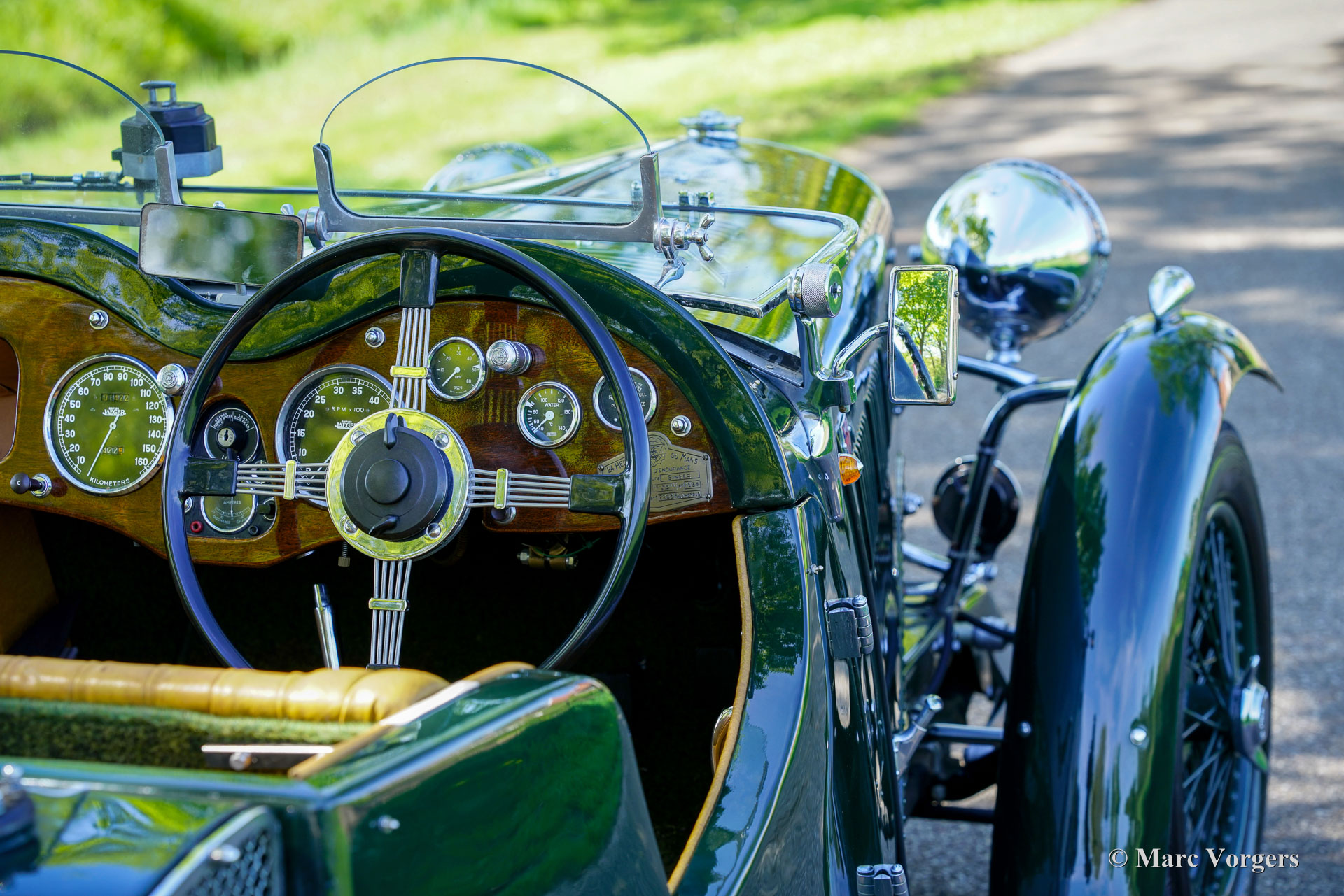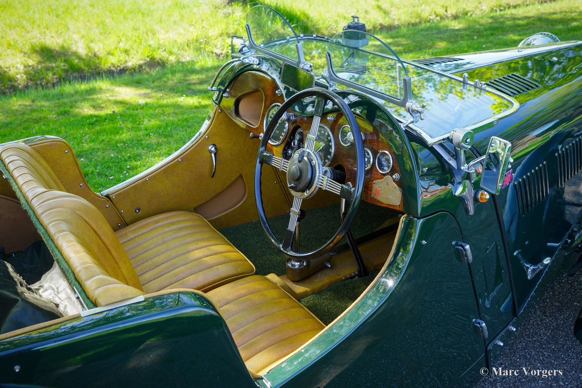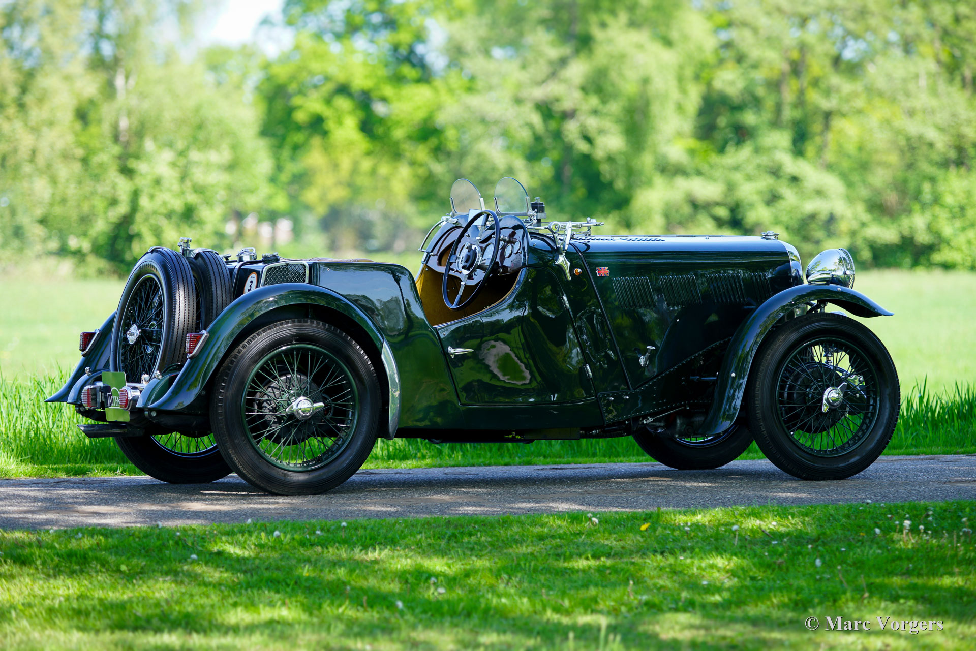 Singer Nine „Special Speed“, Baujahr 1935. Außenfarbe dunkles British Racing Green, kombiniert mit einer hellbraunen (dunkelbeigen) Kunstlederausstattung und grünem Teppich. Dieser fantastische Singer wurde als Neuwagen in Großbritannien verkauft, die vollständige Historie ist bekannt und vom ersten Tag an dokumentiert! Dieser Singer Nine ist ein seltenes „Special Speed“-Modell, das 1935 als stärkere Version des Singer Nine „Le Mans“ eingeführt wurde. Das Modell „Special Speed“ erhielt einen getunten 38,5 PS (28,7 kW) starken Motor mit zwei vertikalen Solex-Vergasern (30 IF), einen Schnellzylinderkopf mit abgewinkelten Zündkerzen, ein schwereres Schwungrad aus Gusseisen und eine ausgewuchtete Kurbelwelle (mit Gegengewichte, die das Gewicht der Pleuelstangen ausgleichen.) Außerdem wurde ein größerer 61-l-Benzintank eingebaut und der Fahrgastraum durch Versetzen der Reserveräder nach hinten vergrößert. Die Singer Nine-Autos wurden in ganz Großbritannien häufig bei Bergrennen und Trials eingesetzt, und die Autos fuhren in den kleineren Klassen in Brooklands und Donington. Der große internationale Erfolg des Singer Nine im Renntrimm war der 7. Platz in der Gesamtwertung beim 24-Stunden-Rennen von Le Mans im Jahr 1934. Bei diesem Singer Nine „Special Speed“-Modell finden Sie auf dem Armaturenbrett eine Bronzetafel, die an diese enorme Leistung erinnert. Dieser Riley Nine „Special Speed“ wurde 2008 bis ins kleinste Detail restauriert und überholt. In 2001 hatte das Auto seit dem Umbau nur 500 Kilometer gefahren. Der aktuelle Besitzer ist seit dem Erwerb etwa 300 Kilometer gefahren und hat 2024 neue Speichenräder in der Wagenfarbe montieren lassen. Dieser Singer Nine „Special Speed“ ist in einem hervorragenden Zustand und das Auto fährt sich herrlich. Das Auto war stets im Besitz von Liebhabern, was die historischen Dokumente belegen. Alle Vorbesitzer sind bekannt, und jede Änderung oder Verbesserung wurde pünktlich vorgenommen. Ein beeindruckender Fotobericht der Restaurierung sowie das originale britische V5C-Dokument sind ebenfalls vorhanden. Dies ist eine großartige Gelegenheit, einen seltenen originalen Riley Nine „Special Speed“ zu erwerben! Wenn Sie ein Haus aus den 1930er Jahren mit einer kleinen Garage besitzen, ist dieses Auto ein großartiges Ausstellungsstück, das Sie zum Fahren und Genießen einlädt!