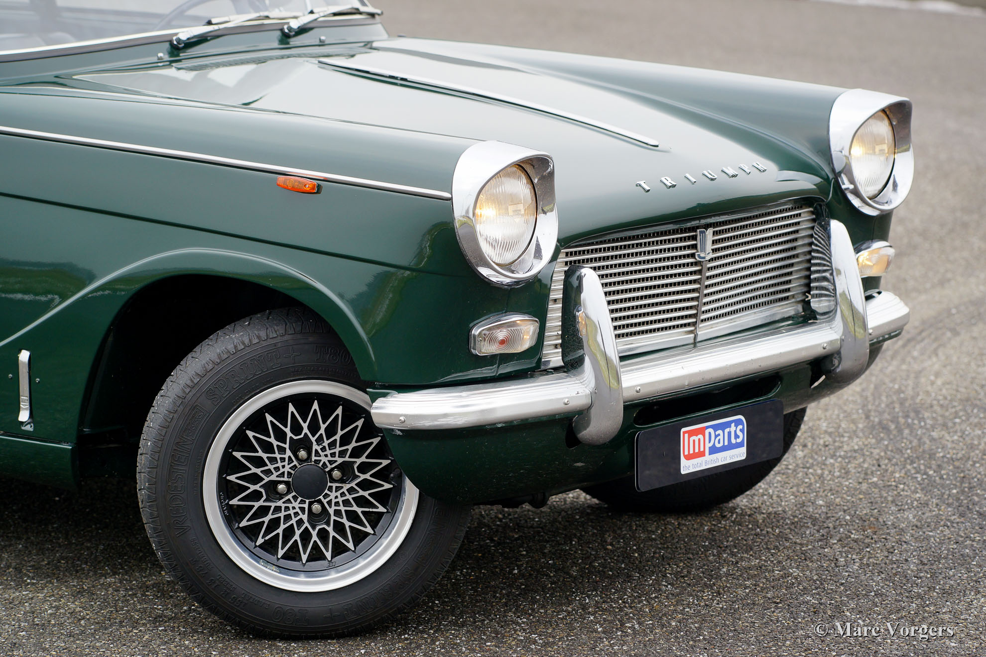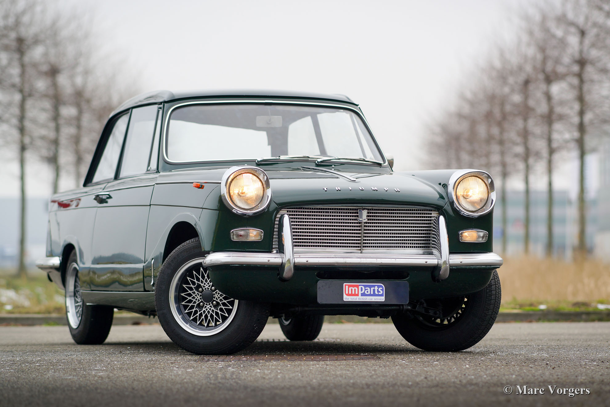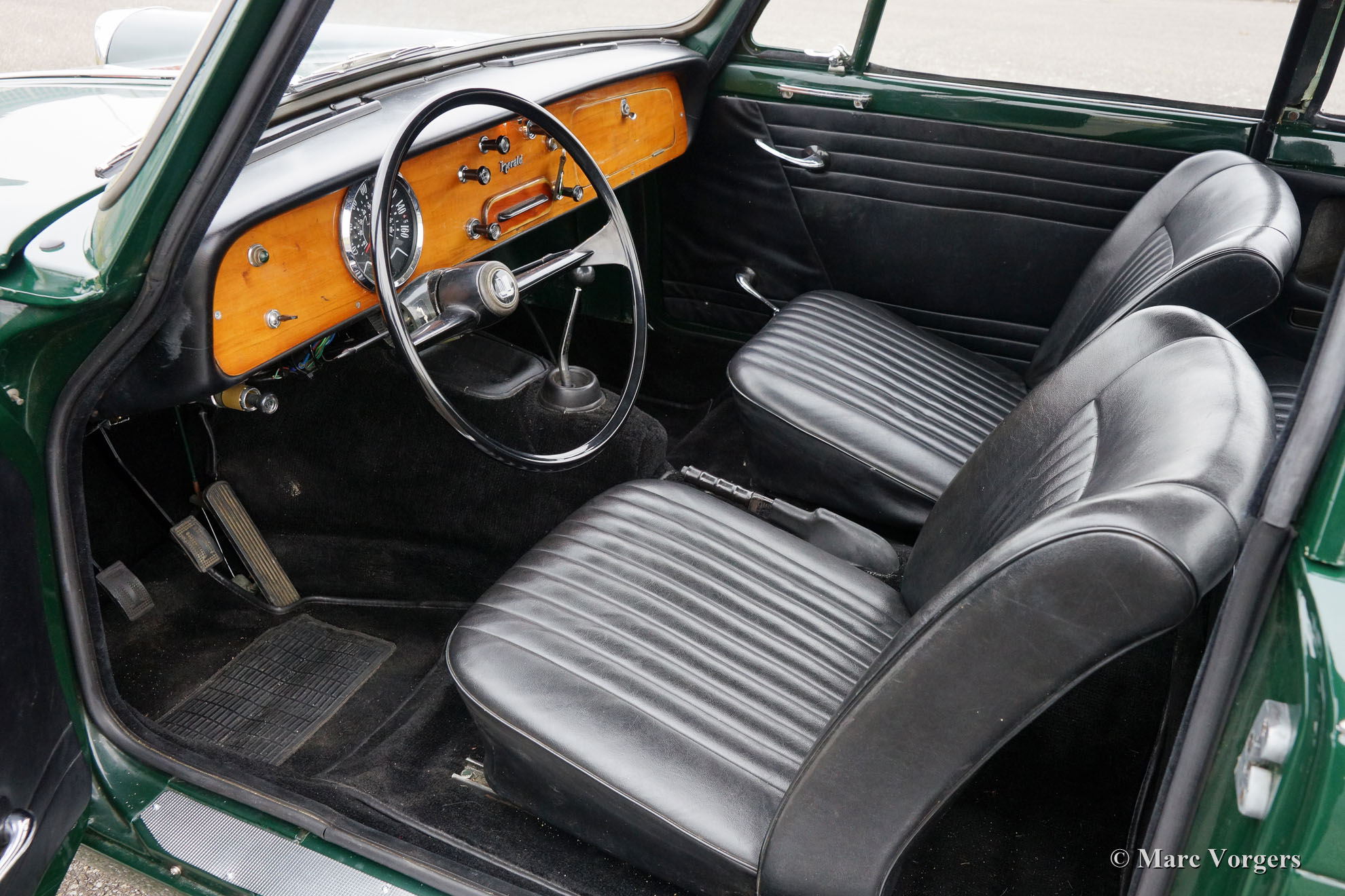 Triumph Herald 12/50, Jahr 1966. Farbe British Racing Green mit schwarzem Kunstleder Innenraum. Dieser sehr schöne Triumph wurde in Belgien neu verkauft. Vor ein paar Jahren fand das Auto einen neuen Besitzer in den Niederlanden. Dieser Triumph Herald wurde vor ein paar Jahren restauriert, das Auto ist in einem sehr guten Zustand und das Auto fährt sehr gut. Das Auto verfügt über schöne leichte Leichtmetallfelgen. Die Original-Stahlräder mit Chrom Nabe-Kappen sind auch im Kauf enthalten.