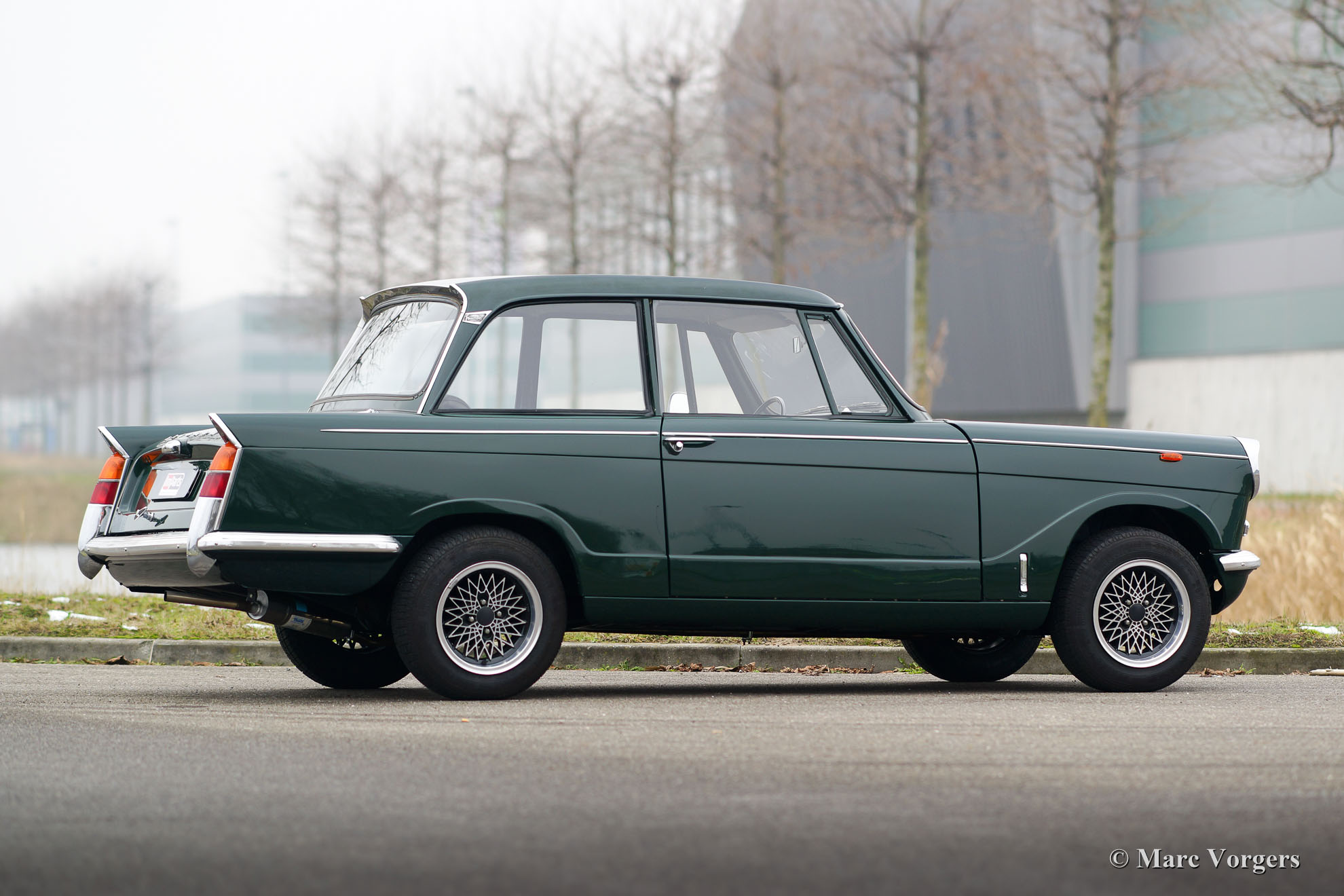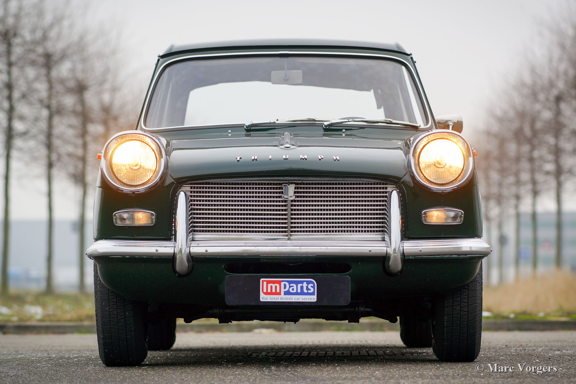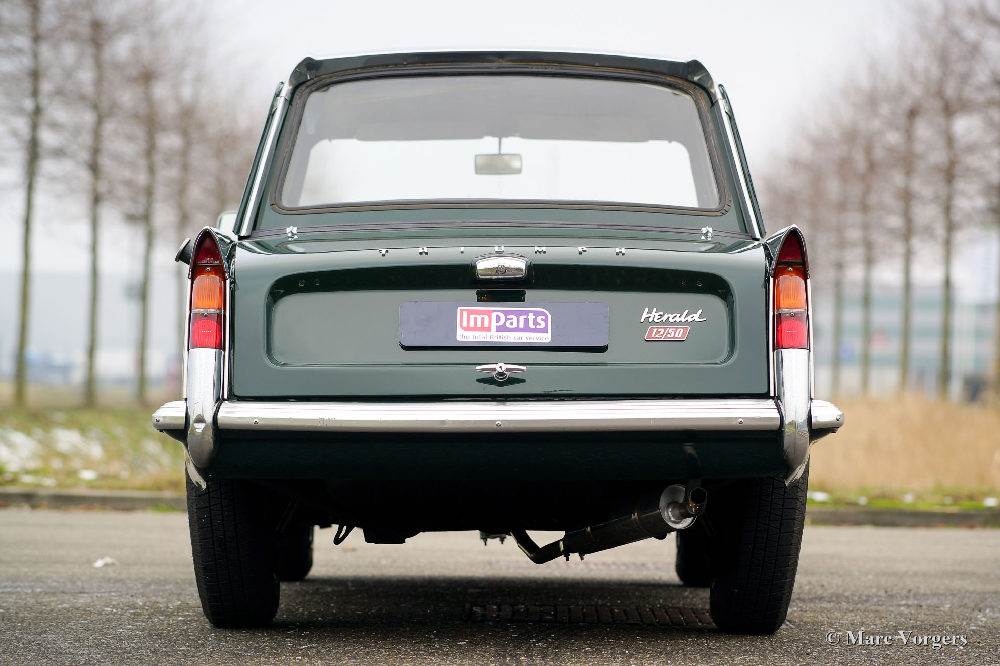 Triumph Herald 12/50, Jahr 1966. Farbe British Racing Green mit schwarzem Kunstleder Innenraum. Dieser sehr schöne Triumph wurde in Belgien neu verkauft. Vor ein paar Jahren fand das Auto einen neuen Besitzer in den Niederlanden. Dieser Triumph Herald wurde vor ein paar Jahren restauriert, das Auto ist in einem sehr guten Zustand und das Auto fährt sehr gut. Das Auto verfügt über schöne leichte Leichtmetallfelgen. Die Original-Stahlräder mit Chrom Nabe-Kappen sind auch im Kauf enthalten.