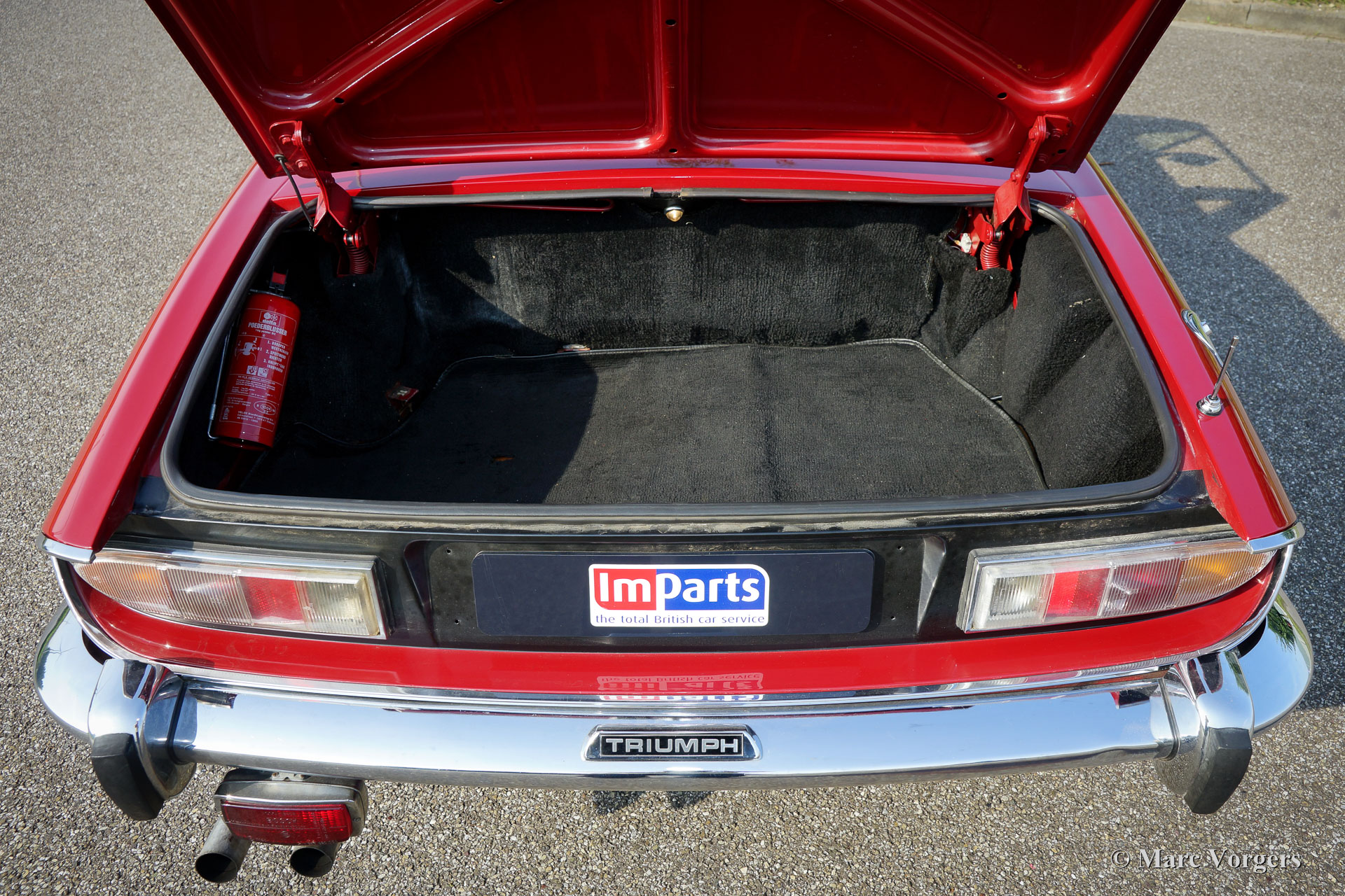 The Triumph Stag was presented in the year 1970. The Stag was not the successor of the famous TR range but an entirely new development for the important American market. In the late 1960'ies the safety of convertible models was questioned. For a while it seemed that convertibles and roadster would be banned. The Triumph Stag was designed with a sturdy, T-shape, roll over bar and the Triumph TR 7 was presented as a closed coupe for this reason. Like the TR 4, the Spitfire and many other Triumph models, the Stag was designed by the Italian Michelotti. De Stag was designed as a spacious and luxurious 2+2 touring convertible with a comfortable interior and safety seats. That was not all, Triumph even developed a brand new 3 Litre V8 engine for the Stag! This was quite strange because their British Leyland 'partner' Rover had the ideal V8 engine which was used for the Rover P5B since 1967. The Triumph Stag featured independent suspension and disc brakes all round. Power steering was a standard item. In the USA most Stags were ordered with an automatic gearbox. The story goes that designer Michelotti was 'not very happy' with the safety roll over bar. In his opinion the Stag would have been much better looking without this item. For that Michelotti invested in the design of the steel hard top which compliments the design of the Stag for sure!