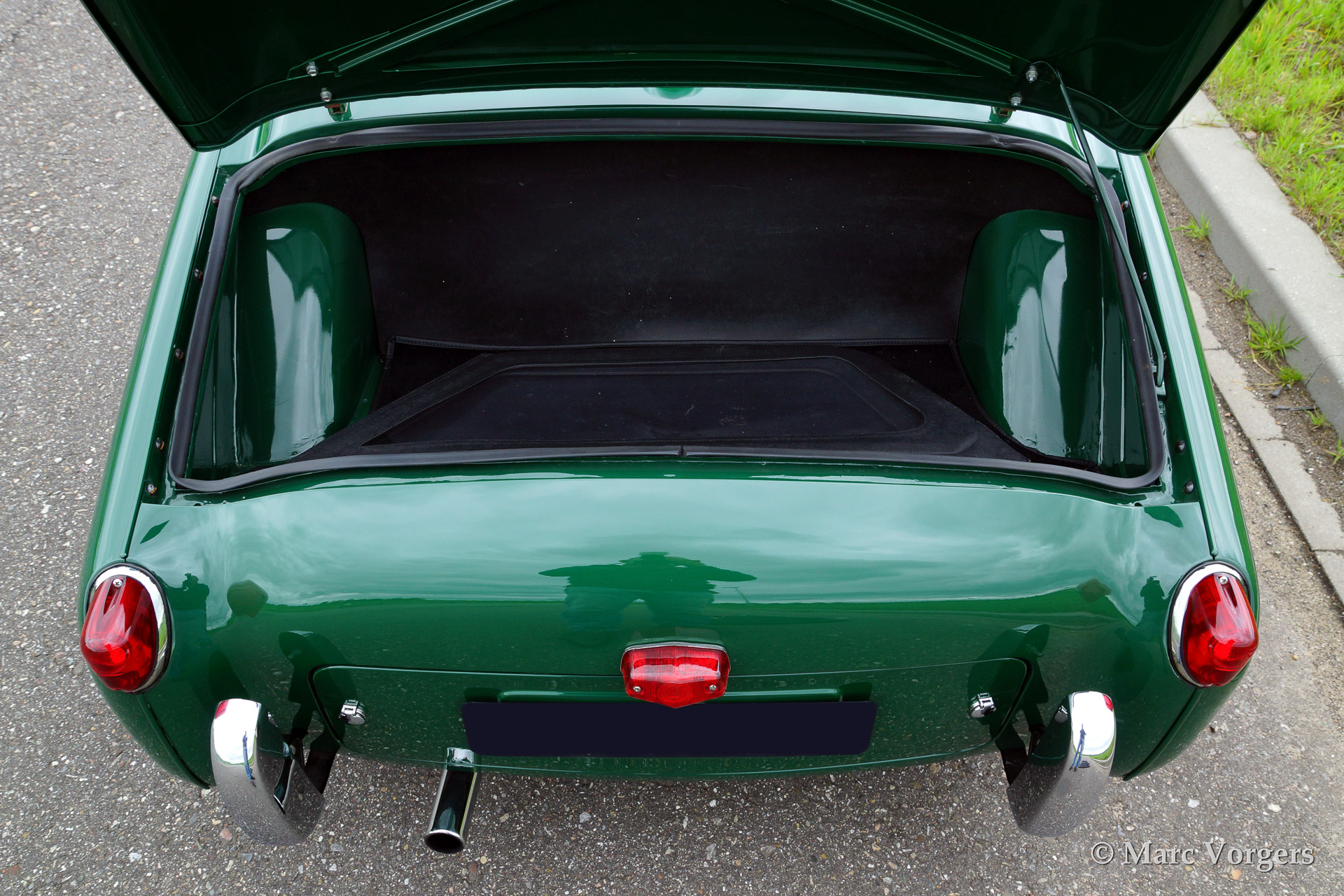 The TR 2 is a pure two-person roadster, a classic generously giving you the fifties British sports car feeling, rough but honest. It comes with a simple soft-top for weather protection. Separate clip-on side screens can additionally be attached to the doors.