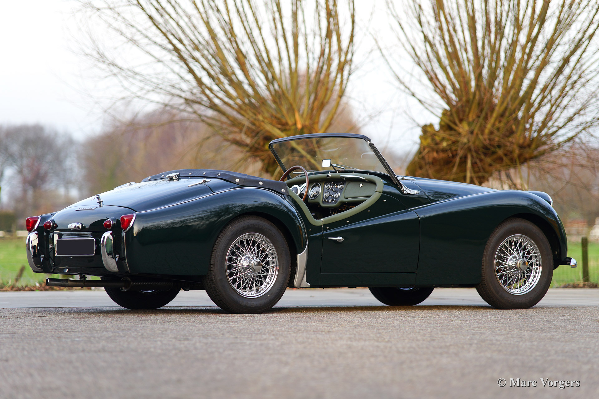 The Triumph TR 3 is a no nonsense sports car; very robust, simple and reliable, a true British sports car all over. The TR 3 was the first production car, off factory, equipped with disc brakes on the front-wheels. The engine was a Standard Vanguard based, cast-iron, long stroke, in-line four cylinder with a displacement of 1991cc. The TR 3 engine was equipped with two carburettors giving a power-output of almost 100 bhp.