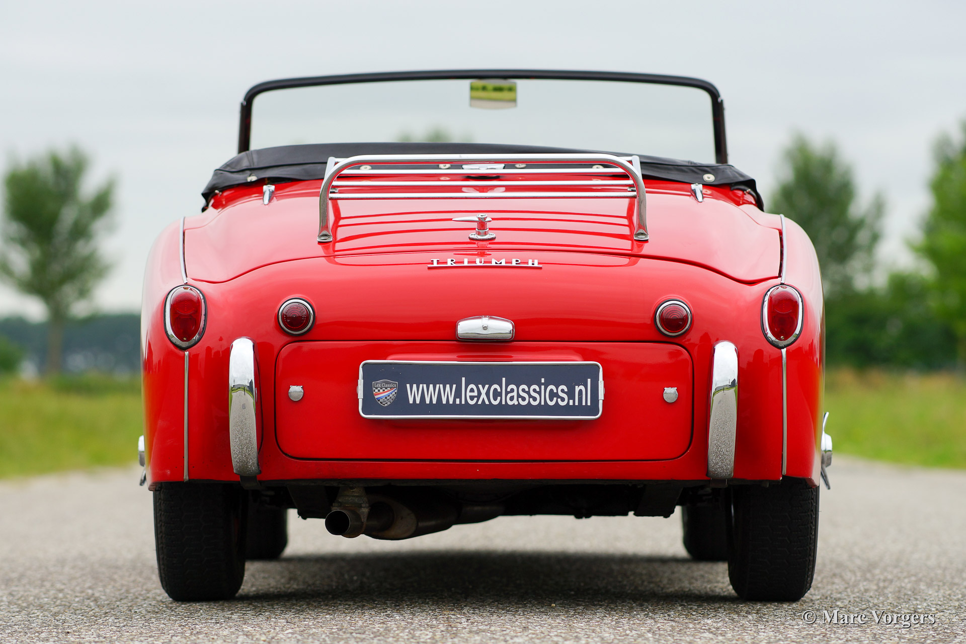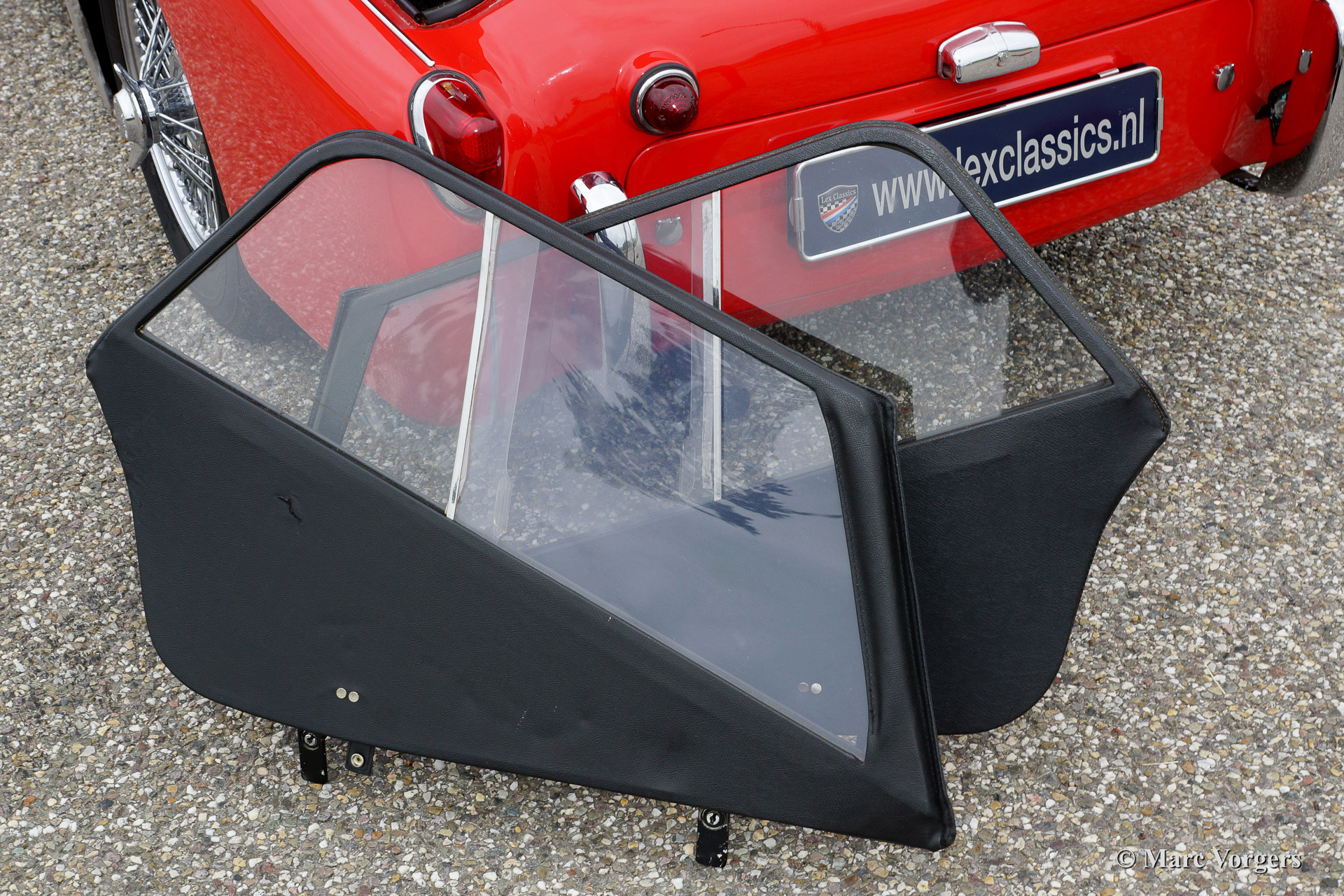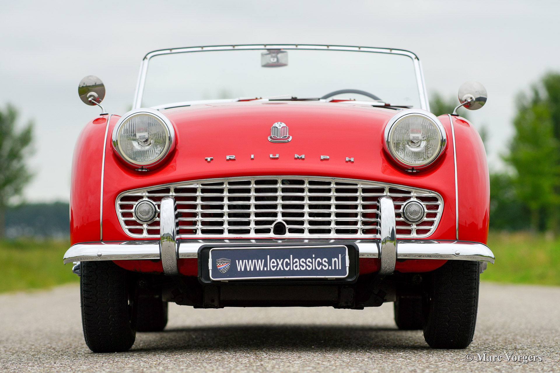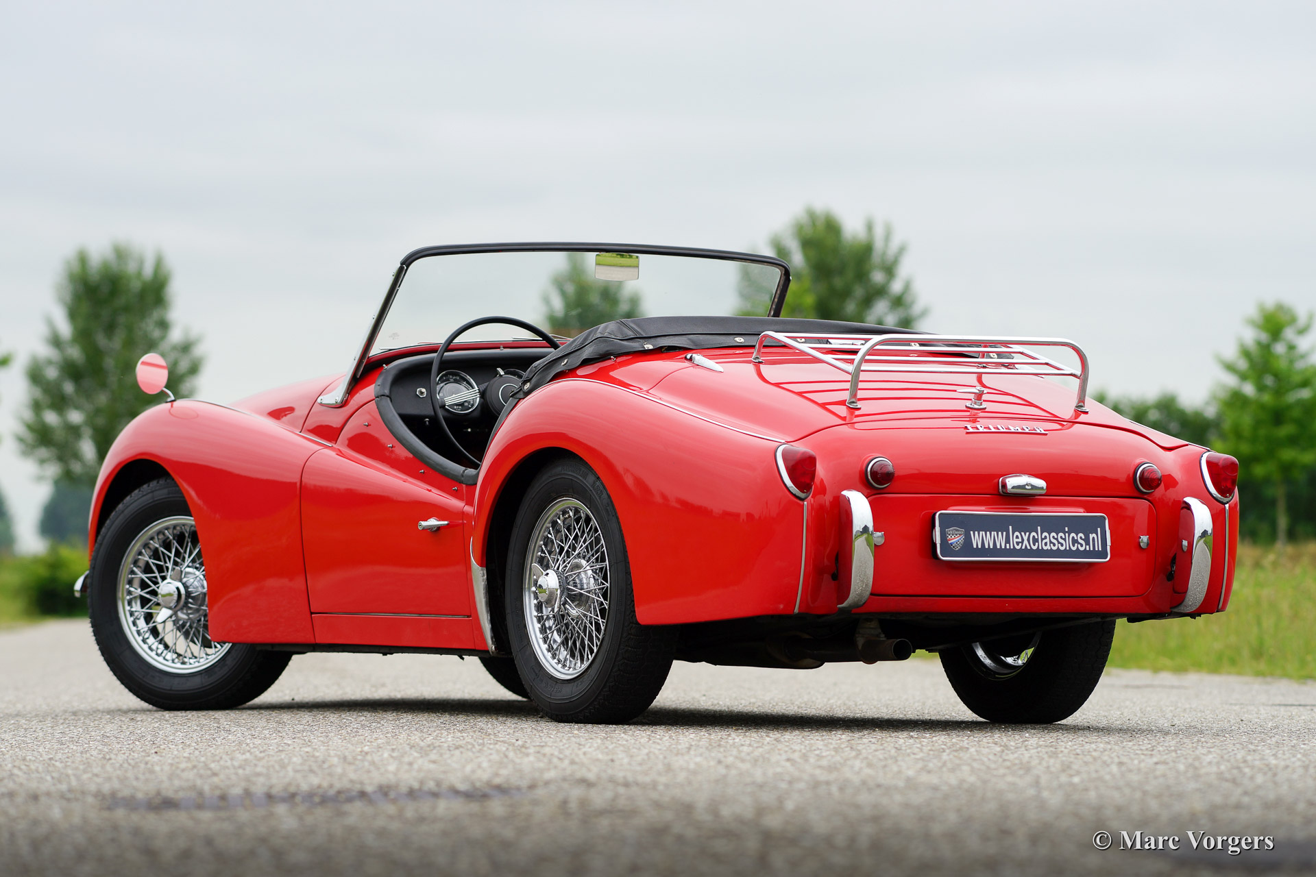 Triumph TR 3a, year 1959. Chassis number TS3359XXX, engine number TS233XX. Colour red with a black interior piped red. Black vinyl soft top, tonneau cover and black side screens. This beautiful Triumph TR 3a was imported to the Netherlands in the year 2000. Then the car was extensively restored. This Triumph TR 3a is in very good condition and the car drives perfectly. The car features silver enamelled wire wheels, a chrome luggage rack, oil filter modification, Kenlow electric cooling fan, high torque starter motor, Stainless Steel exhaust, Koni shock dampers and inertia reel safety harnesses. Recently the car received yearly service. The steering-box was renewed, CHROME wire wheels were fitted and the tires were renewed. This Triumph is currently not available in the Lex Classics showrooms. To inspect the car please schedule an appointment with Mr. Sjors Peters via the contact data provided below.