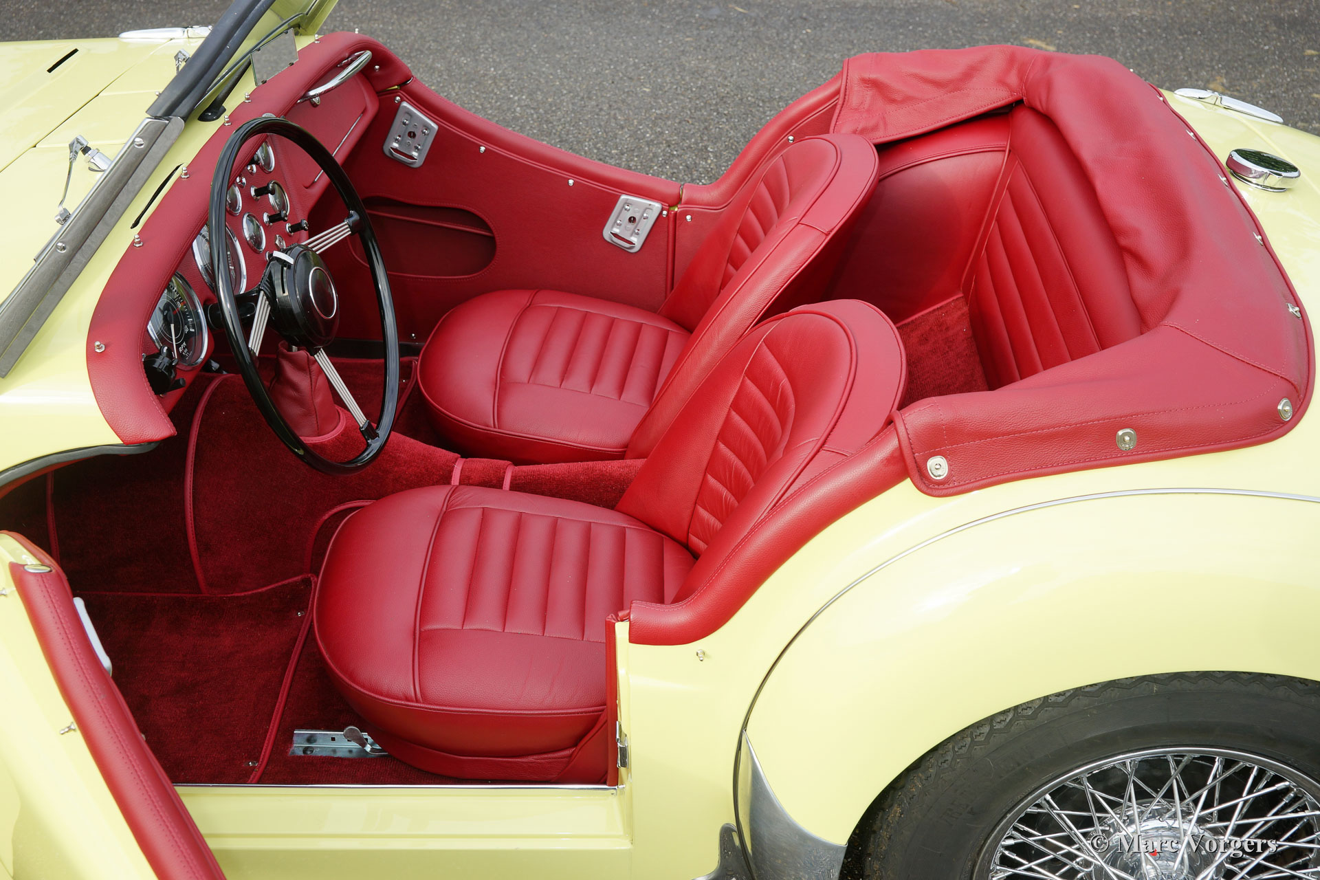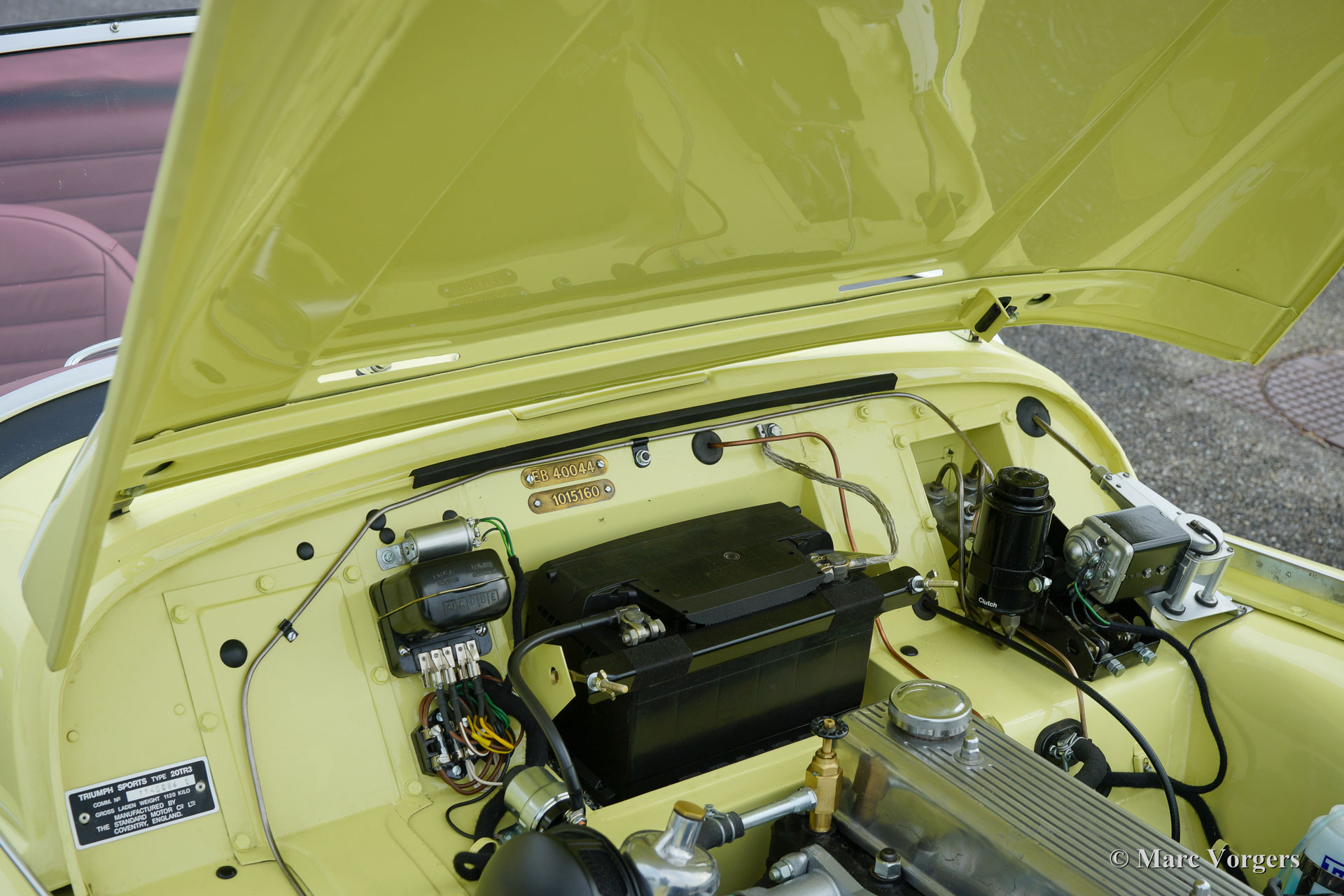 The Triumph TR 3 is a no nonsense sports car; very robust, simple and reliable, a true British sports car all over. The TR 3 was the first production car, off factory, equipped with disc brakes on the front-wheels. The engine was a Standard Vanguard based, cast-iron, long stroke, in-line four cylinder with a displacement of 1991cc. The TR 3 engine was equipped with two carburettors giving a power-output of almost 100 bhp.