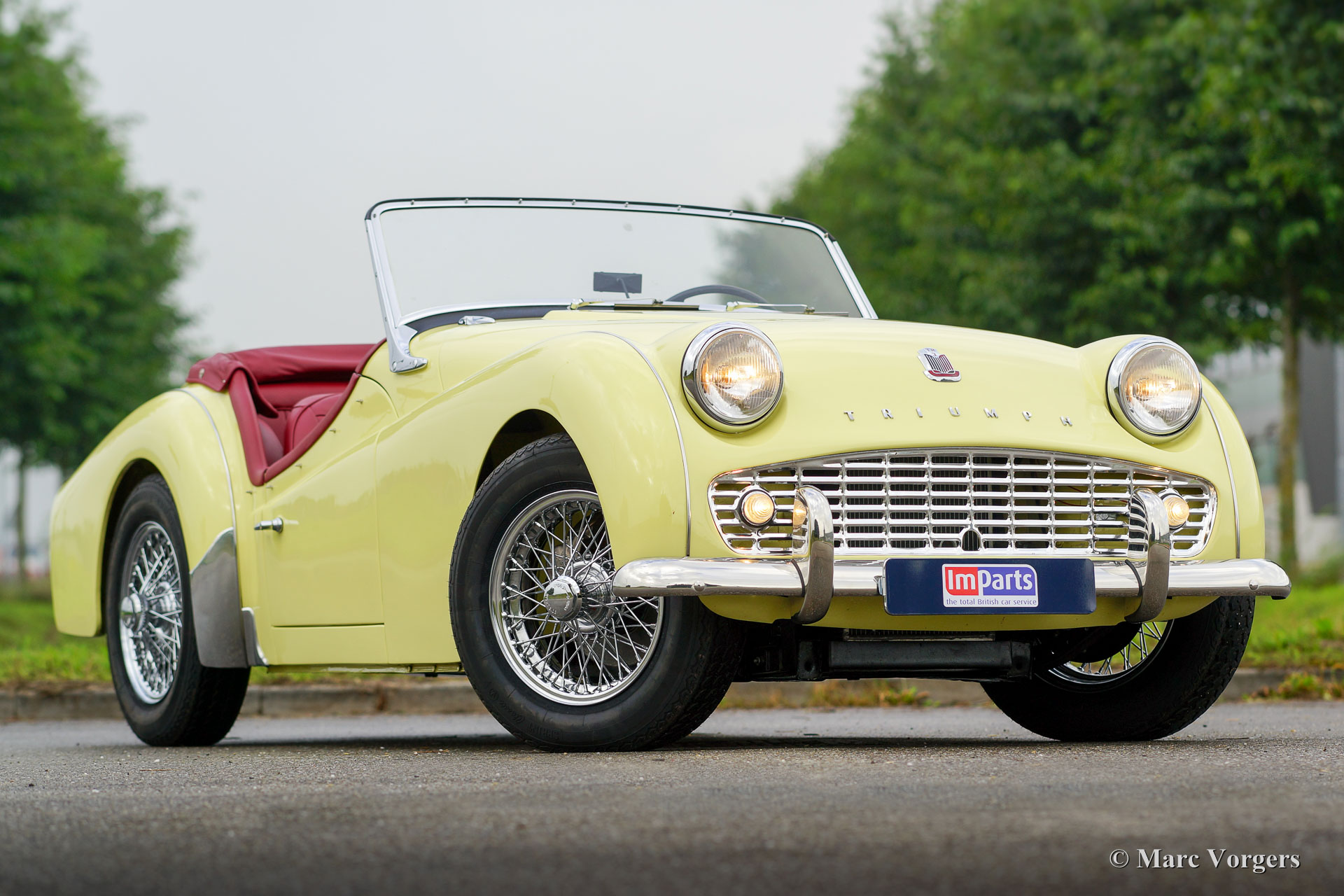 Triumph TR 3a, Jahr 1959. Farbe Primrose gelb mit einem roten Leder-Interieur und roten Teppich. Rot Mohair Verdeck, Aufsteck-Seitenfenster, Verdeck, Verdeck-Abdeckung und Persenning. Dieses herrliche Triumph TR 3a wurde gründlich und perfekt auf ursprünglichen Werksspezifikationen restauriert. Alles wurde renoviert, erneuert und überholt. Das Auto ist in einem hervorragenden concours top Zustand! Seit Abschluss der Wiederherstellung hat der Wagen etwa 2000 Kilometer gefahren. Das Auto verfügt über Chrom Speichen Räder, A-Typ Overdrive eine Edelstahl-Sportauspuffanlage und elektronischer Zündung. Eine Top-Probe, Kosten noch Mühen wurden gescheut, um Fabrik ursprünglichen Vollkommenheit zu erreichen.