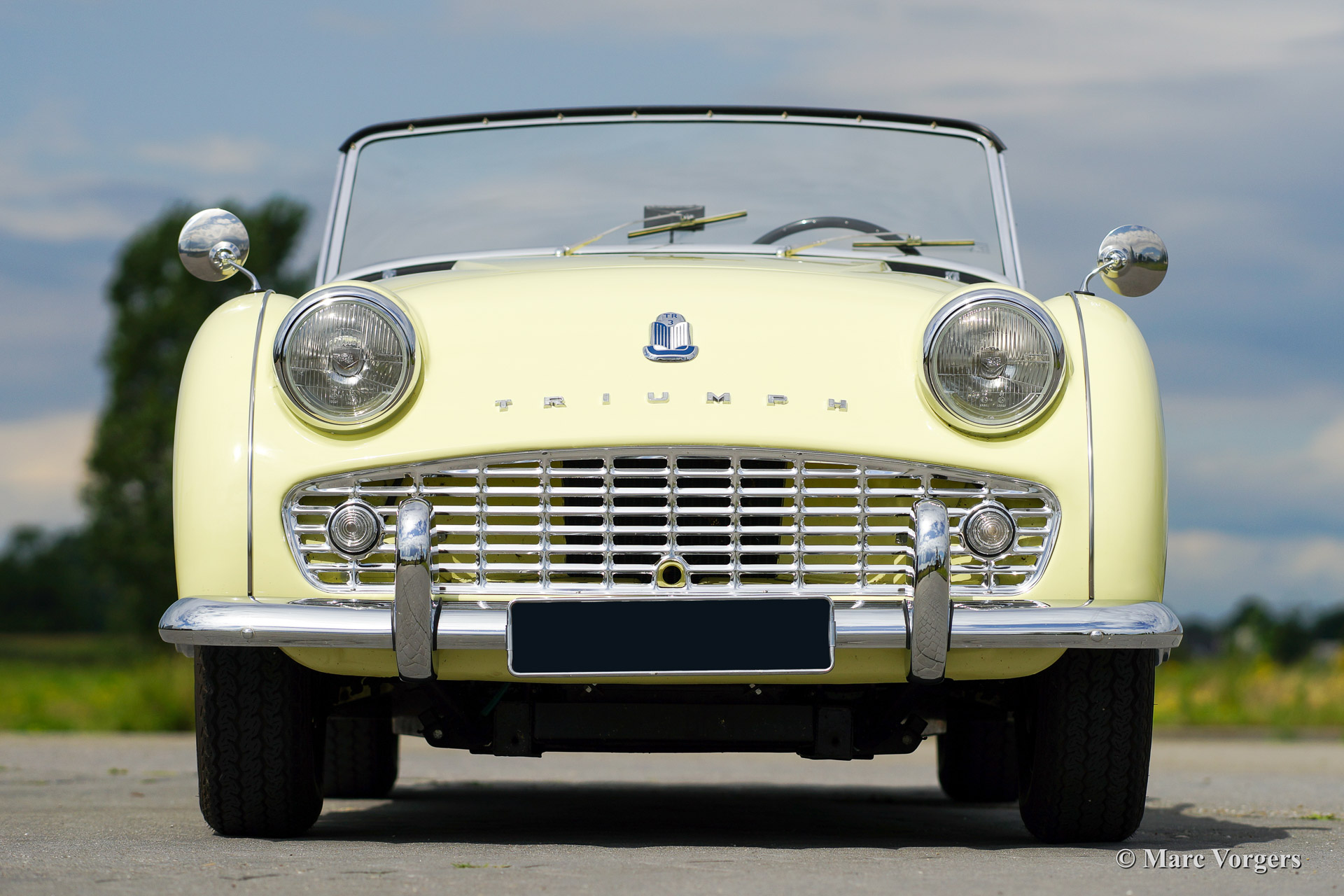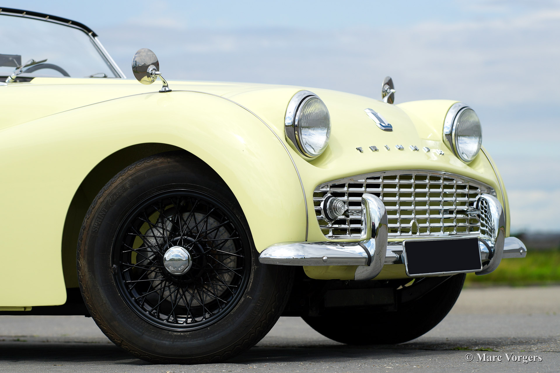 In the year 1957 the Triumph TR3a was presented. Again Triumph changed the grille (wider, covering the entire width of the car). Also the headlamps were placed a little backwards and door handles were fitted. Very short after the introduction of the TR 3a the Triumph TR 3b was introduced, the only change was the larger cylinder capacity of the engine.