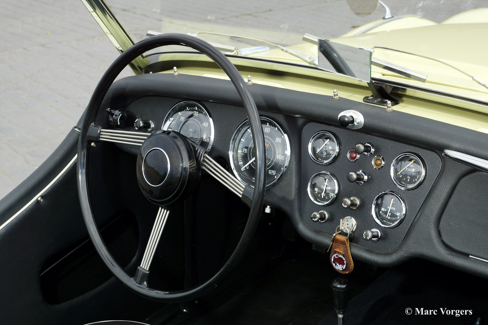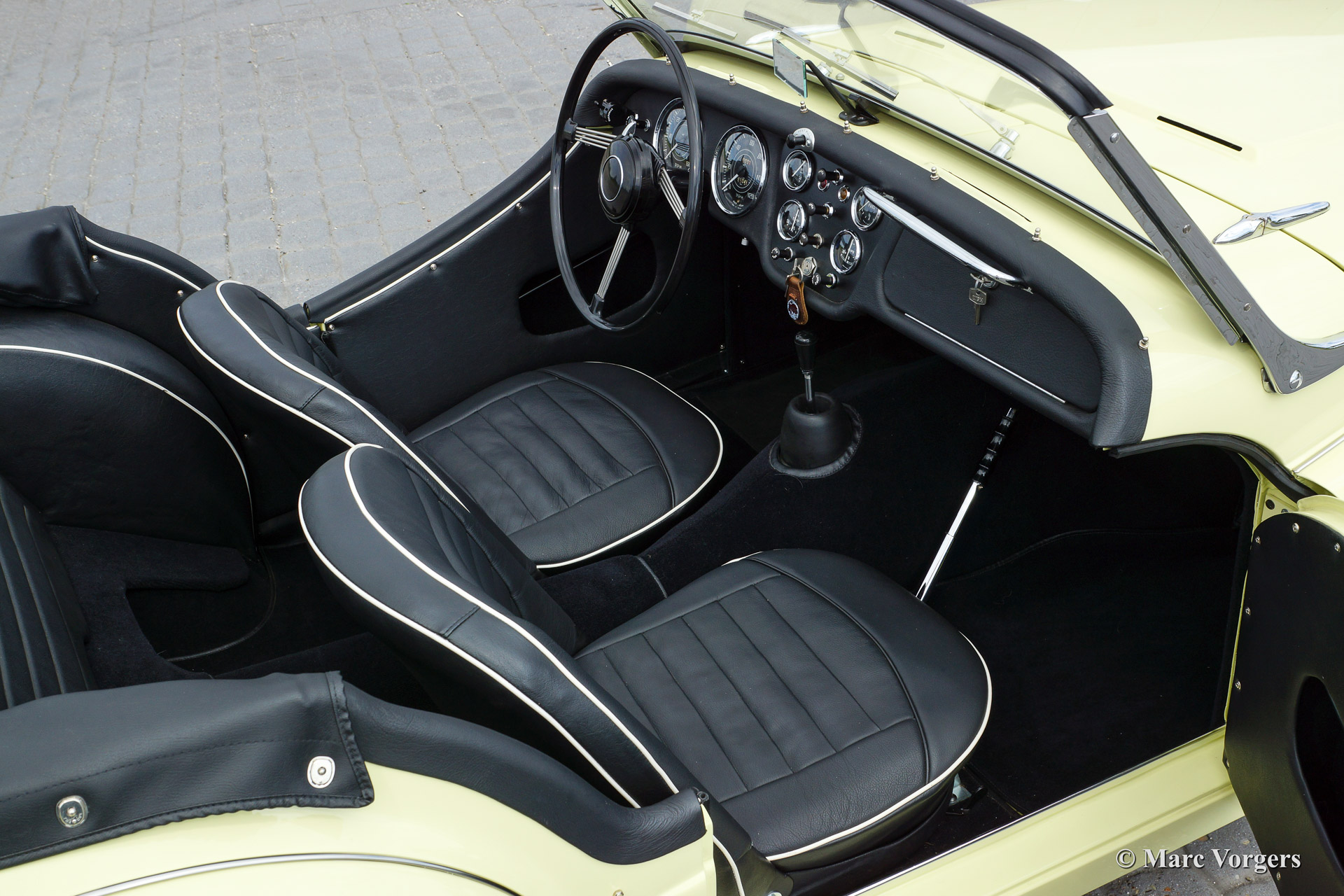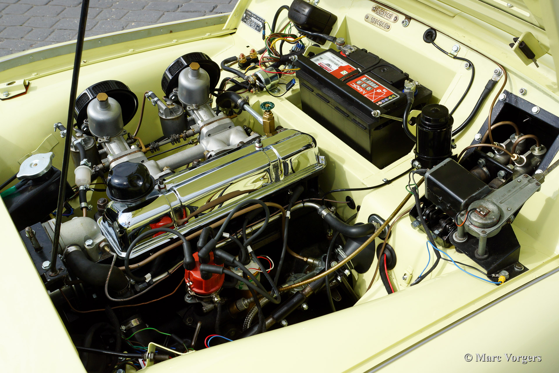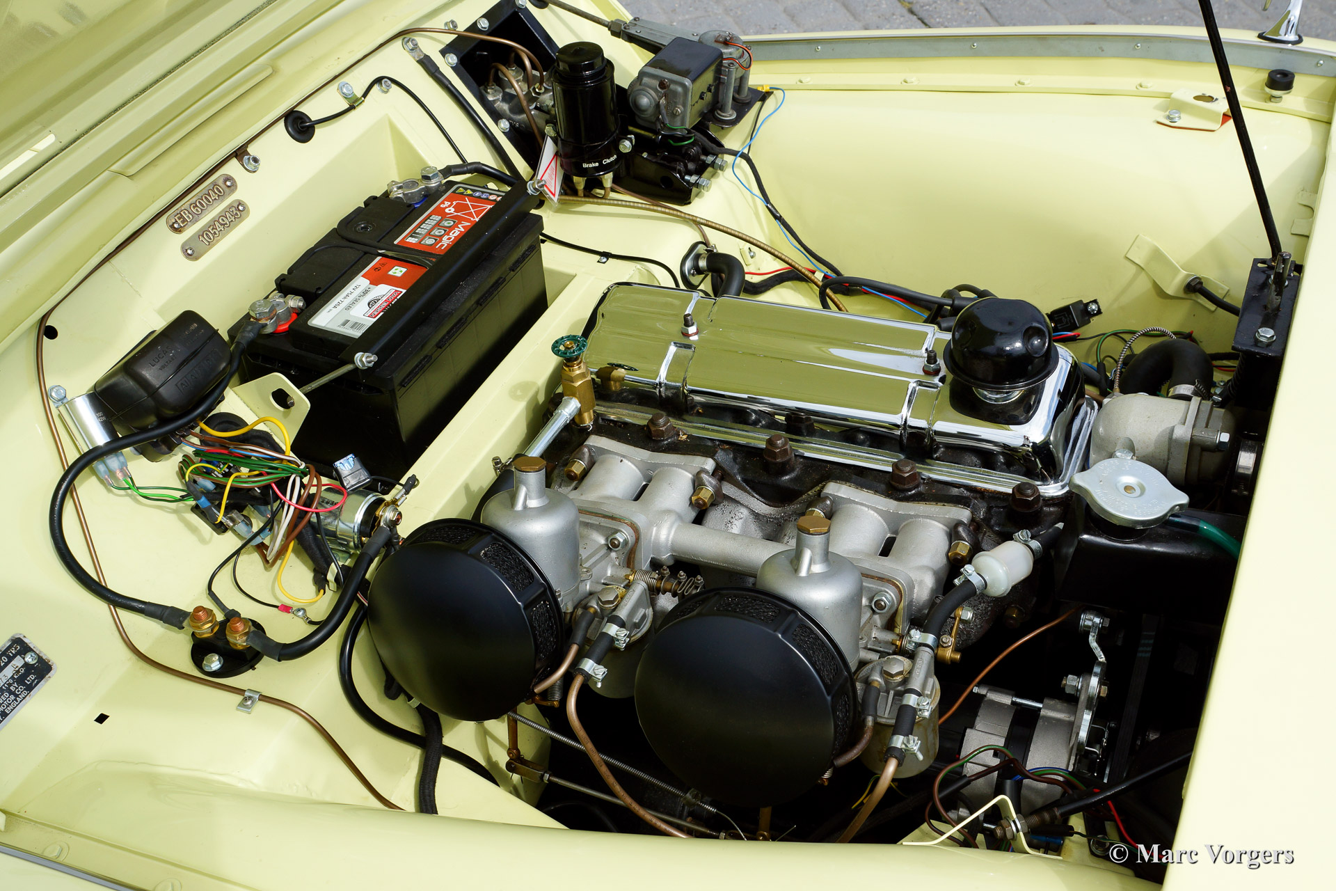 The Triumph TR 3 is a no nonsense sports car; very robust, simple and reliable, a true British sports car all over. The TR 3 was the first production car, off factory, equipped with disc brakes on the front-wheels. The engine was a Standard Vanguard based, cast-iron, long stroke, in-line four cylinder with a displacement of 1991cc. The TR 3 engine was equipped with two carburettors giving a power-output of almost 100 bhp.