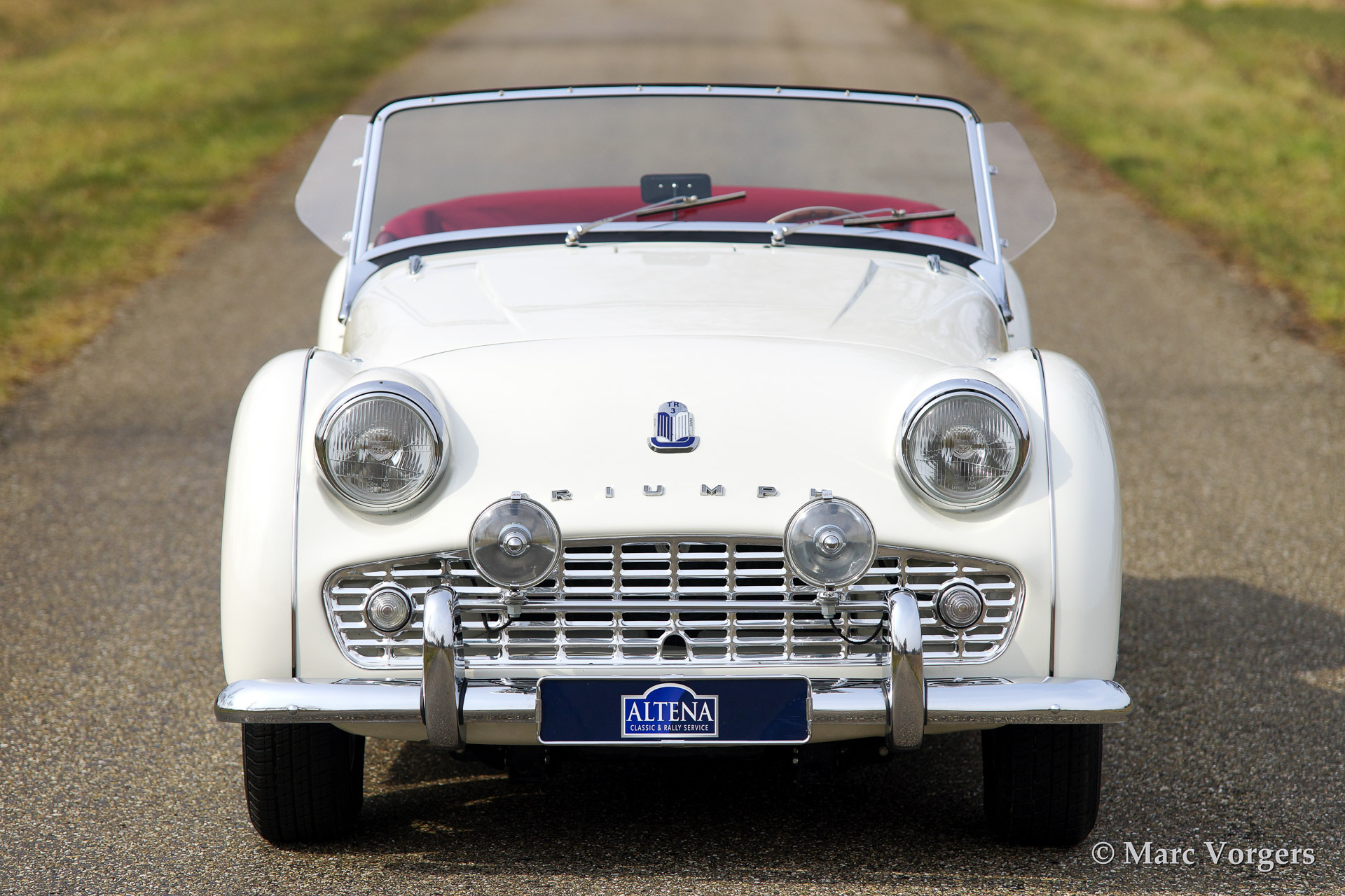 In the year 1957 the Triumph TR3a was presented. Again Triumph changed the grille (wider, covering the entire width of the car). Also the headlamps were placed a little backwards and door handles were fitted. Very short after the introduction of the TR 3a the Triumph TR 3b was introduced, the only change was the larger cylinder capacity of the engine.