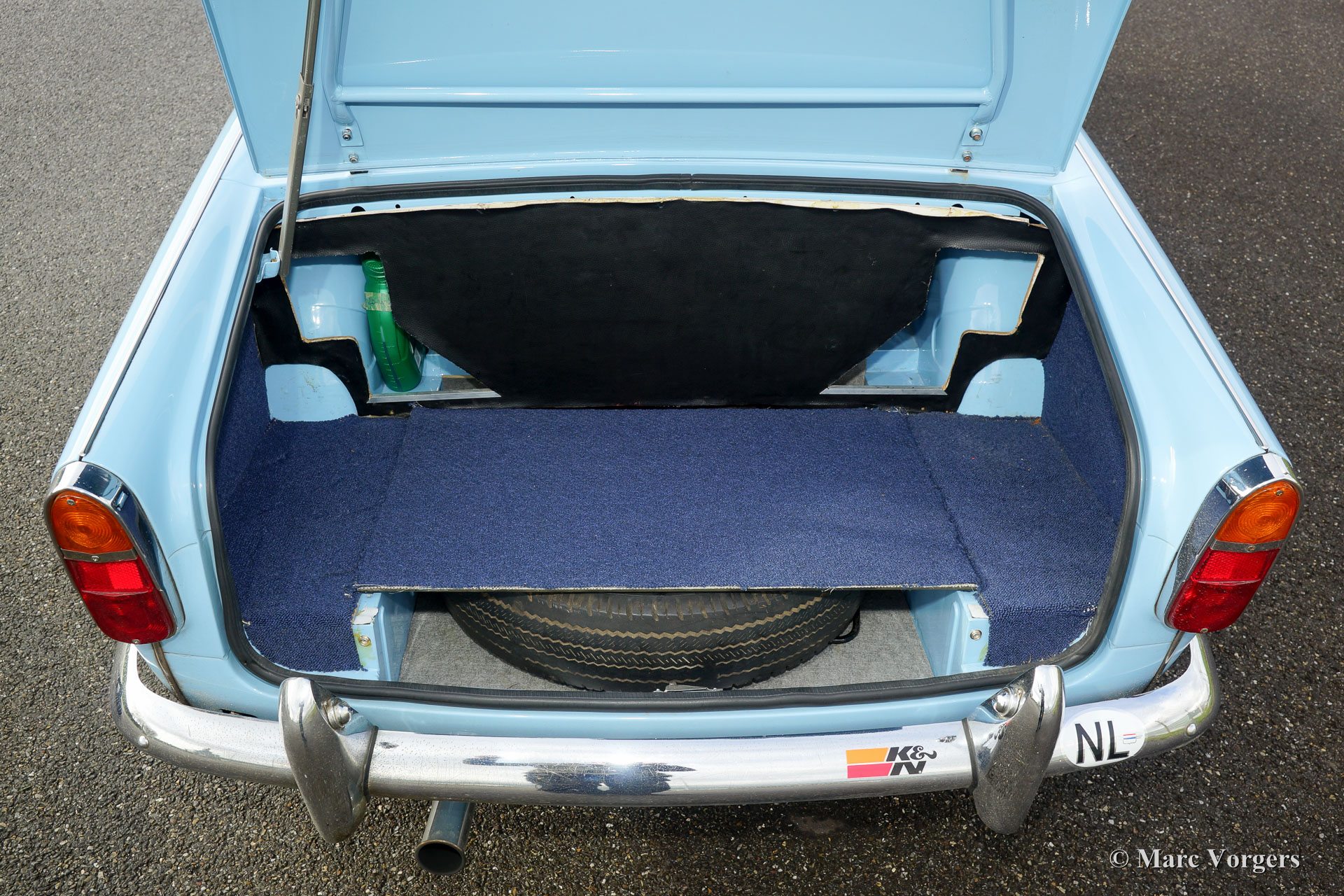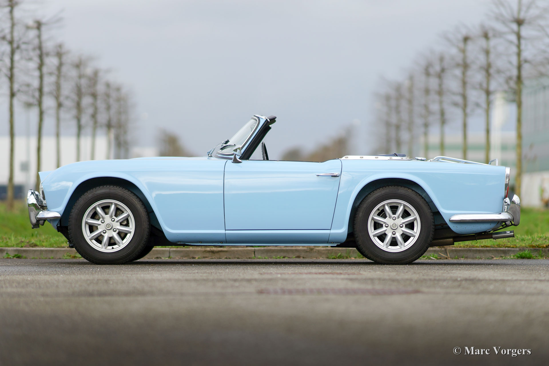 Triumph TR 4, Jahr 1964, Farbe 'Powder Blue' mit einem blauen Lederinterieur, blauer Teppich und blauen Schutzmatten. Blau Mohair Soft-Top. Dieser wunderschöne Triumph TR 4 wurde umfangreich und Körper-aus restauriert über die Jahren 2004-2006. Eine Fotoreportage der Restauration ist vorhanden. Natürlich wurde der Motor auch überholt. Seit der Restaurierung wurde das Auto 20.000 km gefahren in den Händen von der Eigner. Dieser feine TR 4 ist in einem ausgezeichneten Zustand und das Auto fährt perfekt. Das Auto ist ausgestattet mit robuste Minilite Typ Leichtmetallrädern, gute Michelin 165/15 Reifen, elektronische Zündung, zusätzliche Lucas Leuchten (Nebel und Spot), Gepäckträger, Klassisches Becker Radio, elektrischer Lüfter, Edelstahl Benzintank und eine Auspuffanlage aus Edelstahl. Ein sehr schönes Exemplar!