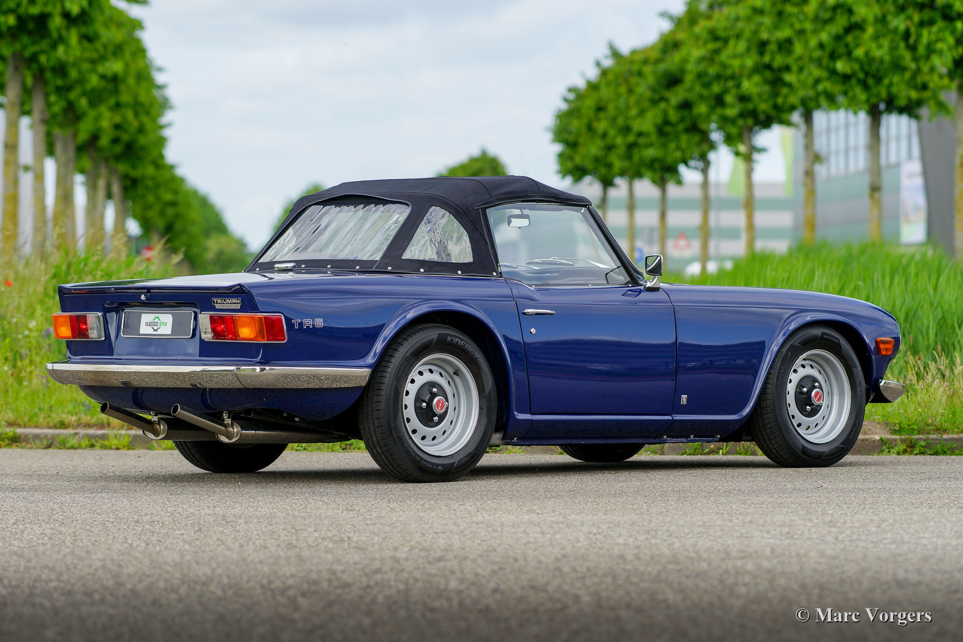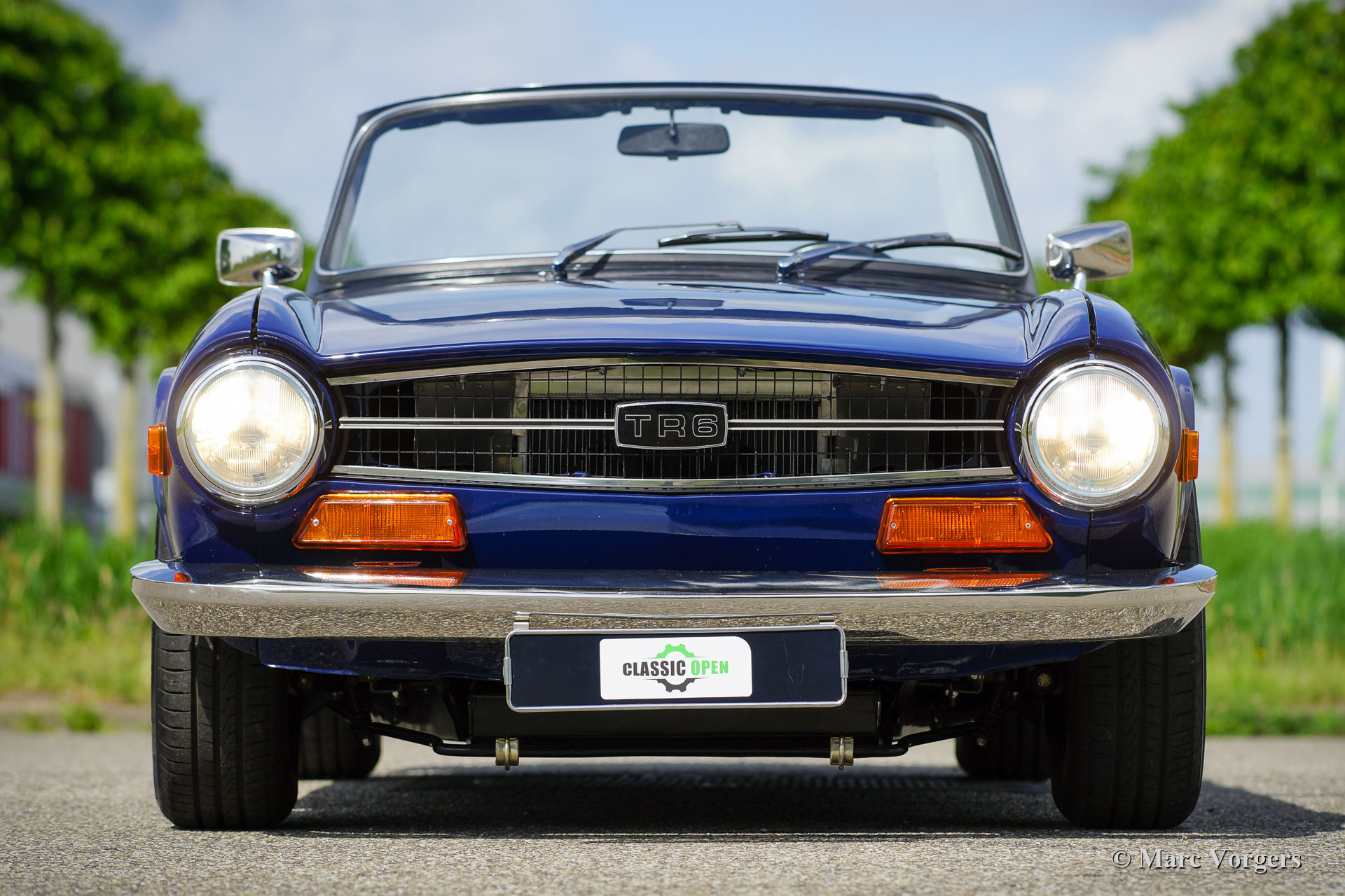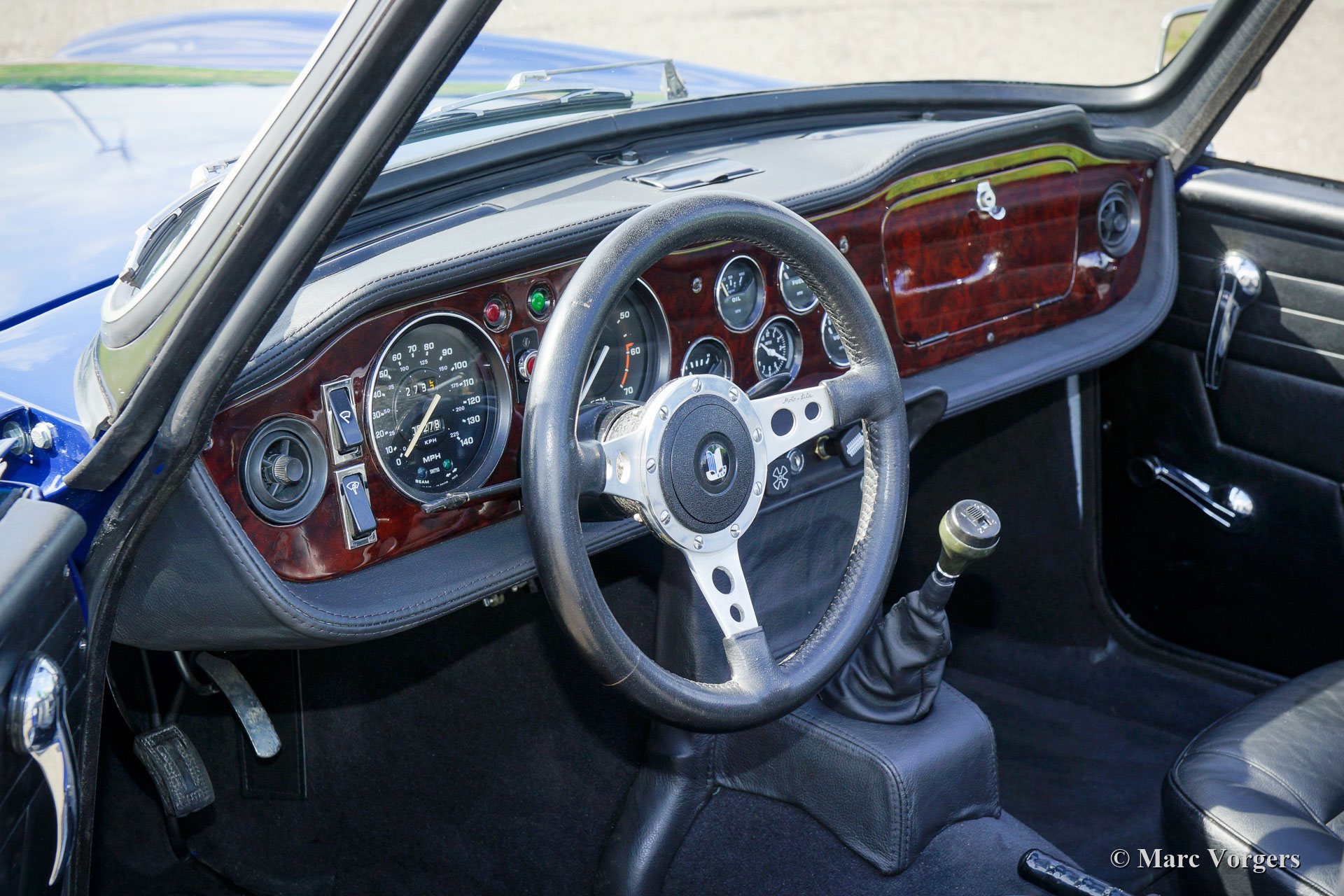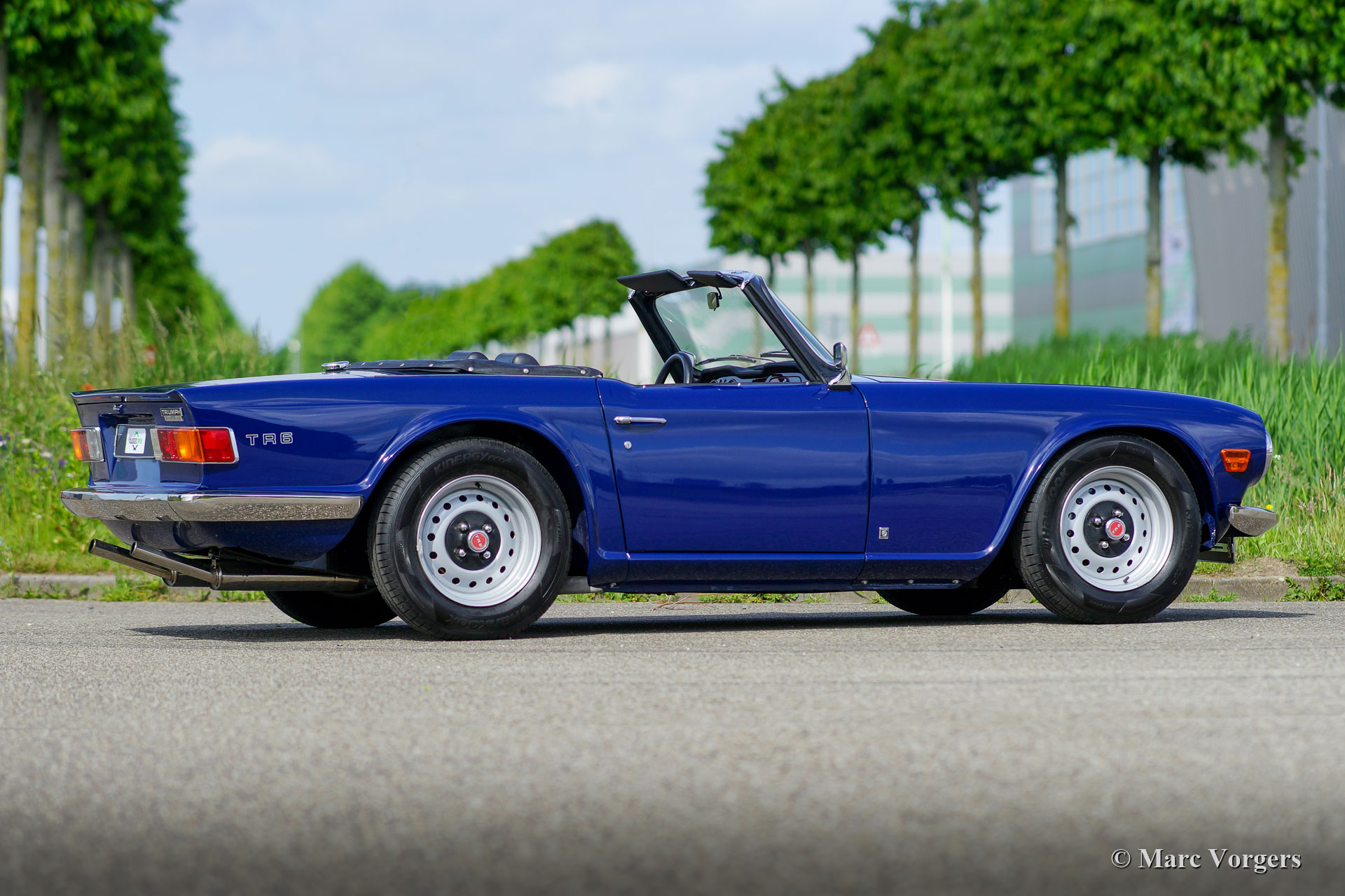 Triumph TR 6, Jahr 1973. Farbe Blau kombiniert mit einer schwarzen Lederausstattung mit anthrazitschwarzem Teppich. Schwarzes Mohair-Verdeck und ein schwarzer Vinyl-Verdeckbezug. Dieser fantastische Triumph TR 6 wurde kürzlich „body off“ restauriert und befindet sich in einem hervorragenden Top-Zustand! Ein vollständiger Fotobericht der Restaurierung ist vorhanden. Der Motor wurde für den Betrieb mit bleifreiem Benzin verbessert. Dieser feine TR 6 verfügt über Overdrive mit dem Aktivierungsschalter am Schaltknüppel. Außerdem ist das Auto mit zwei S.U. Vergaser, elektronische Zündung, ein stärkeres Bremsservo, ein Aluminiumkühler, Ölkühler mit Thermostat und ein Edelstahlauspuff versehen. Der Innenraum ist mit luxuriösen Materialien ausgestattet; Die Sitze und das Armaturenbrett sind mit schwarzem Leder bezogen. Das Armaturenbrett verfügt über eine Walnussholzplatte, eine zusätzliche Uhr und ein schönes MotoLita-Lenkrad mit Lederkranz. Dieser TR 6 ist außerdem mit zwei an der Tür montierten Edelstahl-Rückspiegeln, neuen Stoßfängern und robust-sportliche Stahlrädern mit schwarzen Radkappen ausgestattet. Dieser TR 6 ist in einem besseren Zustand als neu, ein fantastisches Fahrerauto für den Liebhaber von klassischer britischer Sportwagen!