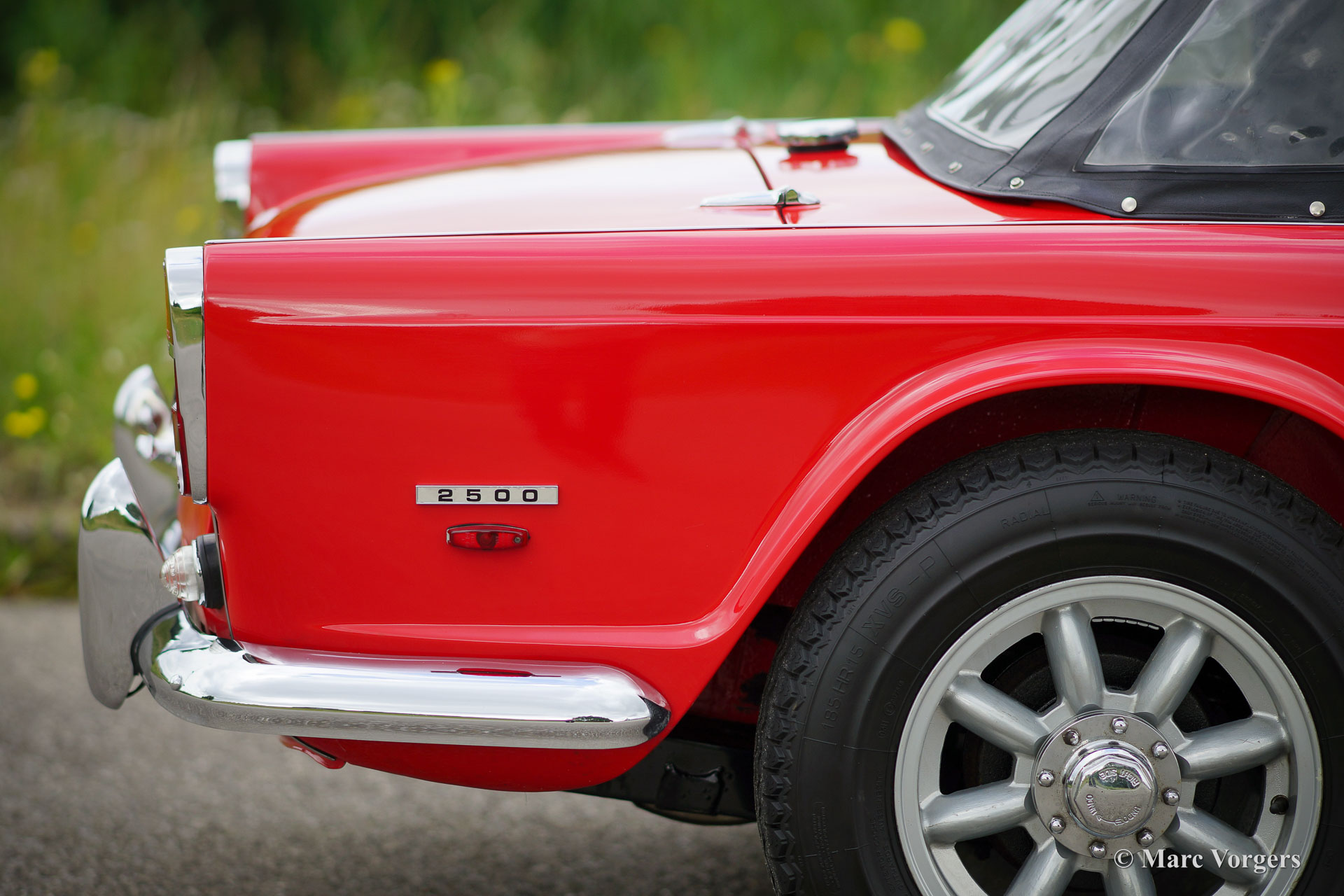 The 2498 cc. straight six with P.I. (Petrol Injection) system had a power output of 150 SAE hp. The complex P.I. system did not make it to the US market because is was delicate to service and adjust. The TR 5 for the US market was fitted with two carburettors and was named Triumph TR 250.