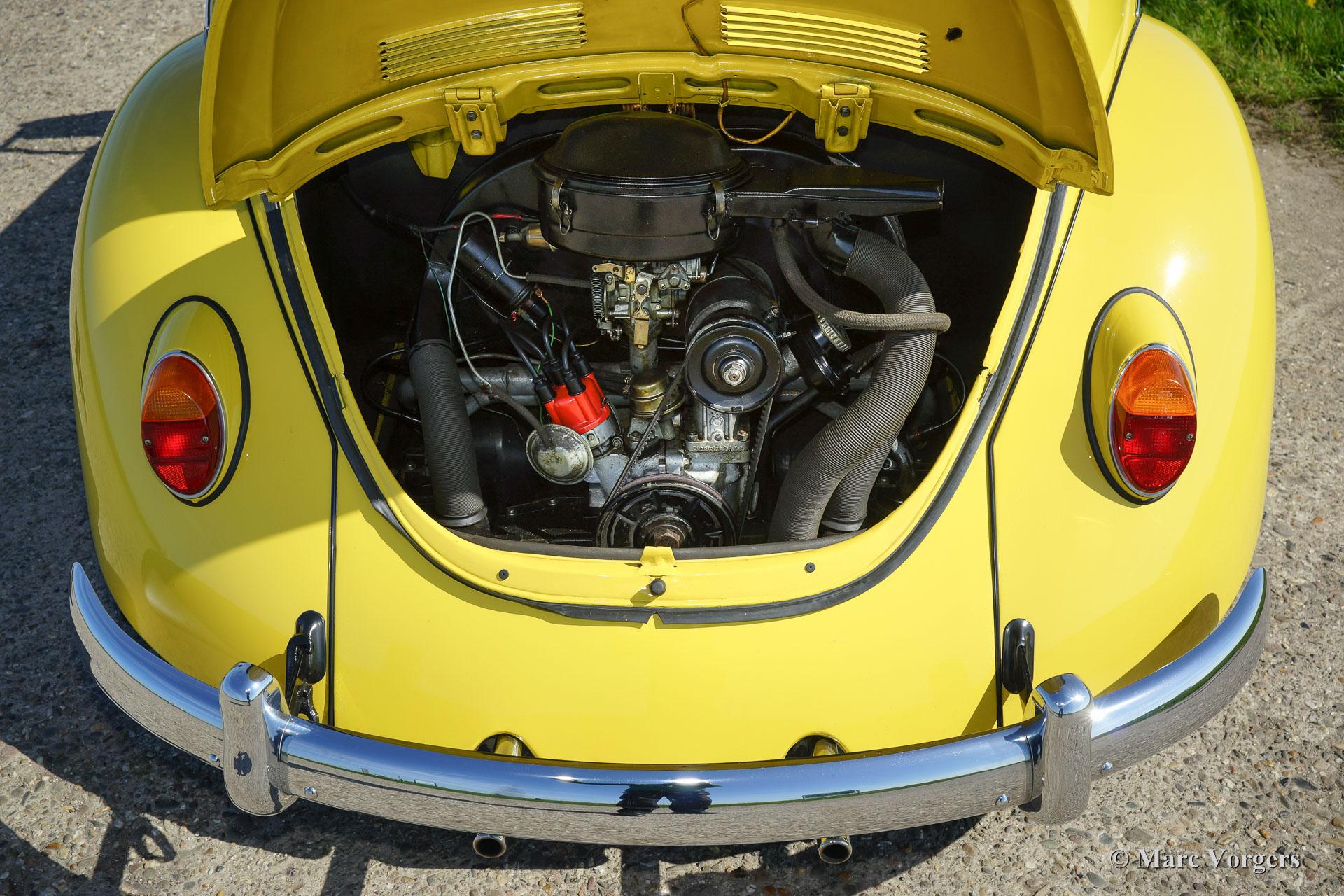 After world war two the production started again in Wolfsburg Germany and soon the Volkswagen was sold world wide. The people nicknamed the car "Beetle" because of it's looks. The car evolved over the years, mechanically it was improved in little steps and the engines grew from 1131 cc. up to 1600 cc. in the final European production run.