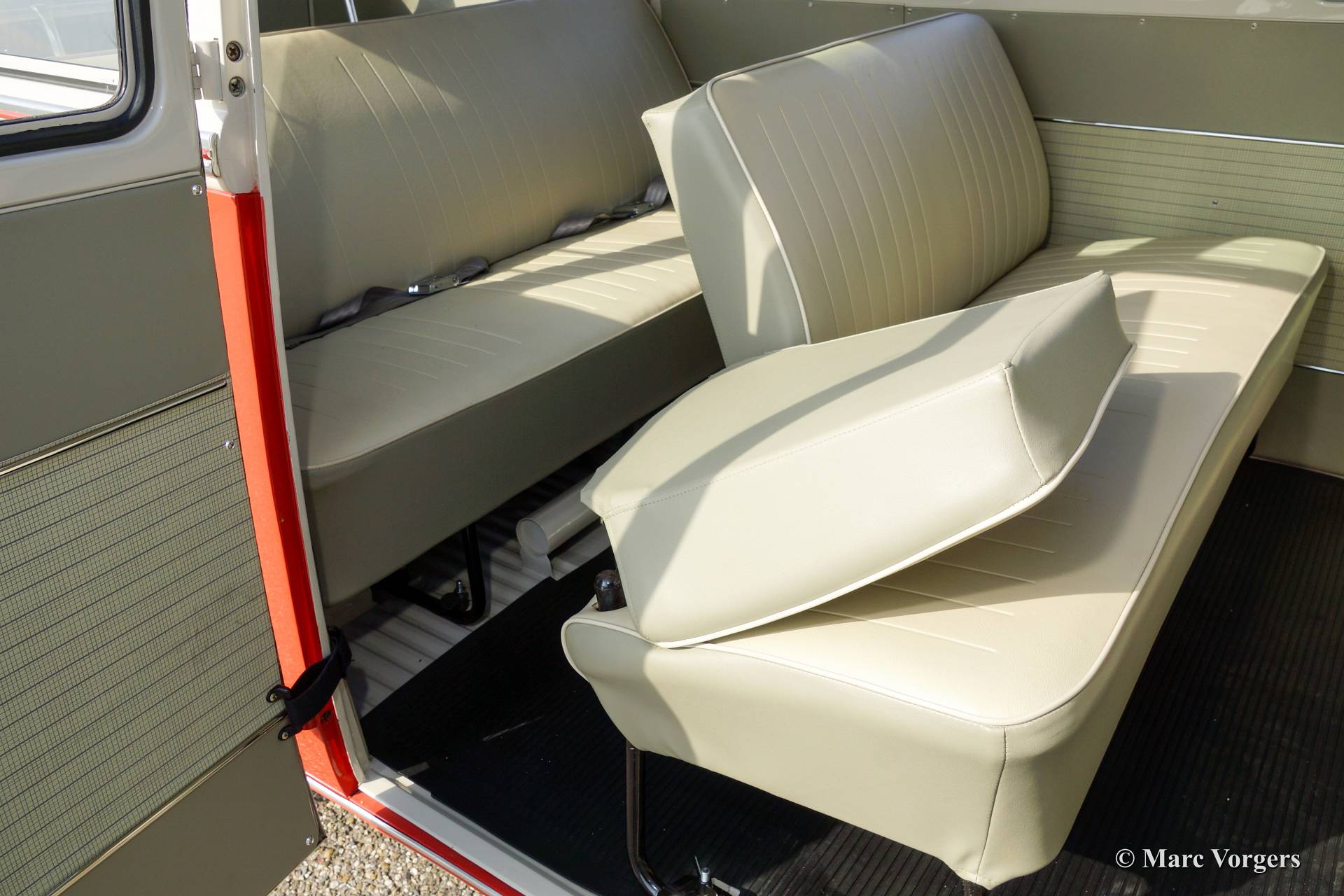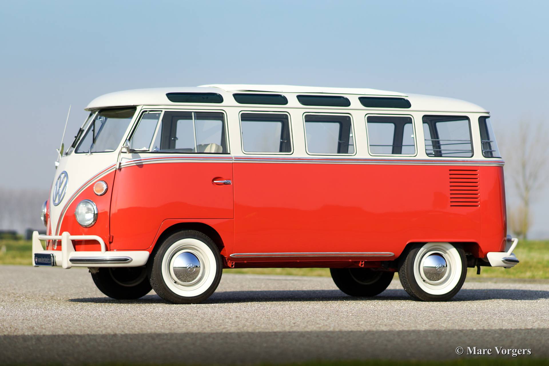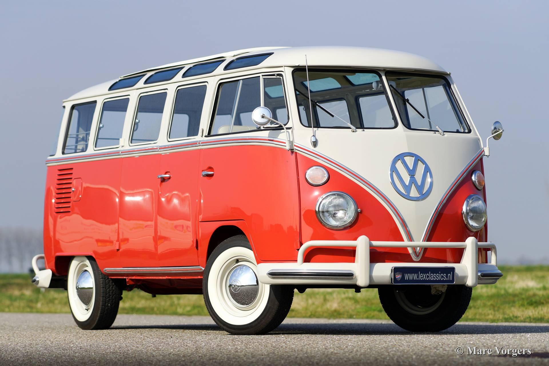 Volkswagen T1 Samba Bus, Jahr 1963. Fahrgestellnummer 1082XXX. Farbe Siegellack Rot mit Perl Weißem Dach und ein Basaltgrau farbiges Vinyl Interieur. Dieser wunderschöner VW Samba Bus ist ein gesuchtes 23 Fenster T1 Samba 'Deluxe' Modell. Die "Deluxe" bietet einen sehr großen Schiebe- / Faltdach aus Stoff und Vinyl! Der VW Samba Bus wurde im Jahr 2008 aus den USA in die Niederlande eingeführt. Anschließend wurde eine umfassende Restaurierung begonnen, in dem Kosten noch Mühen gespart wurden, um Perfektion zu erreichen. Die Restaurierung war im Jahr 2013 fertig. Das Automobil hat nur 114 Kilometer gefahren seit Beendung der Restauration. Diese 23 Fenster Samba Bus ist in einem hervorragenden Top-Zustand, concours!