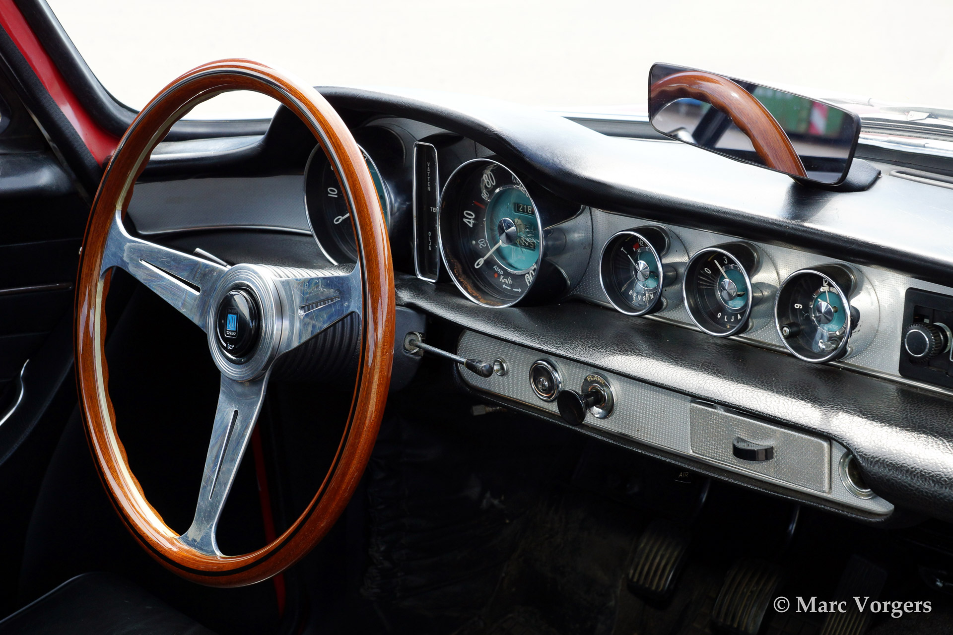 Volvo 1800 S, year 1966. Colour red with a black leather interior and anthracite/black carpet. This 1800 S features Minilite style alloy wheels and overdrive.
