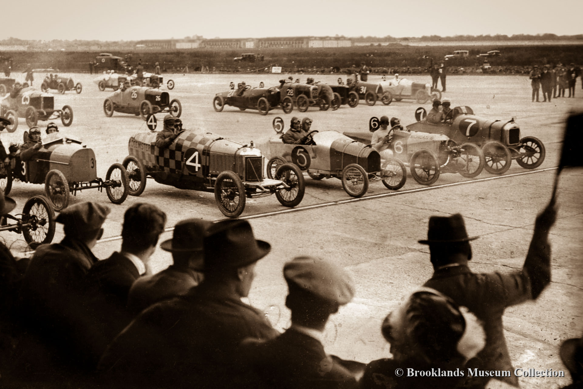 30 The start of the 1921 JCC 200 miles race. The race was won by H.O.D. 'Henry' Segrave in a Talbot-Darracq
