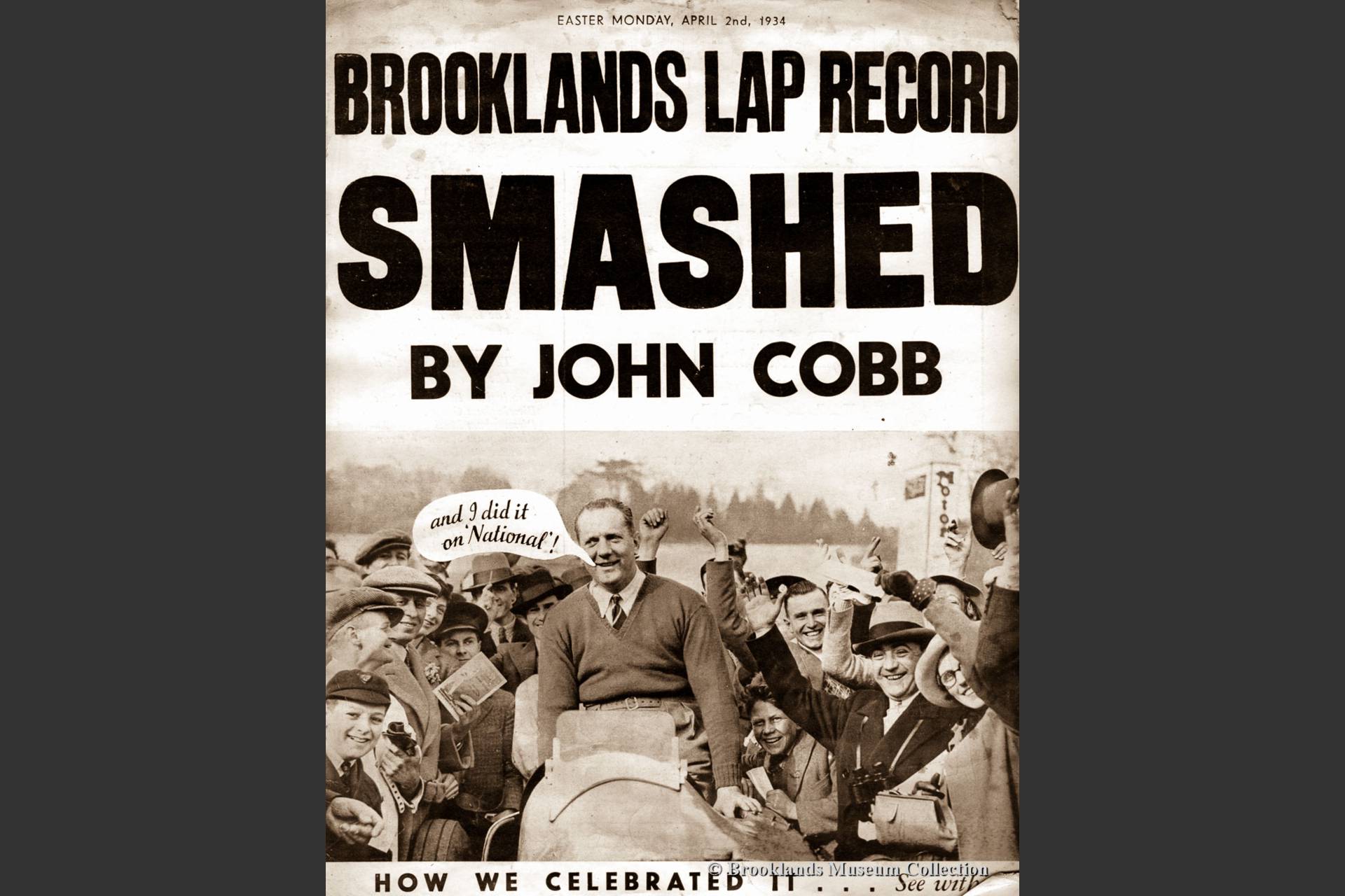 72 John Cobb broke the Brooklands lap record twice, in 1934 and in 1935. The lap record of 143,4 mph (229,44 km/h.) still stood as the circuit closed in 1939. John Cobb and the Napier Railton are therefore the perpetual lap speed holders of the Brooklands track