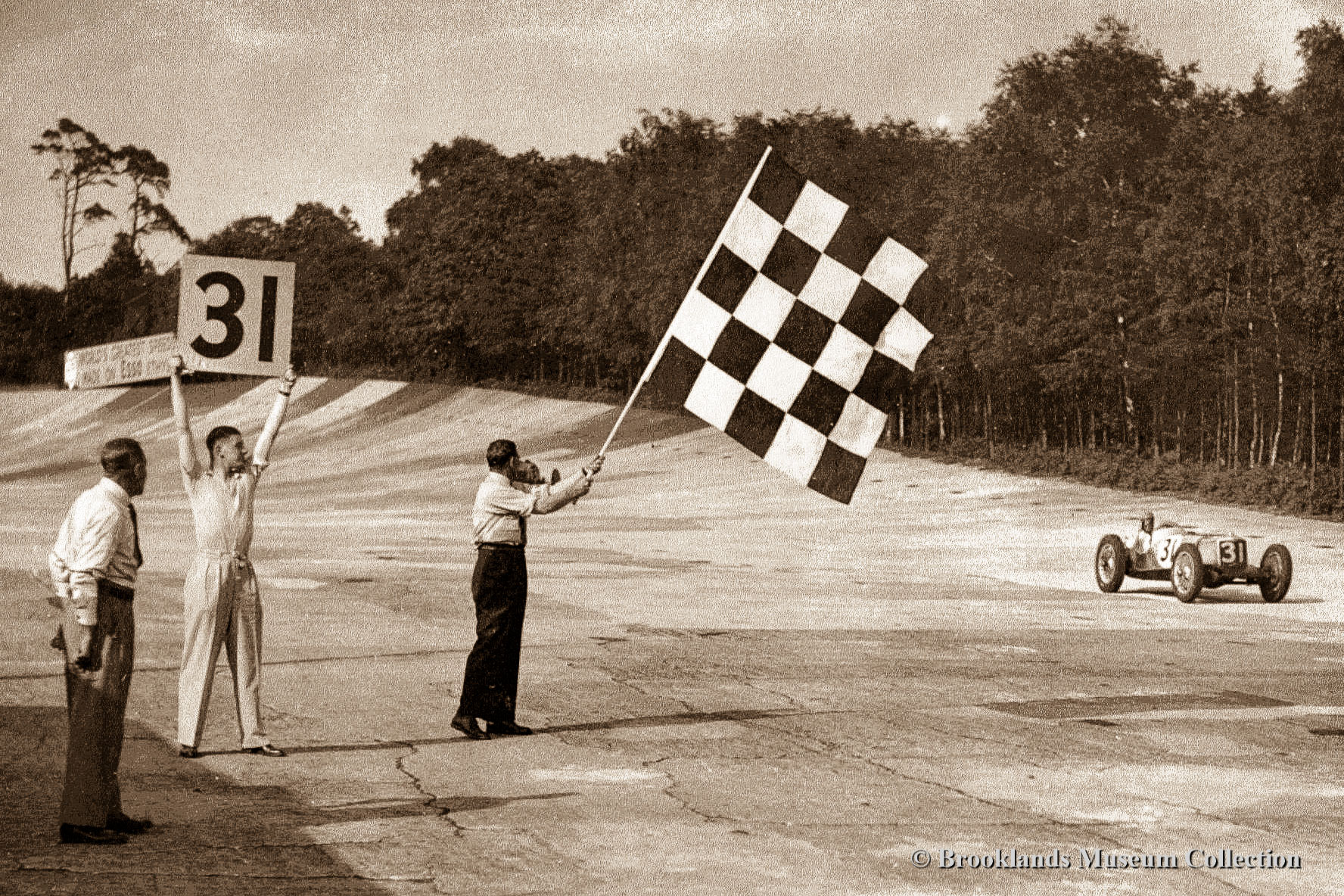 74 Malcolm Campbell is waving the starting flag in the 1937 500 KM race