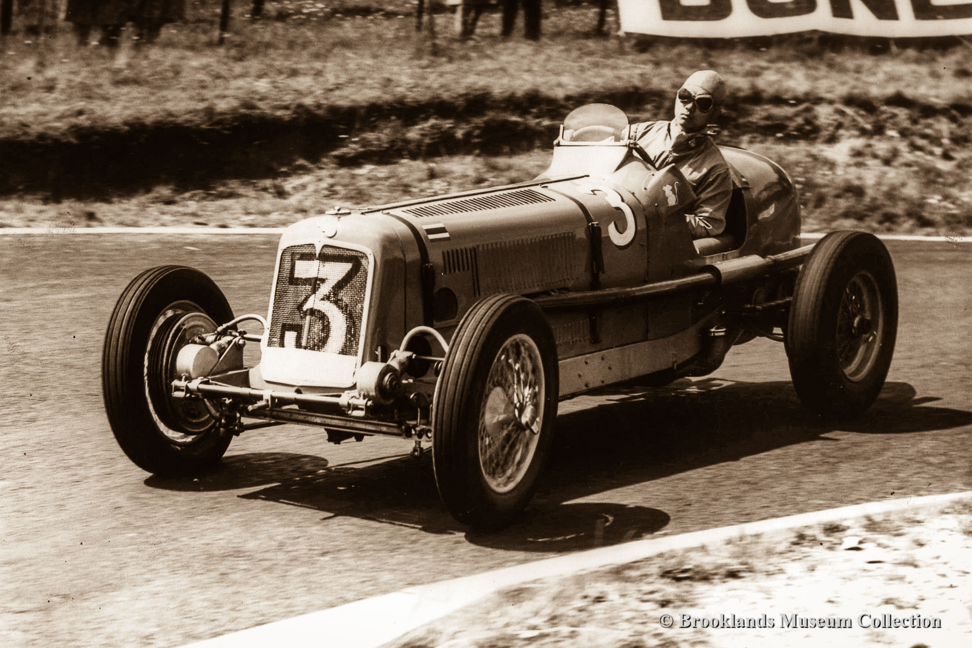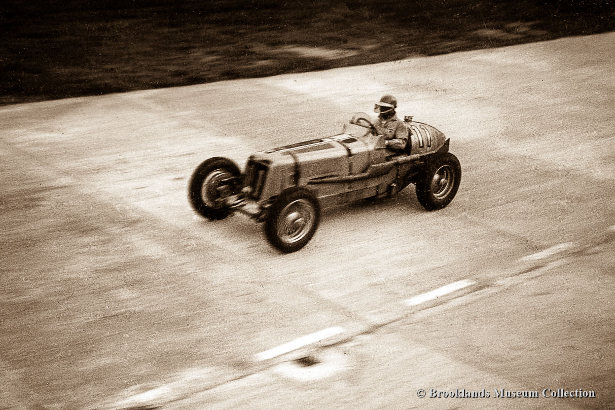 51 Tim Birkin flying his characteristic polka dot scarf in his Bentley Blower special at Brooklands 1931