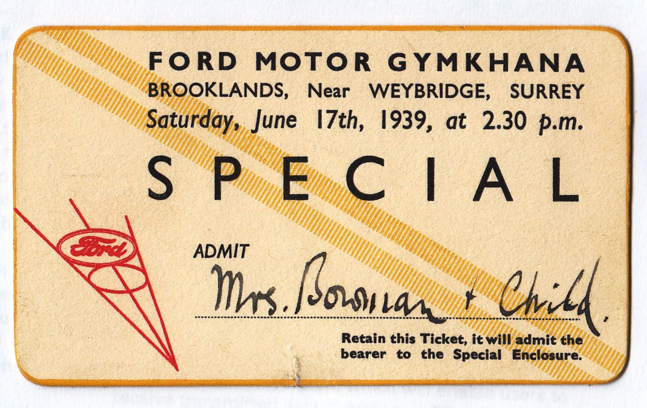 86 Entry ticket for the Ford Gymkhana at Broolands June 1939. This was the best visited event in the history of Brooklands!
