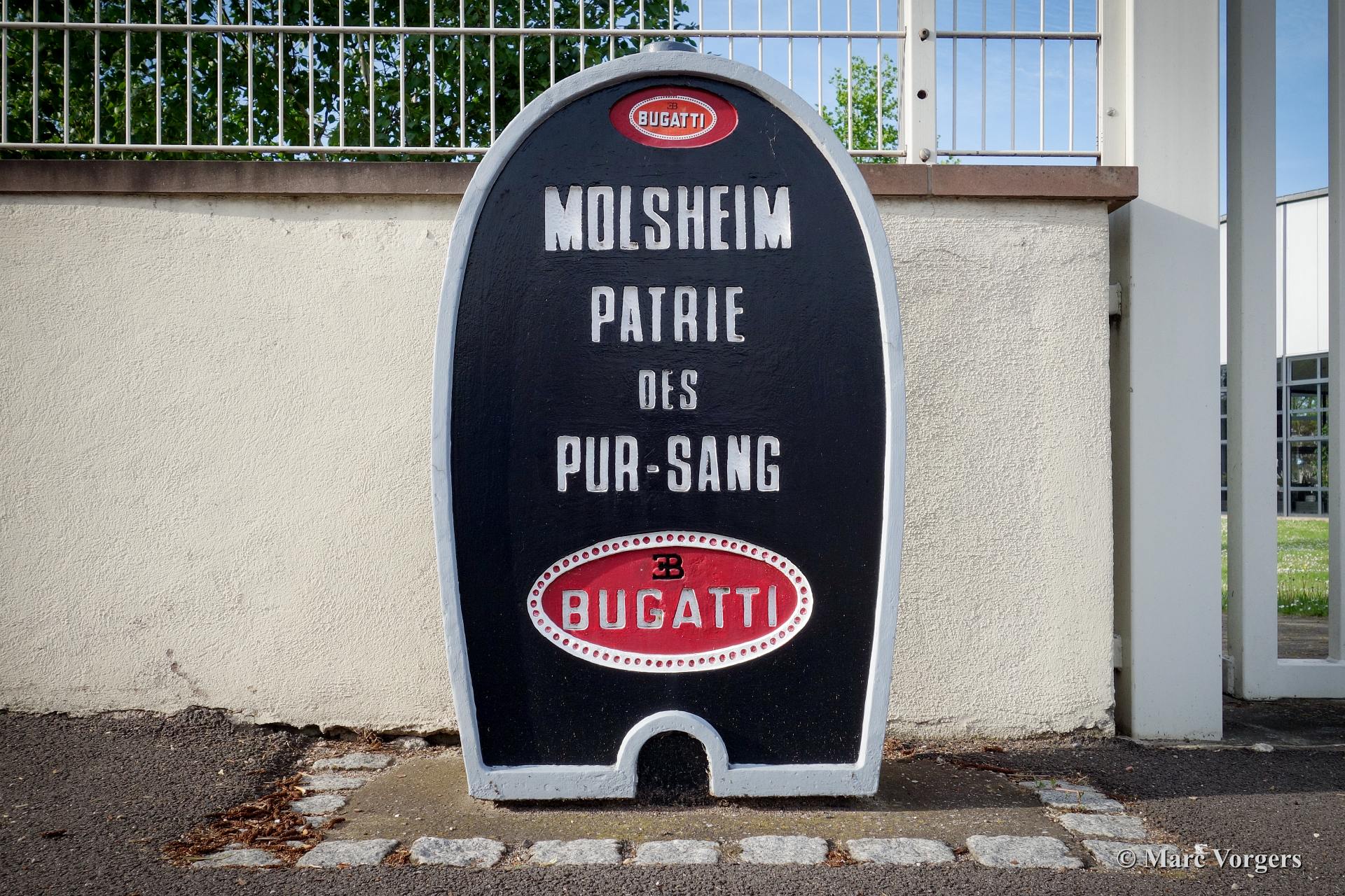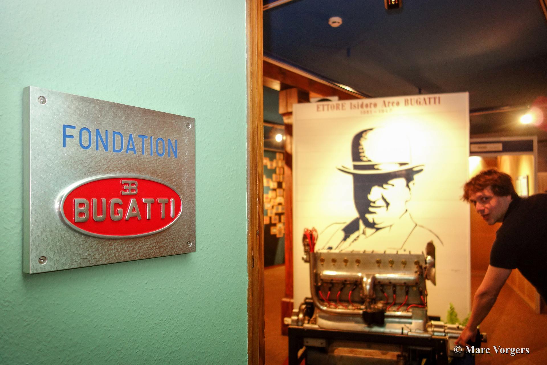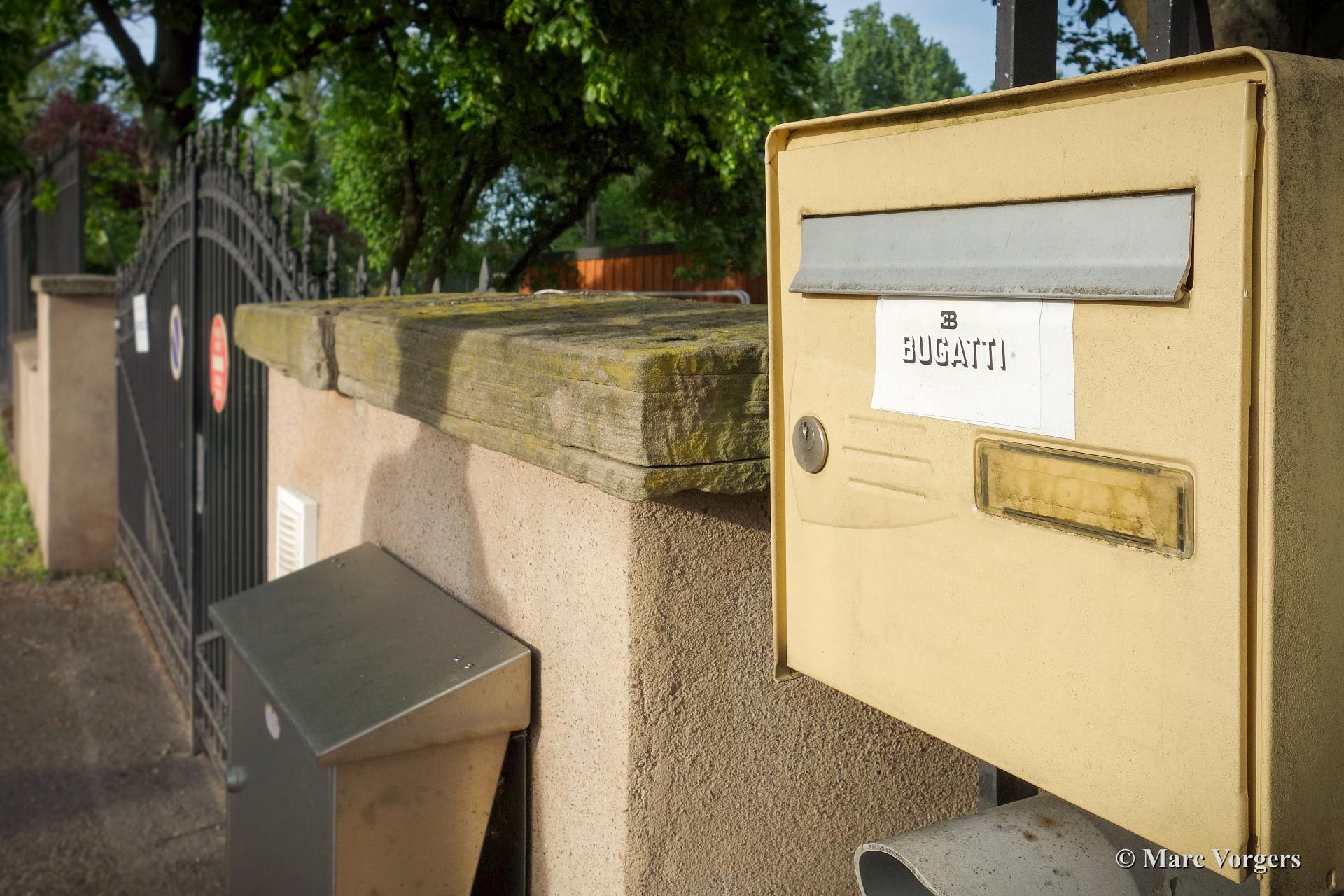 On the first day, Thursday 7 May, our destination was the Alsatian town of Molsheim, about 600 kilometres from our starting point in the Netherlands. Here we embarked on the discovery tour along the ‘Bugatti Trail’. After parking the Rover in a sun showered Molsheim at noon we shortly after stood face to face with Ettore Bugatti’s life size bronze statue and a Type 35 Bugatti statue ‘parked’ in an oval pond. A short walk thru the beautiful historic centre of Molsheim brought us to the Bugatti Foundation, in the Musee Chartreuse, where a small but highly interesting Bugatti museum is located and which has been set up by the ‘Enthusiastes Bugatti’. In the afternoon we continued the trail to the ‘Hostellerie du Pur Sang’ which was used by Bugatti as a small private guesthouse for his clients. Today the Hostellerie is in use as the ‘club house’ of the ‘Enthousiastes Bugatti Alsace’. Next door we found our hotel for the night, appropriately named: ‘Hotel Le Bugatti’. From there the trail continued in the early evening along a Bugatti ‘Autorail’ bogie to the factory site (l’usine). The factory is now in use by the firm of Safran ‘Messier-Bugatti-Dowty’ who produce landing gear for aircrafts. The more modern front part of the factory was used for the production of the Bugatti ‘Autorail’ railcars which were powered by respectively two or four Bugatti Royale engines giving a combined power output of 400 and 800 bhp and a top speed of 196 km/h. (122 mph). Just around the corner on Rue des Peupliers we found the ‘Villa’, Ettore’s house for many years. Next to the ‘Villa’ the oldest part of the Bugatti factory can be seen: the ‘Hardtmuhle’. Here one gets a good impression of the old early 20th century workshops, foundry and stables. Returning to the main road, rue Saint-Jean, we walk along Chateau Saint-Jean. This magnificent chateau was purchased by Bugatti in the late 1920ies to add more grandeur to his marque but he never lived in it. Today the chateau is in use by Bugatti SAS to receive buyers of the modern Bugatti Veyron cars in great style.