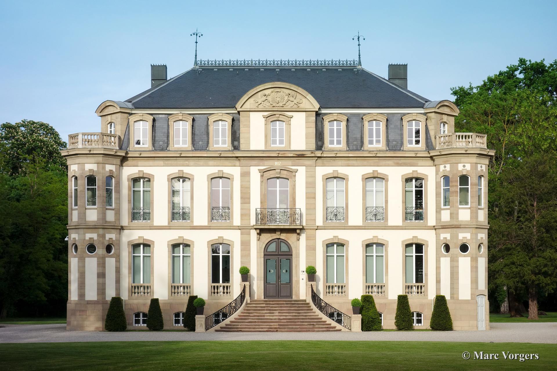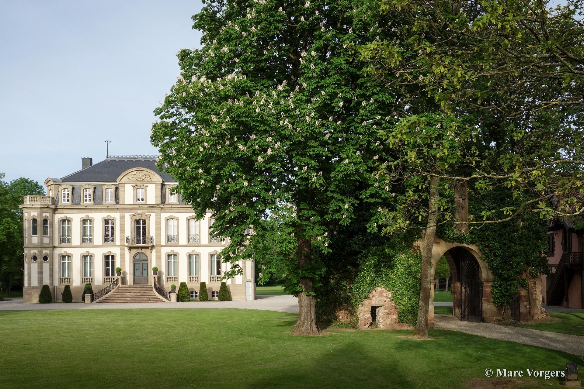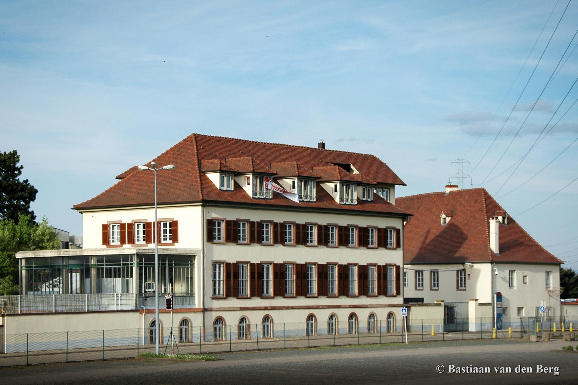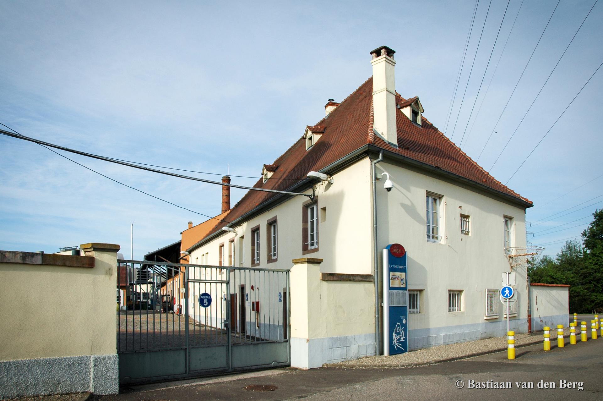 On the first day, Thursday 7 May, our destination was the Alsatian town of Molsheim, about 600 kilometres from our starting point in the Netherlands. Here we embarked on the discovery tour along the ‘Bugatti Trail’. After parking the Rover in a sun showered Molsheim at noon we shortly after stood face to face with Ettore Bugatti’s life size bronze statue and a Type 35 Bugatti statue ‘parked’ in an oval pond. A short walk thru the beautiful historic centre of Molsheim brought us to the Bugatti Foundation, in the Musee Chartreuse, where a small but highly interesting Bugatti museum is located and which has been set up by the ‘Enthusiastes Bugatti’. In the afternoon we continued the trail to the ‘Hostellerie du Pur Sang’ which was used by Bugatti as a small private guesthouse for his clients. Today the Hostellerie is in use as the ‘club house’ of the ‘Enthousiastes Bugatti Alsace’. Next door we found our hotel for the night, appropriately named: ‘Hotel Le Bugatti’. From there the trail continued in the early evening along a Bugatti ‘Autorail’ bogie to the factory site (l’usine). The factory is now in use by the firm of Safran ‘Messier-Bugatti-Dowty’ who produce landing gear for aircrafts. The more modern front part of the factory was used for the production of the Bugatti ‘Autorail’ railcars which were powered by respectively two or four Bugatti Royale engines giving a combined power output of 400 and 800 bhp and a top speed of 196 km/h. (122 mph). Just around the corner on Rue des Peupliers we found the ‘Villa’, Ettore’s house for many years. Next to the ‘Villa’ the oldest part of the Bugatti factory can be seen: the ‘Hardtmuhle’. Here one gets a good impression of the old early 20th century workshops, foundry and stables. Returning to the main road, rue Saint-Jean, we walk along Chateau Saint-Jean. This magnificent chateau was purchased by Bugatti in the late 1920ies to add more grandeur to his marque but he never lived in it. Today the chateau is in use by Bugatti SAS to receive buyers of the modern Bugatti Veyron cars in great style.
