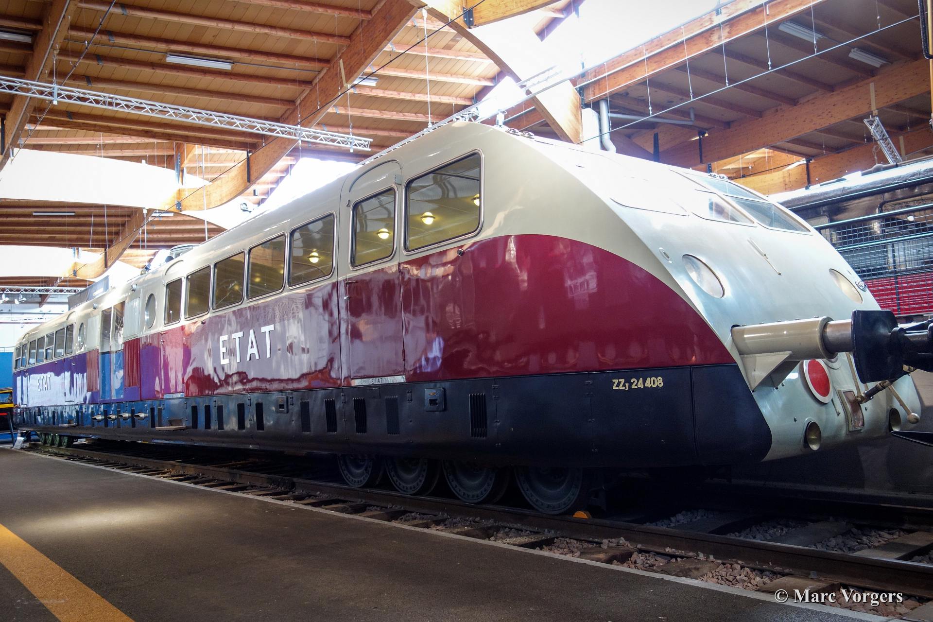 The morning of the second day of our discovery trail led us to the Jean Bugatti Memorial in Düppigheim. The memorial is located along the D392 just outside Düppigheim where Jean got killed in August 1939 testing a Bugatti T57 Le Mans car. Driving back over the long and straight D392 we enter Dorlisheim. In the cemetery along the Grand Rue we paid our respects to the Bugatti family resting in their family tombs. Then we piloted the Rover over 100 kilometres to Mulhouse to visit the ‘Cite de l’Automobile’ (Schlumpf collection) and the ‘Cite du Train’ (Musee Francais du chemin de fer.) In the Schlumpf collection we were guided around by Mr. Pat Garnier the former director of the museum from 1982 until 1999. Mr. Garnier gave us a memorable guided tour thru the Bugatti collection. During these four hours we were drenched in the delightful history of Bugatti and in the history of the Schlumpf collection. We questioned him about everything and he shared great stories with us. Then with a few hours left on this Friday we visited the Cite du Train in Mulhouse where the Bugatti ‘Autorail’ railcar can be seen in full glory. Cite du Train is a very impressive, vast, and highly recommended museum which will be of great interest to historic motoring enthusiasts.