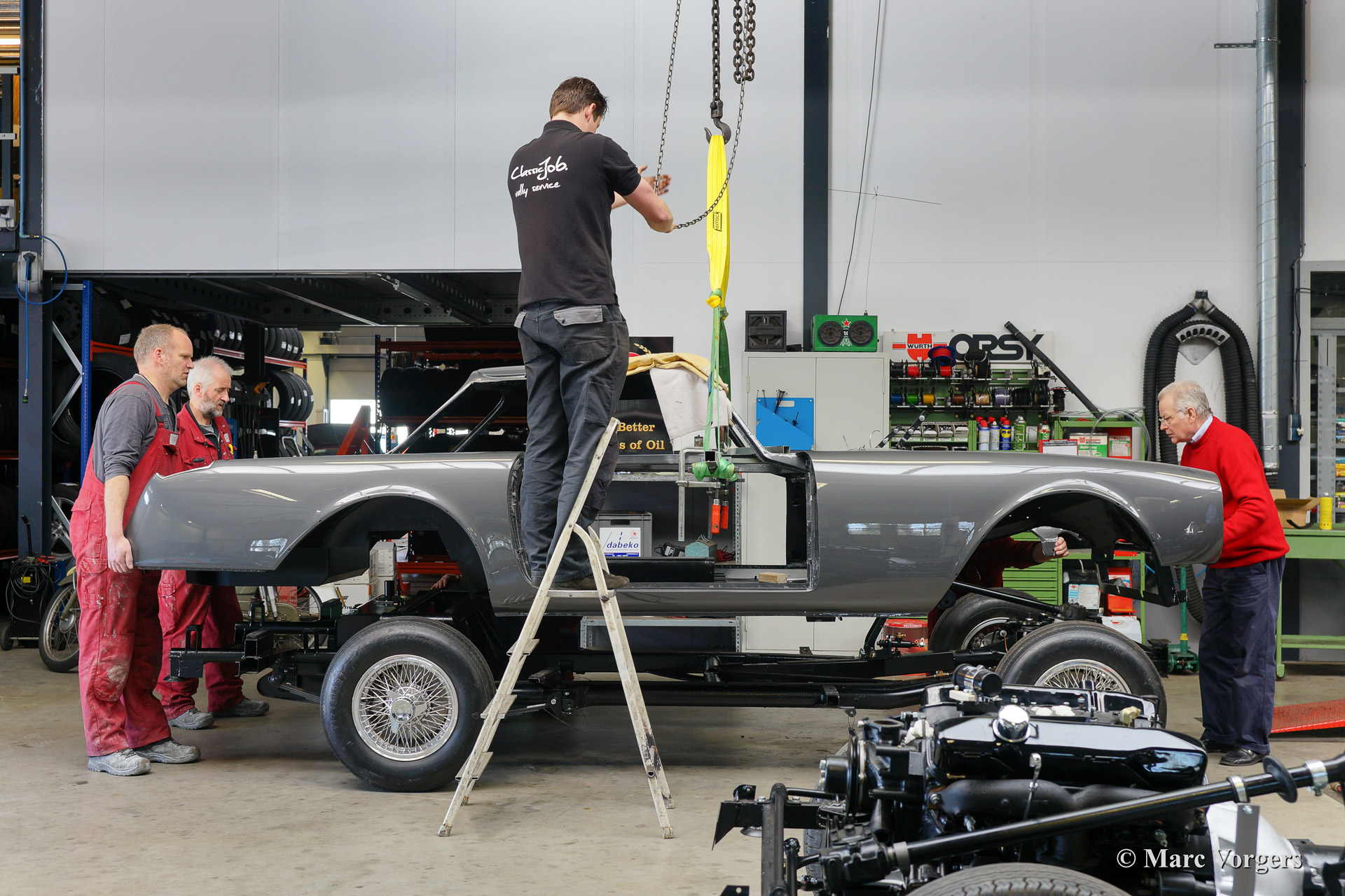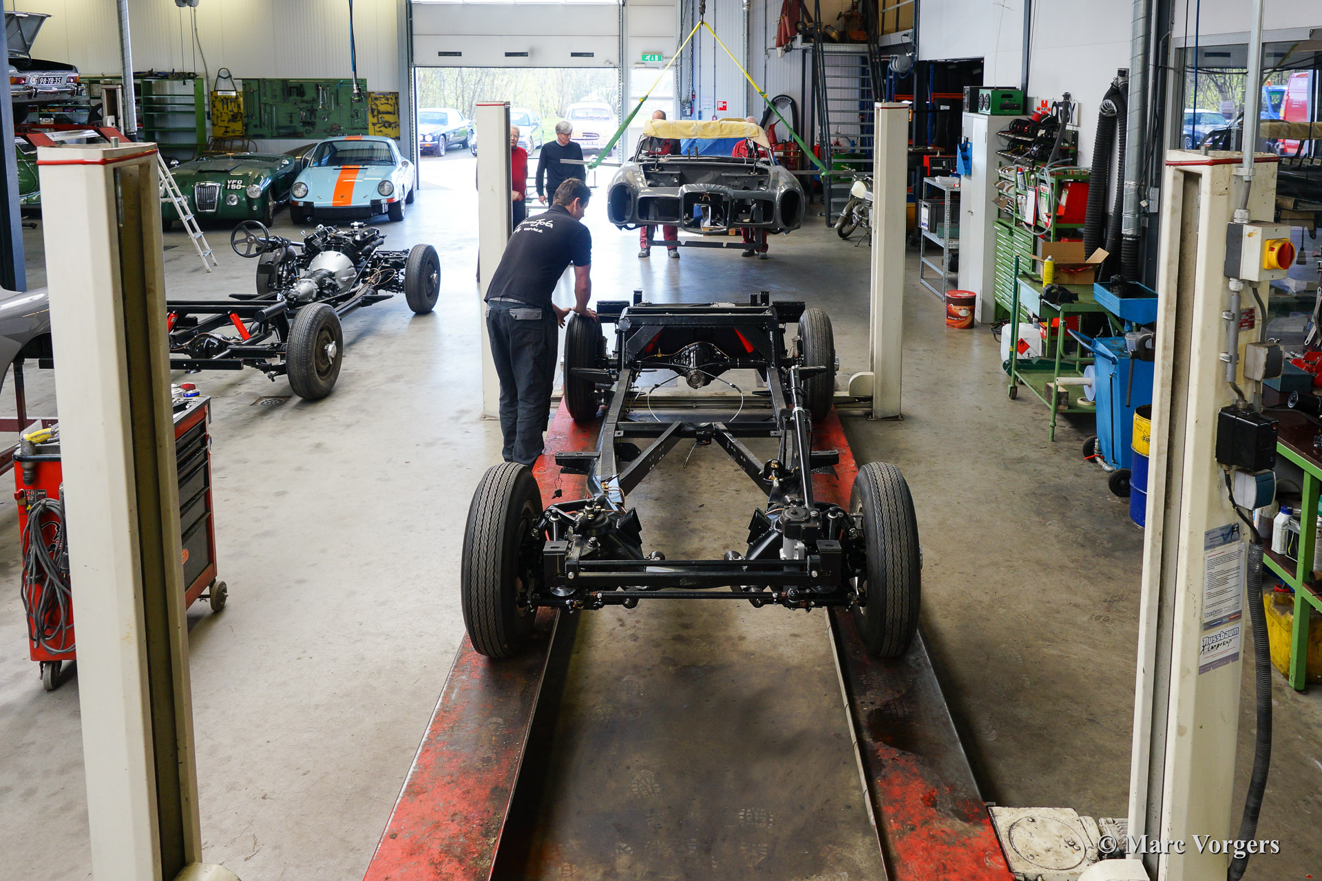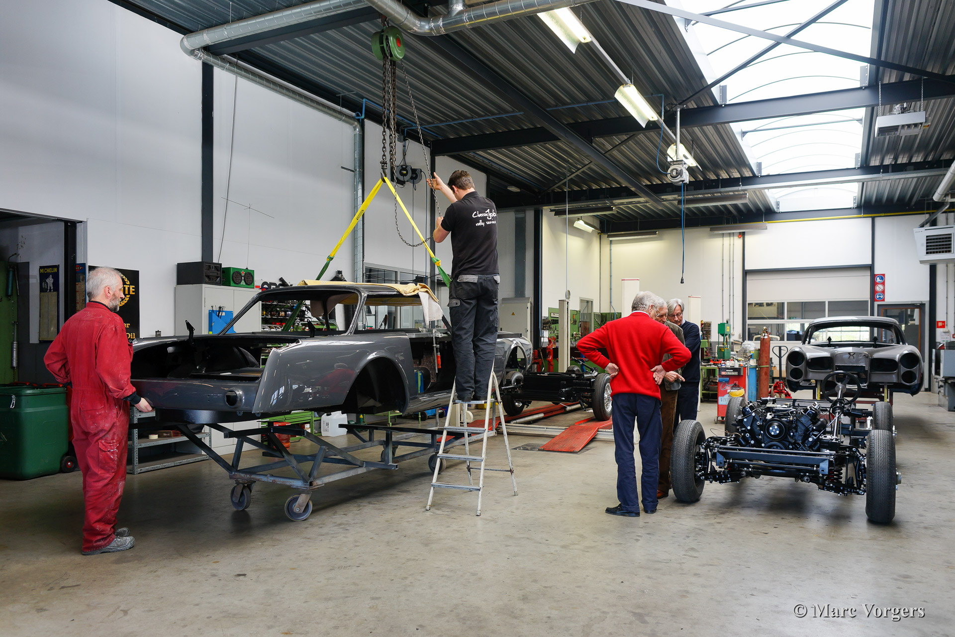 Dieser schöne 1962 Facel Vega Facel II (HK2 A109) wird für einen Kunden komplett wiederhergestellt. Blechbearbeitung wurde durchgeführt, Karrosserieararbeiten fertig gestellt und das Auto wurde Tudor Grau lackiert. Das Fahrwerk ist wieder hergestellt und alle mechanischen Teile sind überholt und / oder erneuert worden. In der Fotoreportage sehen sie wie das Fahrwerk und die Karosserie wieder zusammengebracht werden. Wenn sie auch Ihren Facel Vega wieder wie neu restauriert haben wollen zögern Sie dann nicht uns zu kontaktieren.