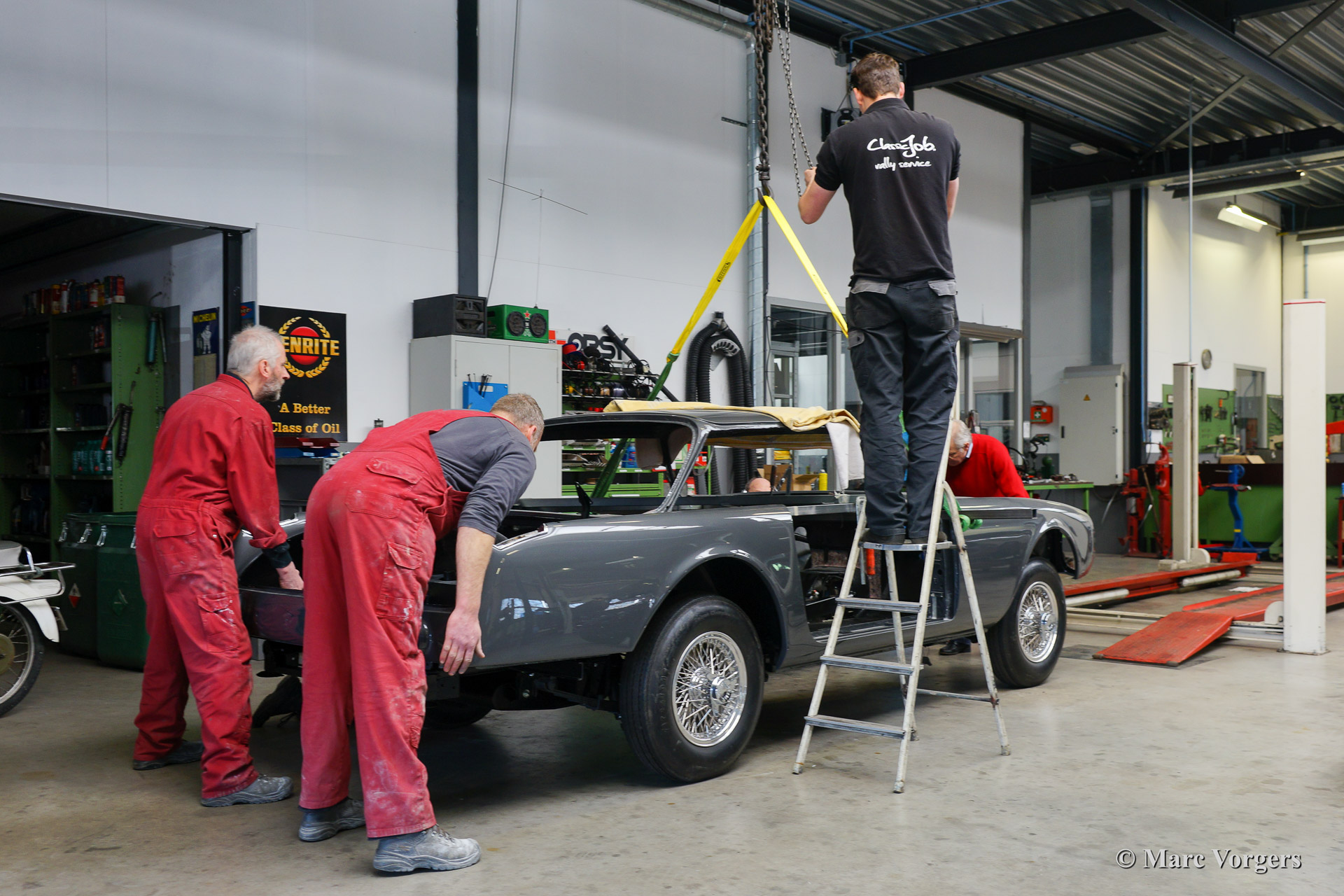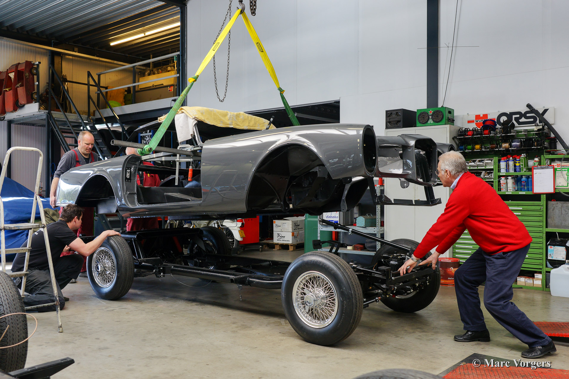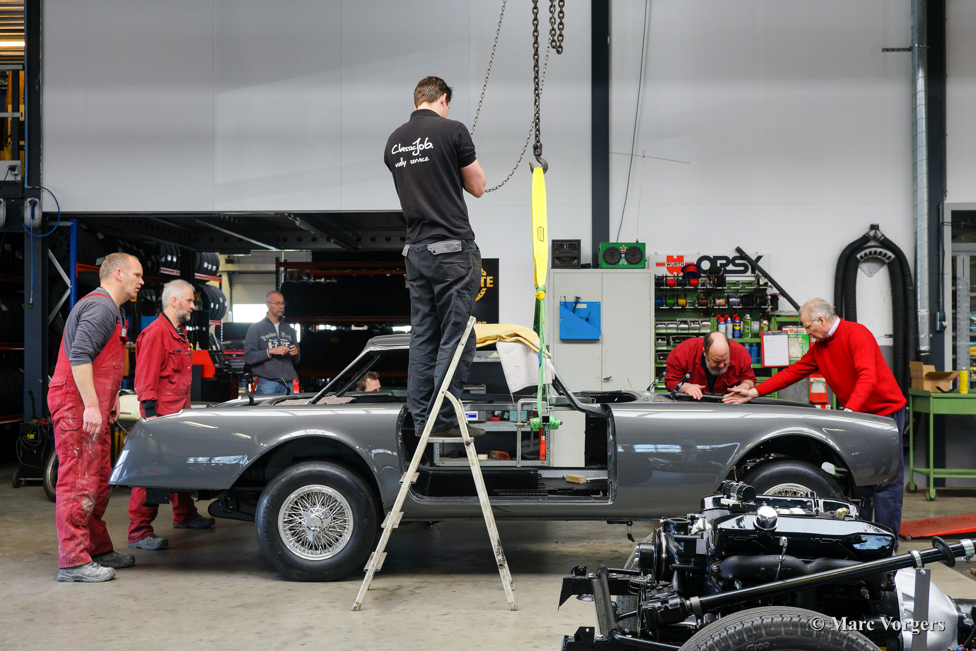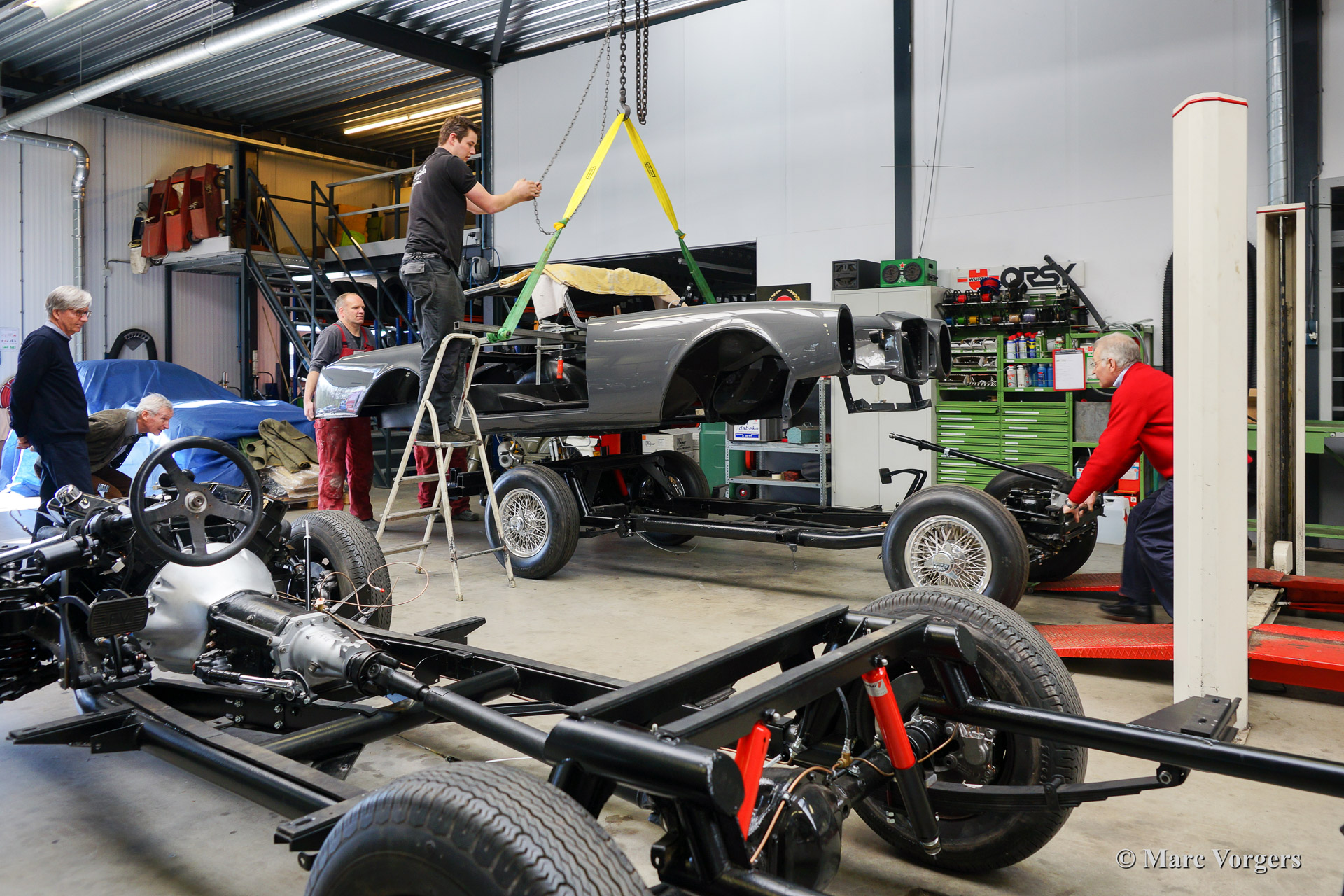 Dieser schöne 1962 Facel Vega Facel II (HK2 A109) wird für einen Kunden komplett wiederhergestellt. Blechbearbeitung wurde durchgeführt, Karrosserieararbeiten fertig gestellt und das Auto wurde Tudor Grau lackiert. Das Fahrwerk ist wieder hergestellt und alle mechanischen Teile sind überholt und / oder erneuert worden. In der Fotoreportage sehen sie wie das Fahrwerk und die Karosserie wieder zusammengebracht werden. Wenn sie auch Ihren Facel Vega wieder wie neu restauriert haben wollen zögern Sie dann nicht uns zu kontaktieren.