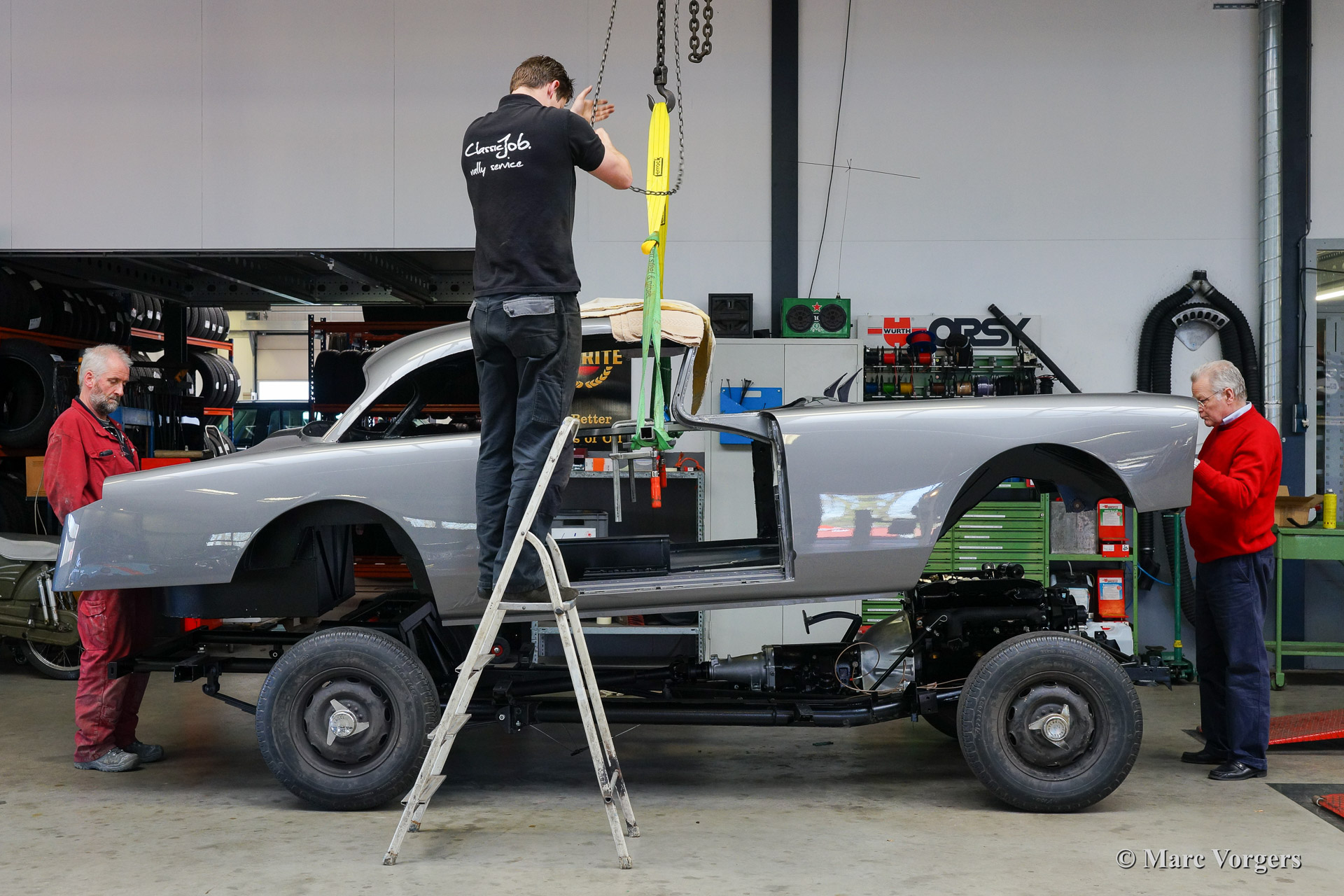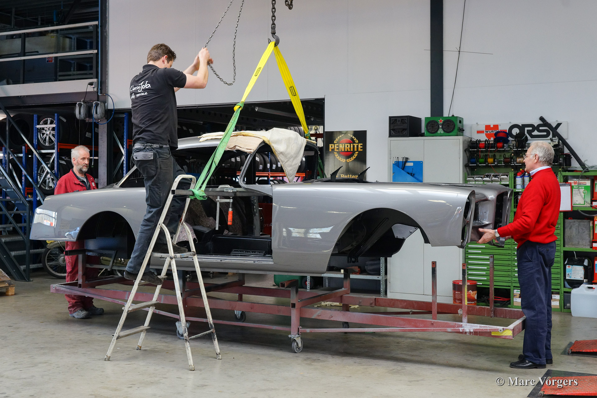 This beautiful 1960 Facel Vega Facel HK-500 (HK1 BX4) has been fully restored for a client. Sheet metal work has been carried out, body work was completed and painted Gregio Glacé, the chassis was restored and all the mechanical parts have been overhauled and/or renewed. In the photo reportage you see the chassis and the body work being mated together and you see the car in fully restored glory! In case you want your precious Facel Vega restored by the leading specialist do not hesitate to contact us.