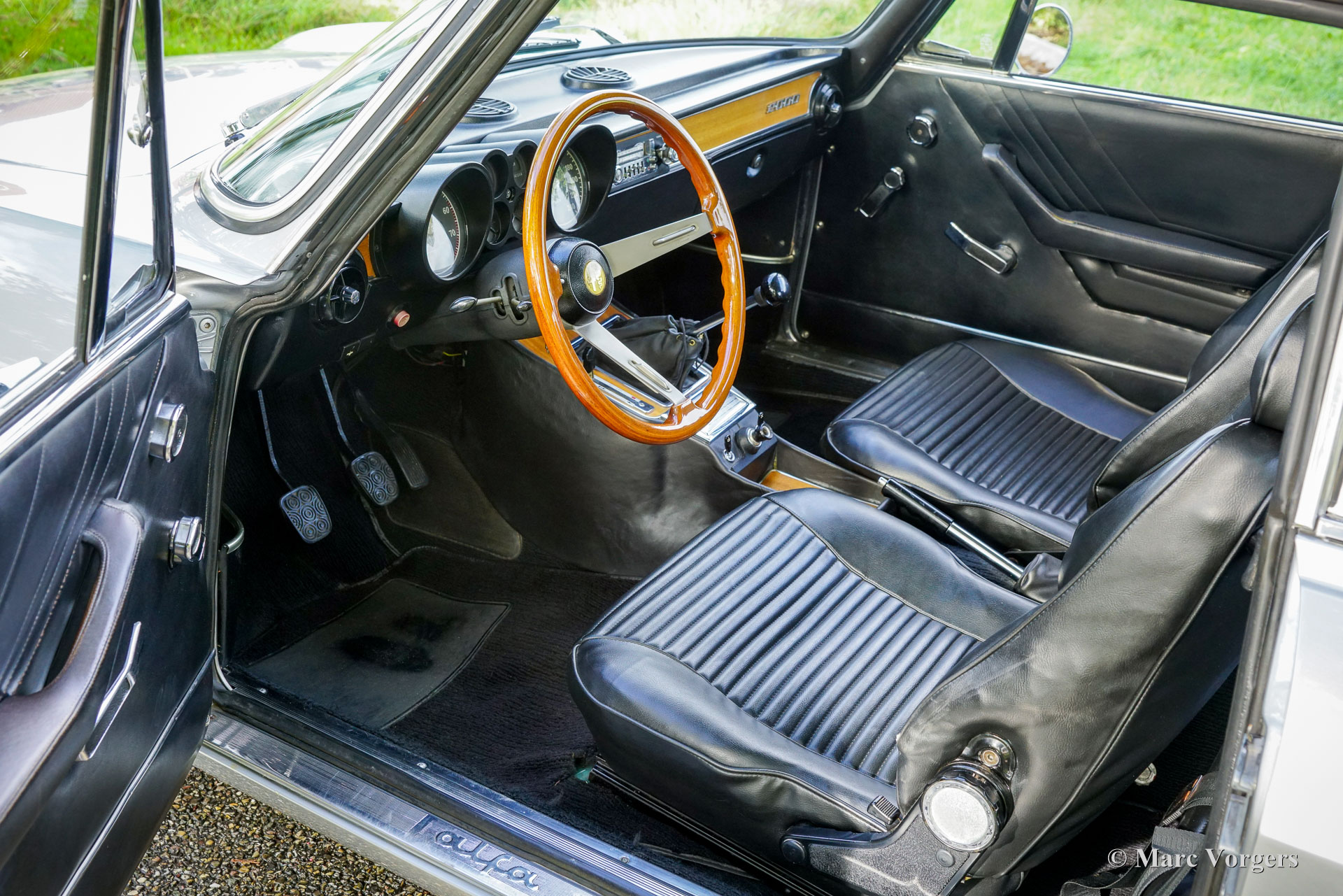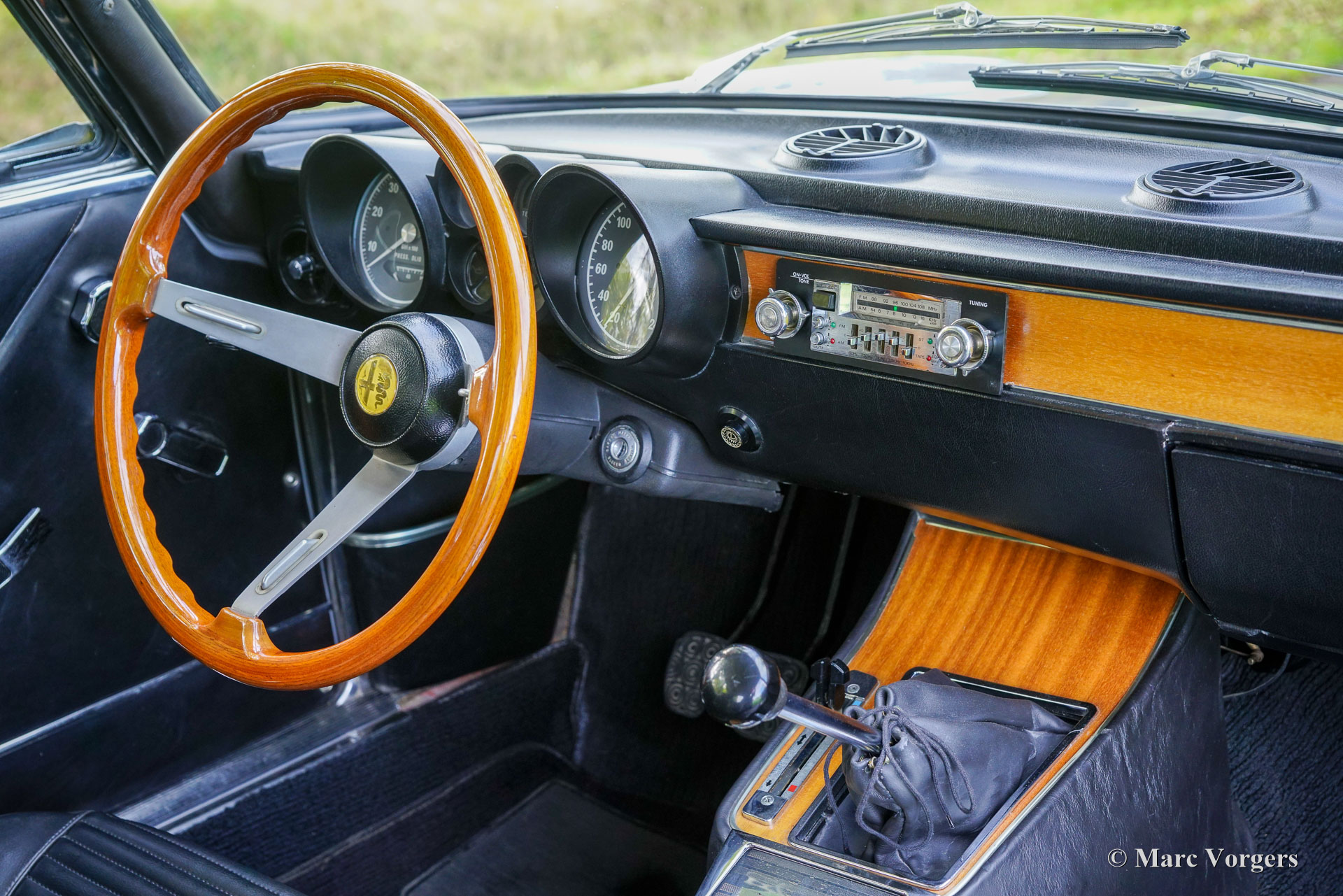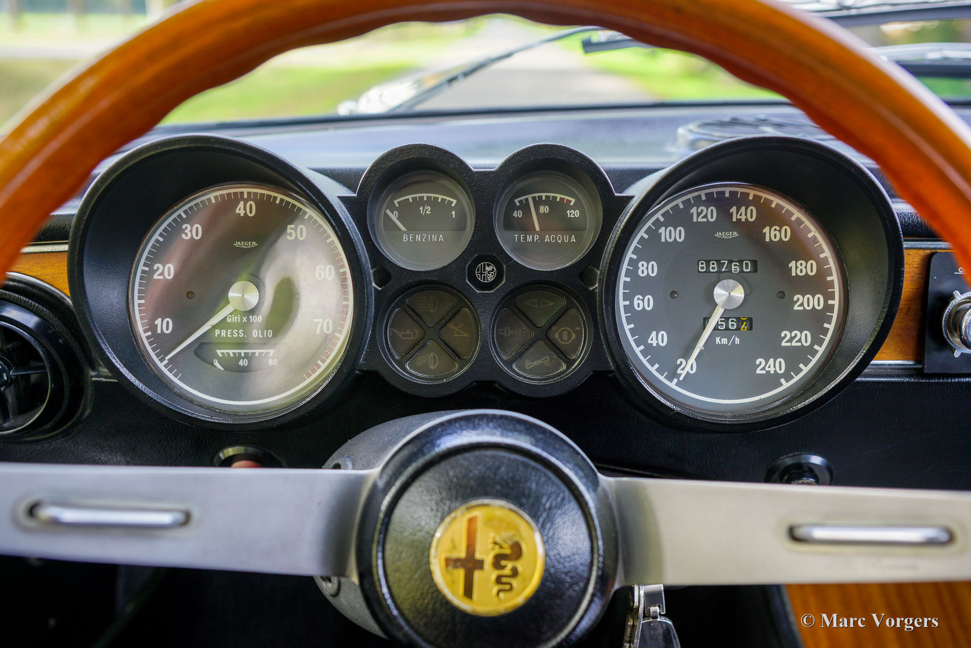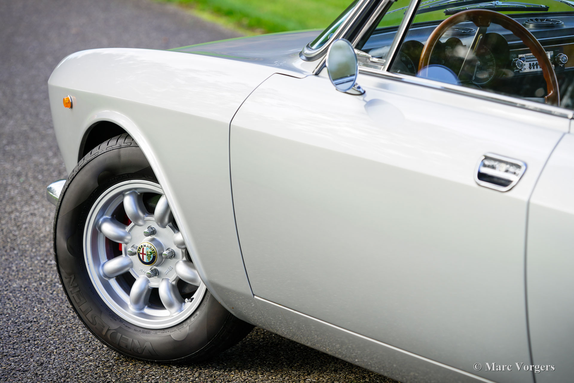 Alfa Romeo Giulia 2000 GTV „Bertone“, Jahr 1974. Fahrgestellnummer AR2439136, Motornummer 00512 – S10507. Karosserie in Silbermetallic, kombiniert mit einer Innenausstattung aus schwarzem Kunstleder und schwarzem Teppich. Der Alfa Romeo Giulia GT (105er-Reihe), der 1963 erstmals vorgestellt wurde, ist ein Coupé mit schönen Proportionen, das die Markenidentität von Alfa Romeo mitgeprägt hat. Designer Giorgetto Giugiaro war erst 22 Jahre alt, als er das Design entwarf. Der Giulia GT war einer seiner ersten, aber auch wichtigsten Aufträge und einer, auf den er sehr stolz war. Dieser hinreißende Giulia 2000 GTV wurde neu in Schweden verkauft, das Auto wird mit einer vollständigen Fahrzeughistorie, einer englischsprachigen Bedienungsanleitung, einem Garantieheft und einer originalen Servicekarte geliefert. Der Giulia 2000 GTV ist das Spitzenmodell der Baureihe und verfügt über einen 150 PS starken Twin-Cam-Motor und ein Sperrdifferenzial an der Hinterachse. Mit Scheibenbremsen rundum und einem Fünfganggetriebe ist klar, dass der 2000 GTV ein echtes Sportcoupé in bester italienischer GT-Tradition ist. Die Karosserie dieses Autos wurde in Schweden restauriert und mechanisch in einen ausgezeichneten Zustand versetzt. Das Auto zeigt alle Originaldetails, lediglich die Aufhängung wurde mit neuen Buchsen und Federn modifiziert und ein (serienmäßiger) Sportauspuff aus Stahl eingebaut. Unter der Motorhaube sieht alles fast wie neu aus! Der Innenraum ist in einem ausgezeichneten Zustand; wir glauben, dass die Sitzpolsterung während der Restaurierung erneuert wurde. Das Armaturenbrett, die Anzeigen, die Mittelkonsole und der Dachhimmel sind alle in ausgezeichnetem Originalzustand! Das Auto ist derzeit mit 14-Zoll-Leichtmetallfelgen im GB-Minilite-Stil (seit Jahrzehnten eine Aftermarket-Option für die Giulia 105-Serie) und 185/70 14 Vredestein T-Track 2-Reifen ausgestattet. Ein Satz von vier ATS-Leichtmetallfelgen ist ebenfalls vorhanden. Das Reserverad im Auto ist ein serienmäßiges Stahlrad. Dieser schnelle und wendige Alfa Romeo Giulia GTV 2000 ist ein hervorragendes Exemplar in einer tollen Farbkombination und mit Upgrades, die sportliche Alfa Romeo-Fans und -Fahrer sehr begeistern werden!