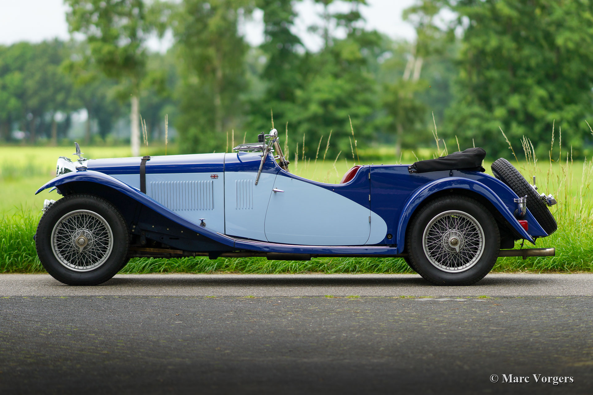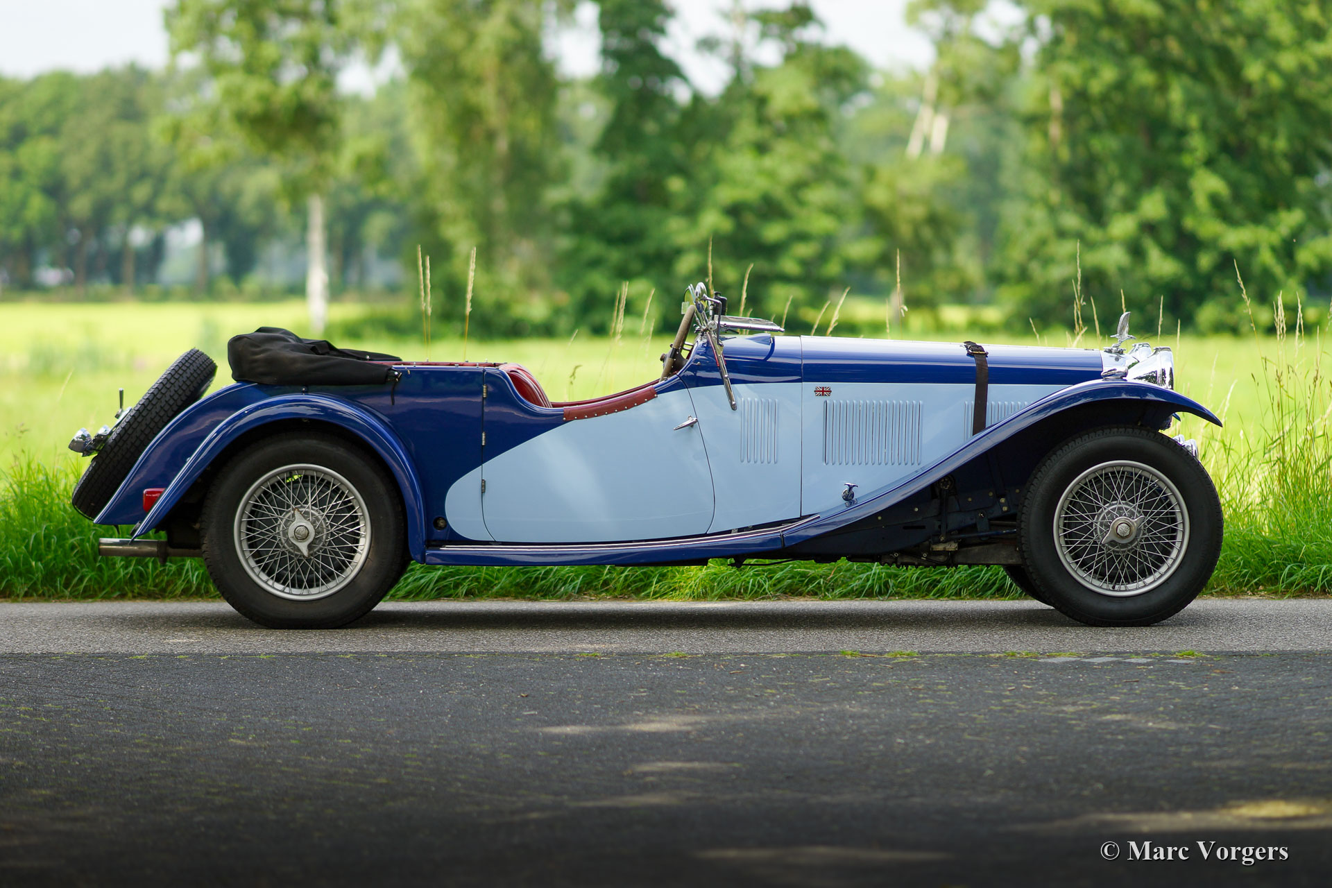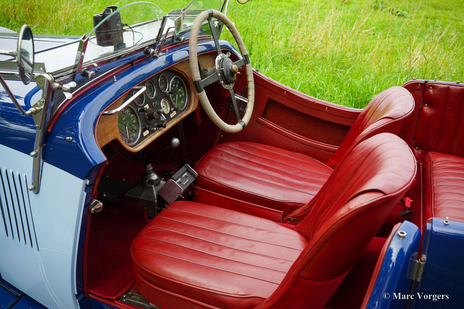 Alvis Speed 20 SA Open Tourer, Jahr 1933. Farbe zweifarbig blau kombiniert mit einer roten Lederausstattung und einem schwarzen Verdeck. Dieser prächtige Alvis Speed 20 SA Open Tourer wurde in Großbritannien neu verkauft, wo er unter der Nummer AJJ 585 zugelassen wurde. Das Besondere ist, dass das Auto mit seiner originalen Vanden Plas Open Tourer-Karosserie ausgestattet ist. Dieses feine Automobil befindet sich in einem sehr guten bis ausgezeignetem Originalzustand mit allen originalen Details und einer fantastischen Vintage-Patina. Im Laufe der Jahre wurde die Mechanik überholt (der Motor vor ein Paar Jahre) und die Karosserie wurde in der Vergangenheit abgestreift und neu lackiert. Die Bremsen und das Lenkgetriebe wurden vor kurzem überholt und die hinteren Federn und Kupplung erneuert. Auch eine Wechselstrom Lichtmaschine wurde eingebaut. Die komplette Geschichte ist bekannt und dokumentiert, und alle Vorbesitzer sind bekannt. Das Auto hat an mehreren historischen Ereignissen in den Niederlanden teilgenommen. Dieses schöne Auto ist im Alvis-Register eingetragen und das Auto wird mit einer seltenen Original-Bedienungsanleitung und einem Foto des Autos in den Händen seines Erstbesitzers geliefert. Dieser wunderschöne Alvis Speed 20 wurde in den Werkstätten von Altena Classic Service perfekt gewartet.