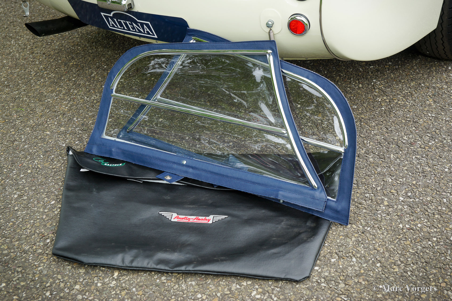 The former Healey models were more Spartan and featured fully detachable soft tops with separate side screens which could be stowed away in the booth.