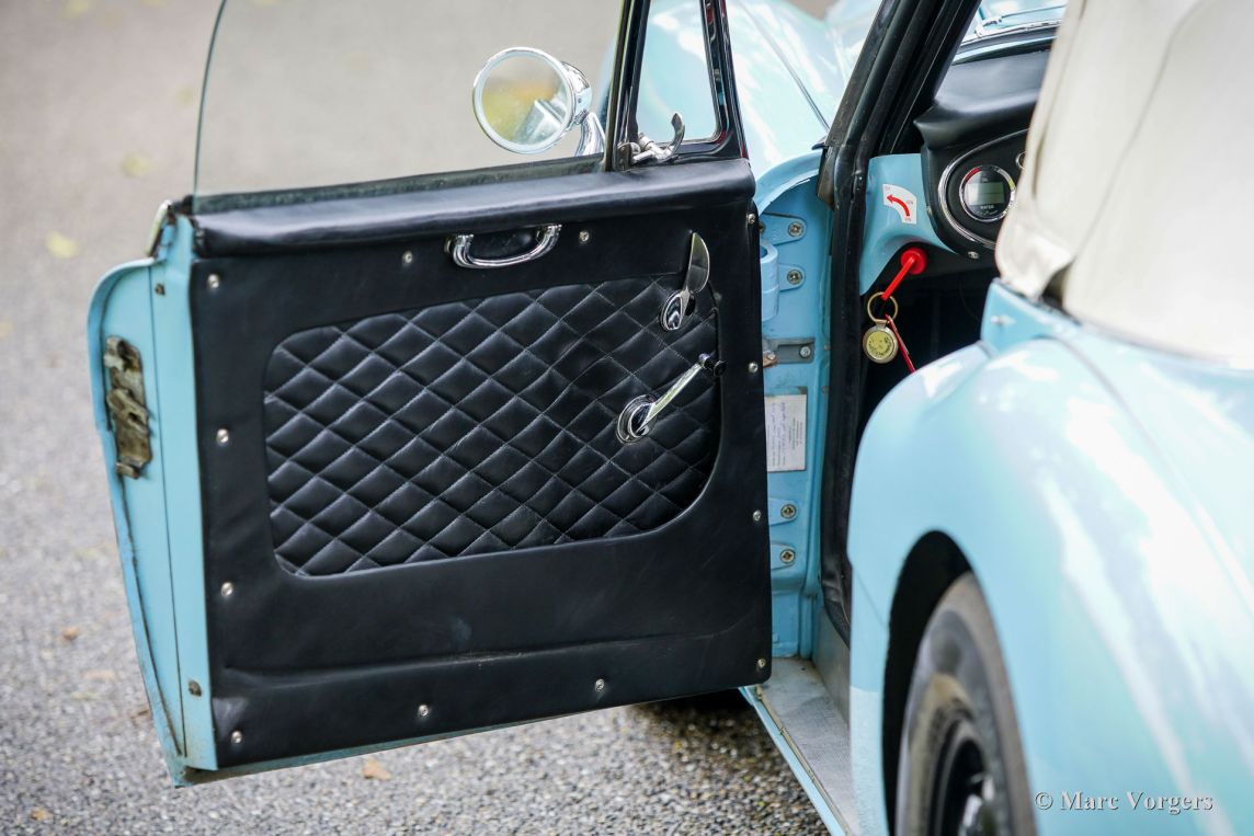 The former Healey models were more Spartan and featured fully detachable soft tops with separate side screens which could be stowed away in the booth.