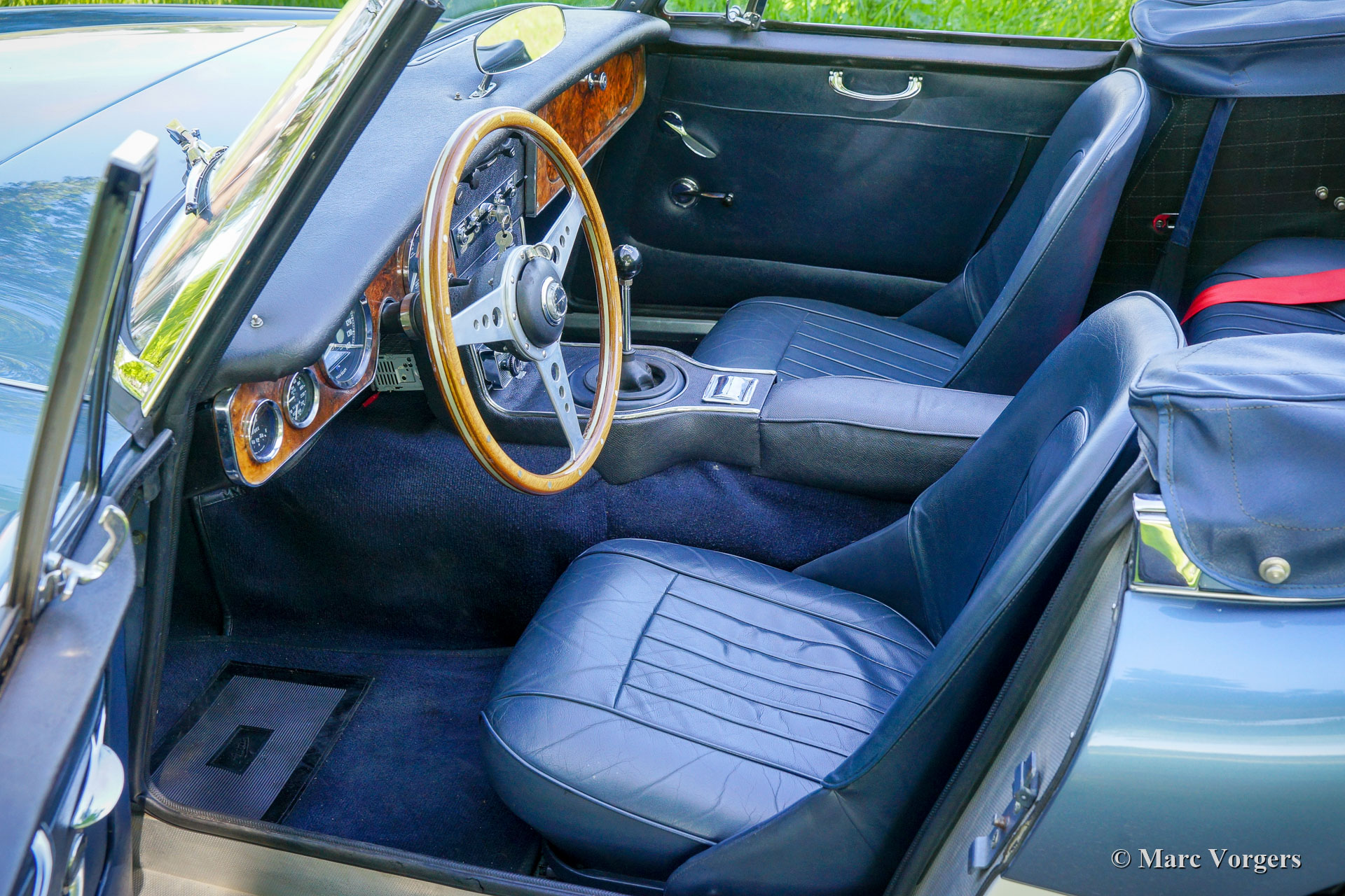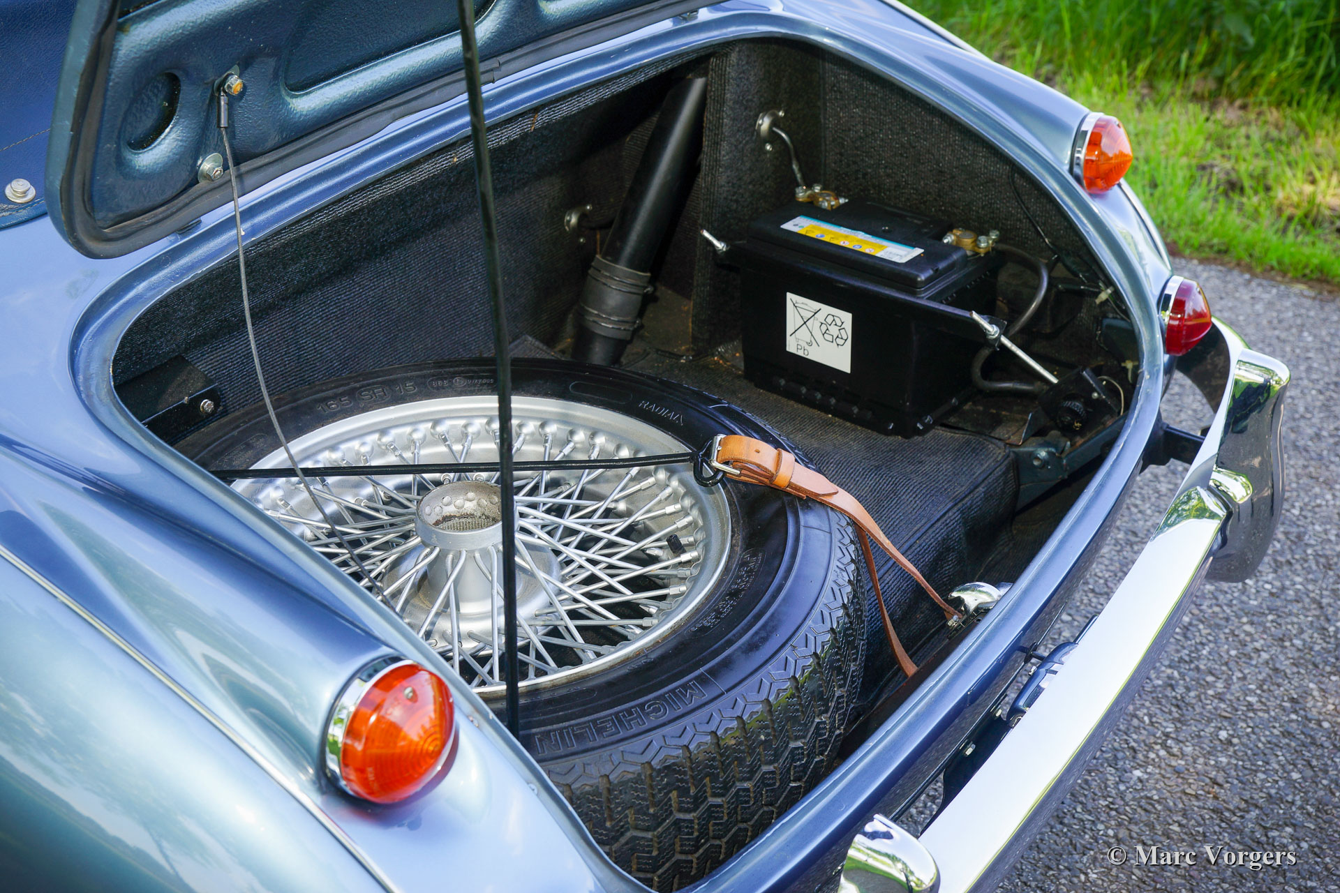 The former Healey models were more Spartan and featured fully detachable soft tops with separate side screens which could be stowed away in the booth.