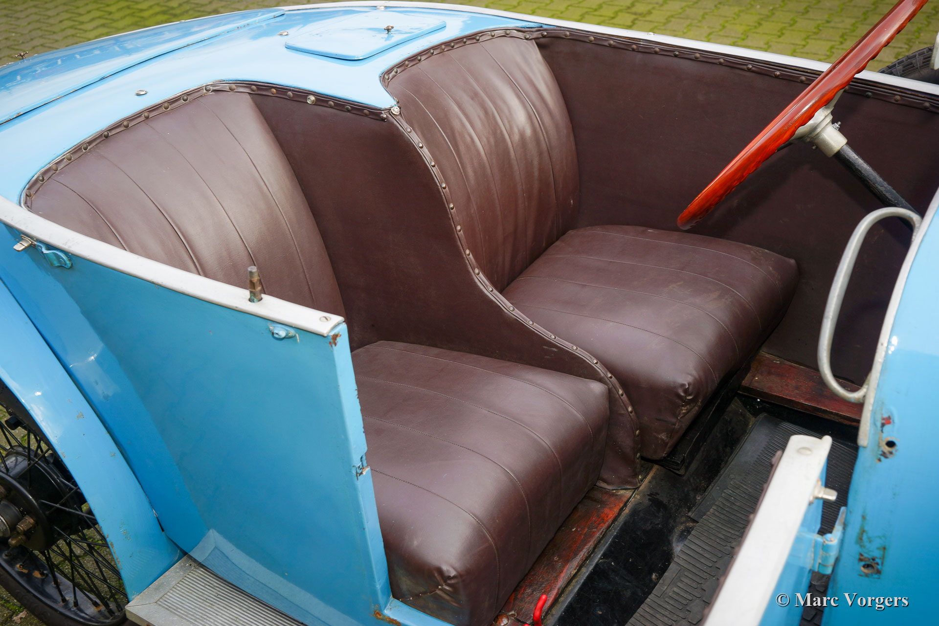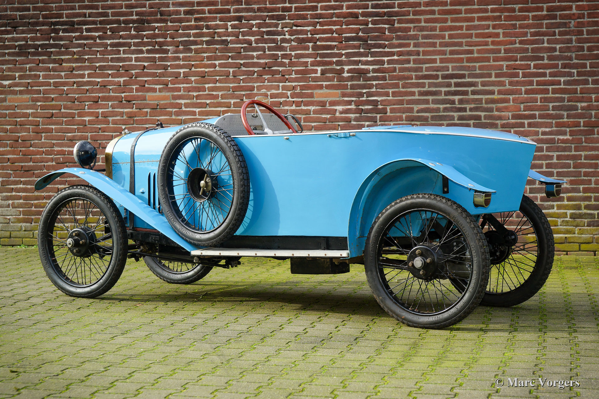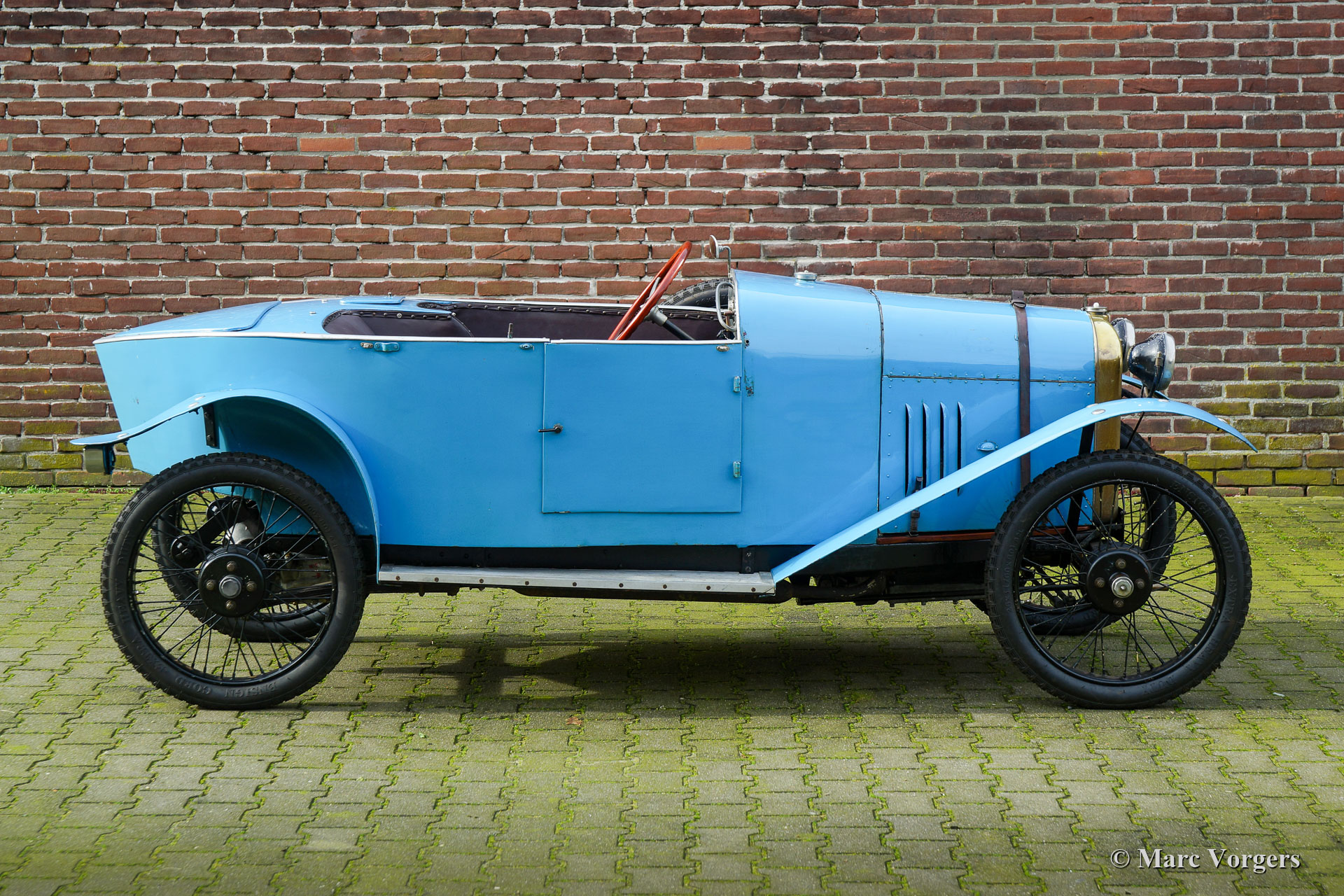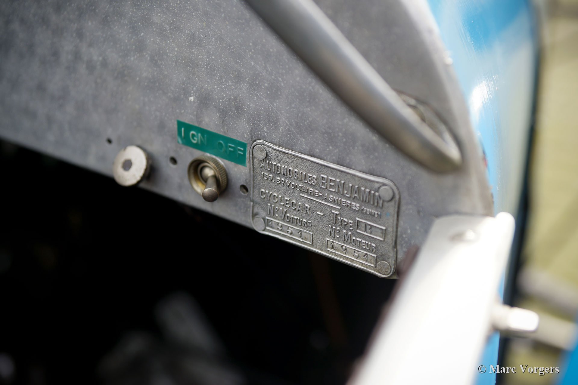Benjamin Typ B ‘cycle car‘, Jahr 1922. Farbe französisch Blau kombiniert mit schwarzen Speichenrädern und einer braunen Lederausstattung. Laut Vorbesitzern und den Bonhams-Verkaufsinformationen von 2013 war dieses Benjamin Typ B ‘cycle car‘ das 1920er Werksteamauto. Das Auto soll 1922 am französischen Bol d'Or teilgenommen haben. Das Auto wurde von Violette Morris (18. April 1893 - 26. April 1944) gefahren. Weitere Informationen zum farbenfrohen Lebensstil dieser französischen Sportlerin und Rennfahrerin finden Sie in Wikipedia. Das Auto wurde Mitte der 1980er Jahre von Stephen Langton nach Großbritannien importiert. 1988 wurde das Auto von Barry Clarke (ehemaliger Präsident des Vintage Sports Car Club -VSCC-) erworben. Clarke ließ das Auto weitgehend überholen. Die Räder wurden restauriert, der Kühler neu entkernt, der Dynamo und der Anlasser neu aufgebaut, und der Motor überholt. Der nachfolgende Besitzer ließ die Aufhängung überholen, die Rad- und Kardanwellenlager erneuern und zwei Trommelbremsen ersetzen. Darüber hinaus wurde der Zylinderkopf für 14-mm-Zündkerzen modifiziert, die Nockenwelle neu profiliert, die Kupplung repariert und ein SU-Vergaser mit einem neuen Ansaugkrümmer ausgestattet. Im Laufe der Jahre wurde viel über diesen Benjamin geschrieben und das Auto hat an verschiedenen VSCC-Fahrversuchen und -demonstrationen teilgenommen. Dieses seltene Auto befindet sich in einem guten, fahrbereiten Zustand. Eine entzückende Maschine für den Liebhaber des Vorkriegsautos, der ein Auto sucht, an dem er basteln und an besonderen historischen Ereignissen teilnehmen kann.