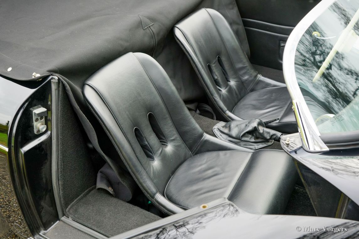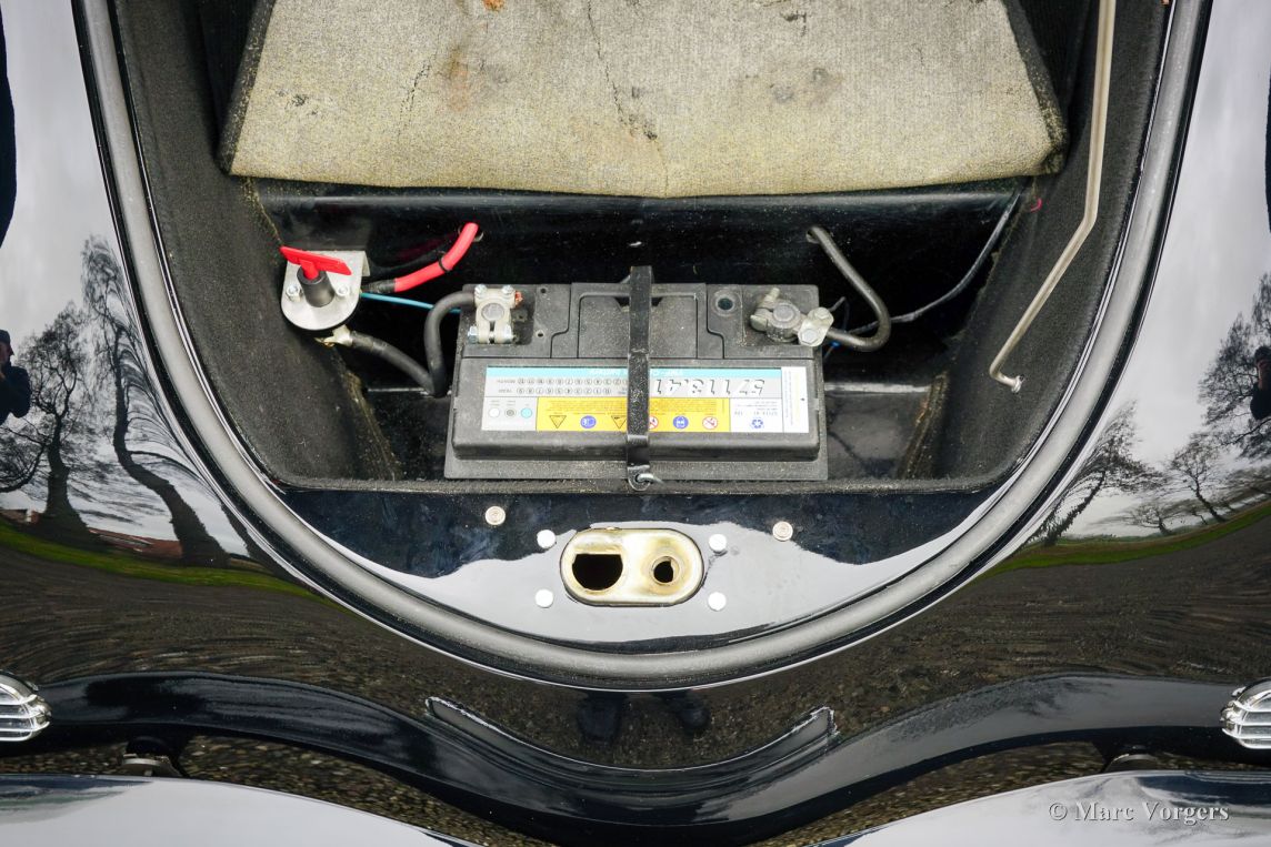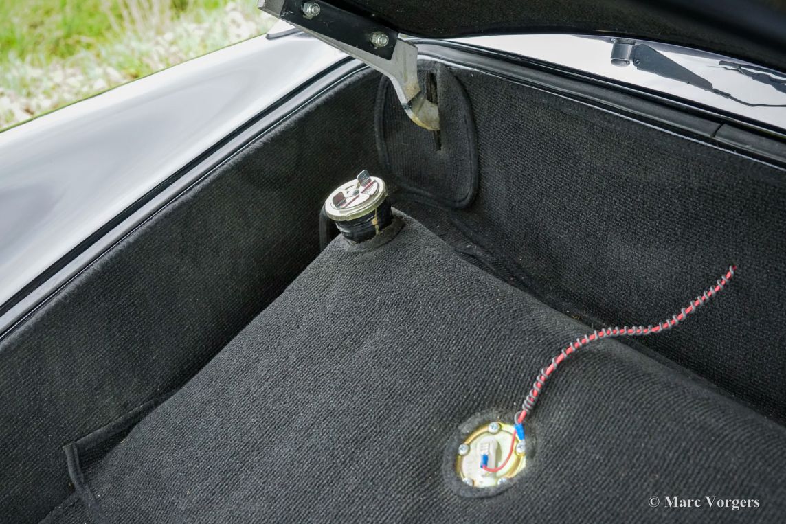 356 Speedster „Recreation“, Baujahr 1965. Fahrgestellnummer 1156376671. In „Triple Black“ mit schwarzer Karosserie, schwarzem Interieur und schwarzem Verdeck gehalten, ist diese wunderschöne 356 Speedster-Replika ein echter Hingucker! Diese wundervolle Replika basiert auf einem verkürzten VW Käfer-Chassis von 1965. Die Karosserie wurde exakt dem originalen 356 A Speedster (mit der gewölbten Windschutzscheibe) nachempfunden, der von Porsche zwischen 1955 und 1959 produziert wurde, und besteht aus GFK statt aus Metall. Alle nachgebildeten Details im Exterieur und Interieur entsprechen dem Original. Armaturenbrett, Instrumente, Lenkrad, Schalthebel, Türgriffe, Logos und Embleme (auf den Fotos entfernt), Front- und Rückleuchten, Felgen und Radkappen – alles entspricht dem Original. Die luxuriösen Fußmatten wurden später hinzugefügt, verleihen diesem spartanischen Sportwagen aber einen Hauch von Komfort. Der luftgekühlte VW-Vierzylinder-Boxermotor sorgt für temperamentvolle Fahrleistungen und einen beeindruckenden Sound. Diese 356 Speedster-Replika befindet sich in einem wunderbaren und sehr guten Zustand; das Fahrzeug weist nur geringe Gebrauchsspuren auf. Es ist mit schwarzem Mohair-Verdeck, Persenning und Seitenscheiben ausgestattet und in den Niederlanden zugelassen. Von Porsche wurden nur etwa 4144 (davon 2910 A-Modelle) originale Porsche 356 Speedster gebaut. Diese Fahrzeuge sind selten, sehr begehrt und daher sehr teuer. Eine gute Replika ist durchaus erschwinglich und kann für viele der ideale Ersatz sein, um die Schönheit, den Stil und das einzigartige Fahrgefühl eines 356 Speedster zu genießen. Dieses wunderschöne Exemplar ist von außen nur für einen Spezialisten vom Original zu unterscheiden.