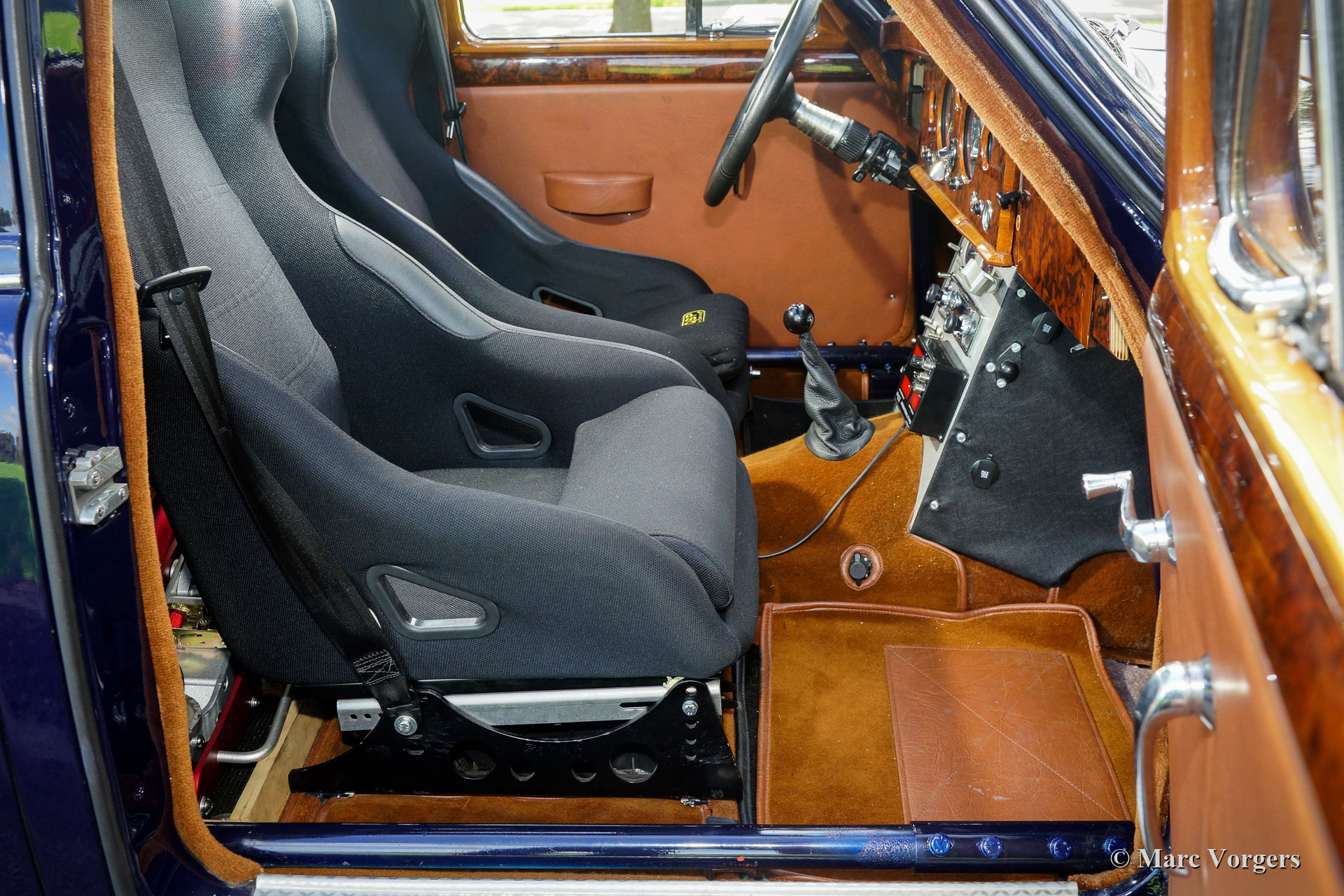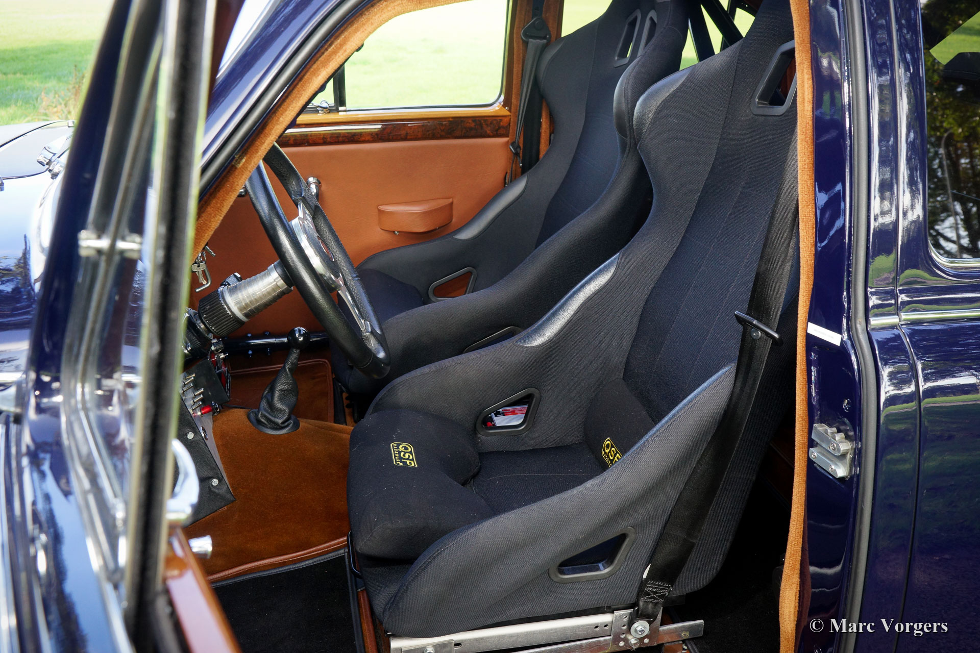 Jaguar Mk I 3,4-Liter-Rallyewagen, 1958. Farbe dunkelblau kombiniert mit einem schwarz / cognacfarbenen Interieur. Schwarze Stoffschalensitze und Cognac-Teppich. Dieser eindrucksvolle Jaguar Mk I wurde im Jahr 2012 aus Belgien in die Niederlande importiert. In den Jahren 2012 - 2014 wurde das Auto ausgebaut, restauriert, überholt und modifiziert / vorbereitet, um ein erstklassiges historisches Rallyeauto zu werden. Jedes Detail wurde mit größter Sorgfalt ausgeführt, der Bau hat über 100.000 Euro gekostet. Ein vollständiger Fotobericht und Rechnungen über die Restaurierung / den Wiederaufbau sind vorhanden. Das Jaguar Mk I 3,4-Liter-Rallye-Auto ist in einem hervorragenden Zustand und das Auto fährt sich perfekt! Die Liste der Modifikationen und Verbesserungen ist zu lang, um sie hier aufzulisten. Schauen Sie sich dieses perfekte Rallyeauto bitte mit eigenen Augen an. Der Jaguar verfügt über einen Überrollkäfig, ein ORIGINAL-Sonnendach (!), Eine EZ-Servolenkung, einen zusätzlichen Aluminium-Benzintank, ein spezielles elektrisches System, spezielle und sehr komfortable Rallyesitze, Rallye-Instrumente, Rallyelampen und vieles mehr. Das Fahrerlebnis ist großartig; dieser Jaguar Mk I fühlt solide wie ein Felsen, die Fahrt ist sportlich und dennoch komfortabel, die Bedienung und Lenkung sind schnell und präzise. Ein erstklassiges historisches Rallyeauto für den anspruchsvollen Rallye-Langstreckenfahrer!